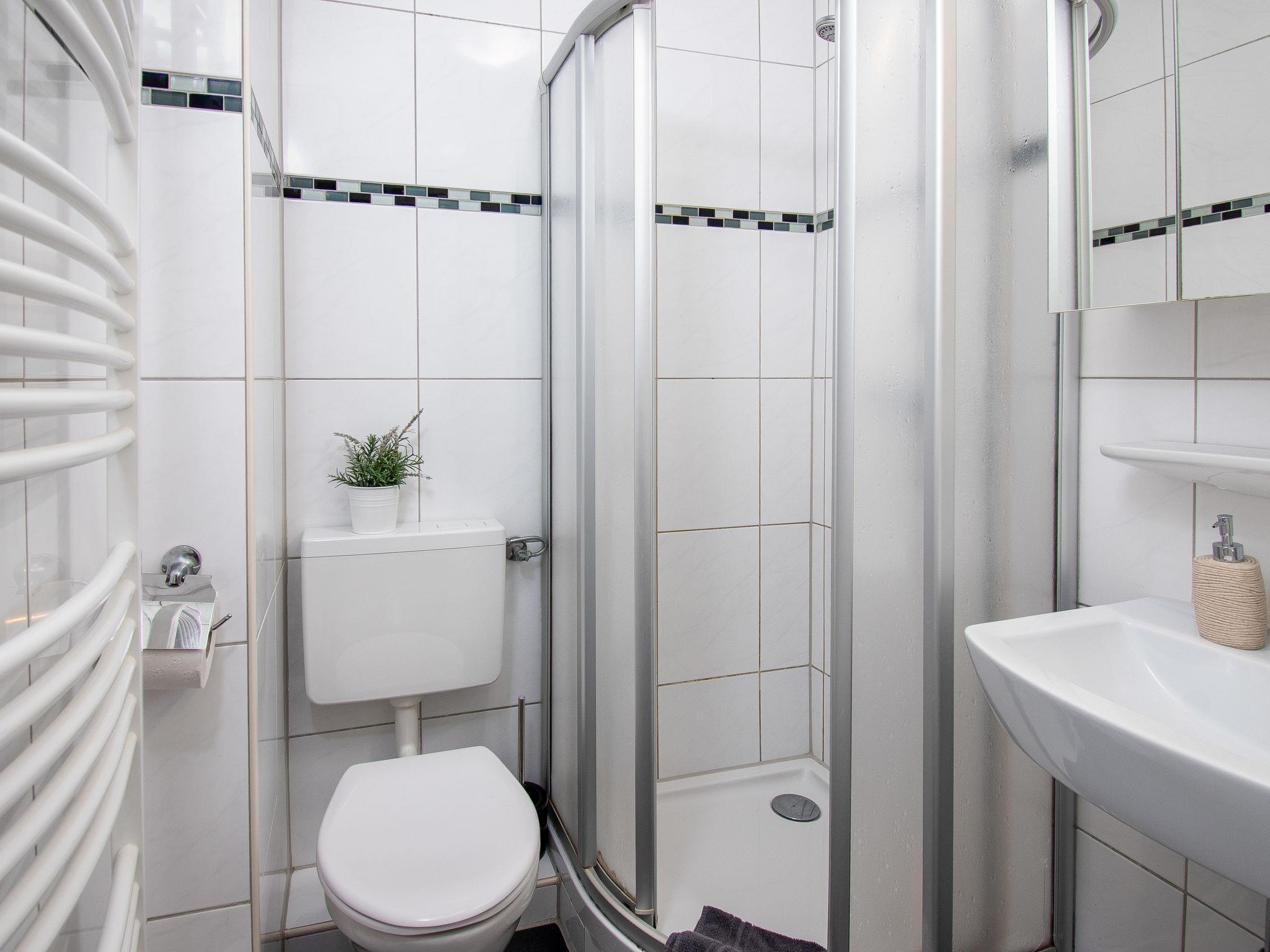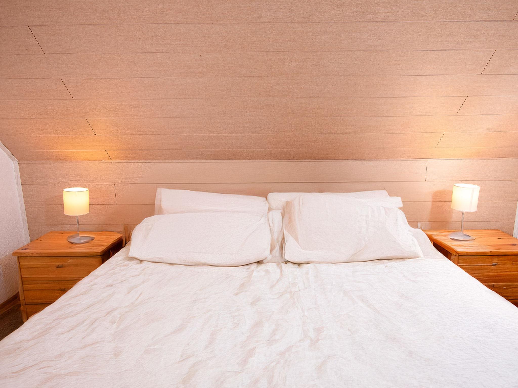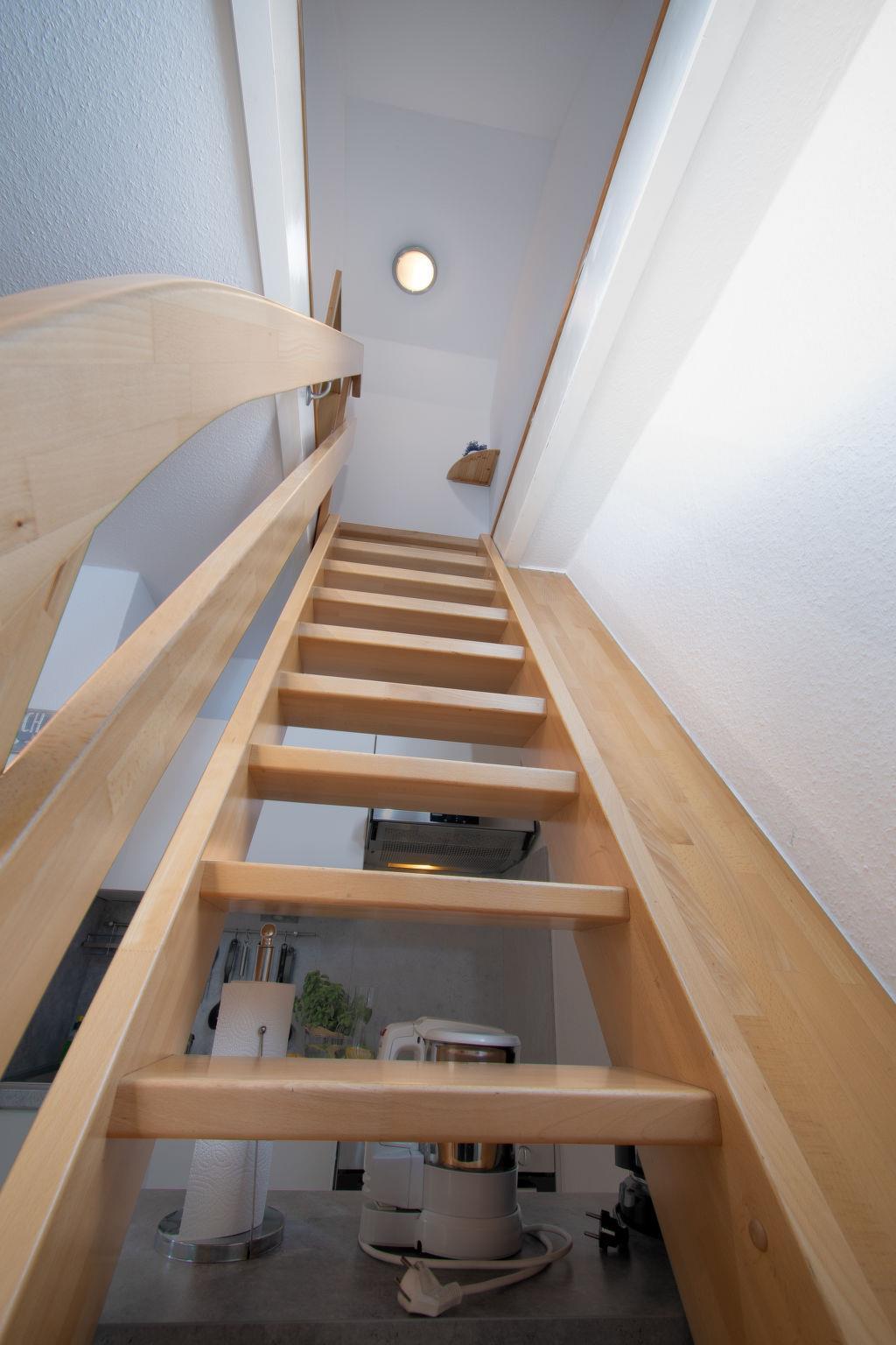 "Scholle", 3-Zimmer-Wohnung 45 m2 auf 2 Stockwerken im 1. Stock. Gemütlich eingerichtet: Wohn-/Esszimmer 18 m2 mit Sat-TV (Flachbildschirm), Stereoanlage und DVD. 1 Zimmer 8 m2 mit 1 Doppelbett (160 cm, Länge 200 cm). Kochnische (Backofen, 4 Glaskeramikplatten, Toaster, Wasserkocher, Tiefkühler, elektrische Kaffeemaschine). Dusche/WC. Dachgeschoss: (steile Treppe) 1 abgeschrägtes Zimmer 8 m2 mit 1 Doppelbett (160 cm, Länge 200 cm). Kleiner Balkon 4 m2. Balkonmöbel. Zur Verfügung: Kinderhochstuhl (extra). Internet (Wireless LAN, gratis). Bitte beachten: Nichtraucher-Unterkunft. Rauchmelder. Die Schlafzimmer verfügen über Verdunklungsrollos.