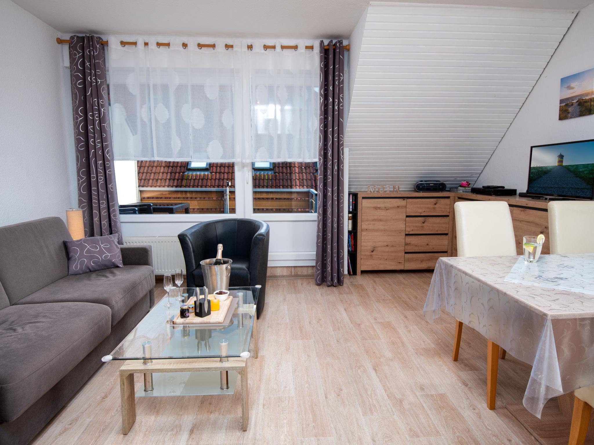 Gemütliche 2-Zimmer-Wohnung "Blinkfeuer" in Norddeich, nur 350 m vom Meer und Strand entfernt, mit Balkon und kostenlosem WLAN.