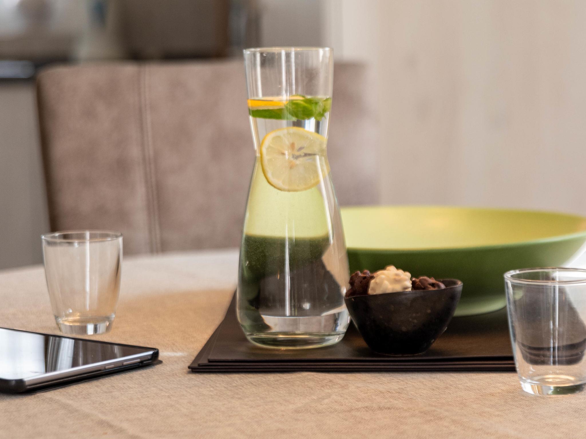 "Backbord", 3-Zimmer-Doppelhaushälfte 85 m2 auf 2 Stockwerken. Geräumig und hell: Wohn-/Esszimmer 42 m2 mit Kabel-TV (Flachbildschirm), CD, Stereoanlage und DVD. Offene Küche (4 Kochplatten, Backofen, Geschirrspüler, Toaster, Wasserkocher, Mikrowelle, elektrische Kaffeemaschine). Sep. WC. Obergeschoss: 1 Zimmer 15 m2 mit 1 Doppelbett (2 x 90 cm, Länge 200 cm). 1 Zimmer 10 m2 mit 2 Betten (90 cm, Länge 190 cm). Dusche/Bidet/WC. Terrasse 20 m2, Südwestlage. Terrassenmöbel. Zur Verfügung: Bügeleisen, Kinderhochstuhl (extra), Haartrockner. Bitte beachten: Nichtraucher-Haus. Rauchmelder.