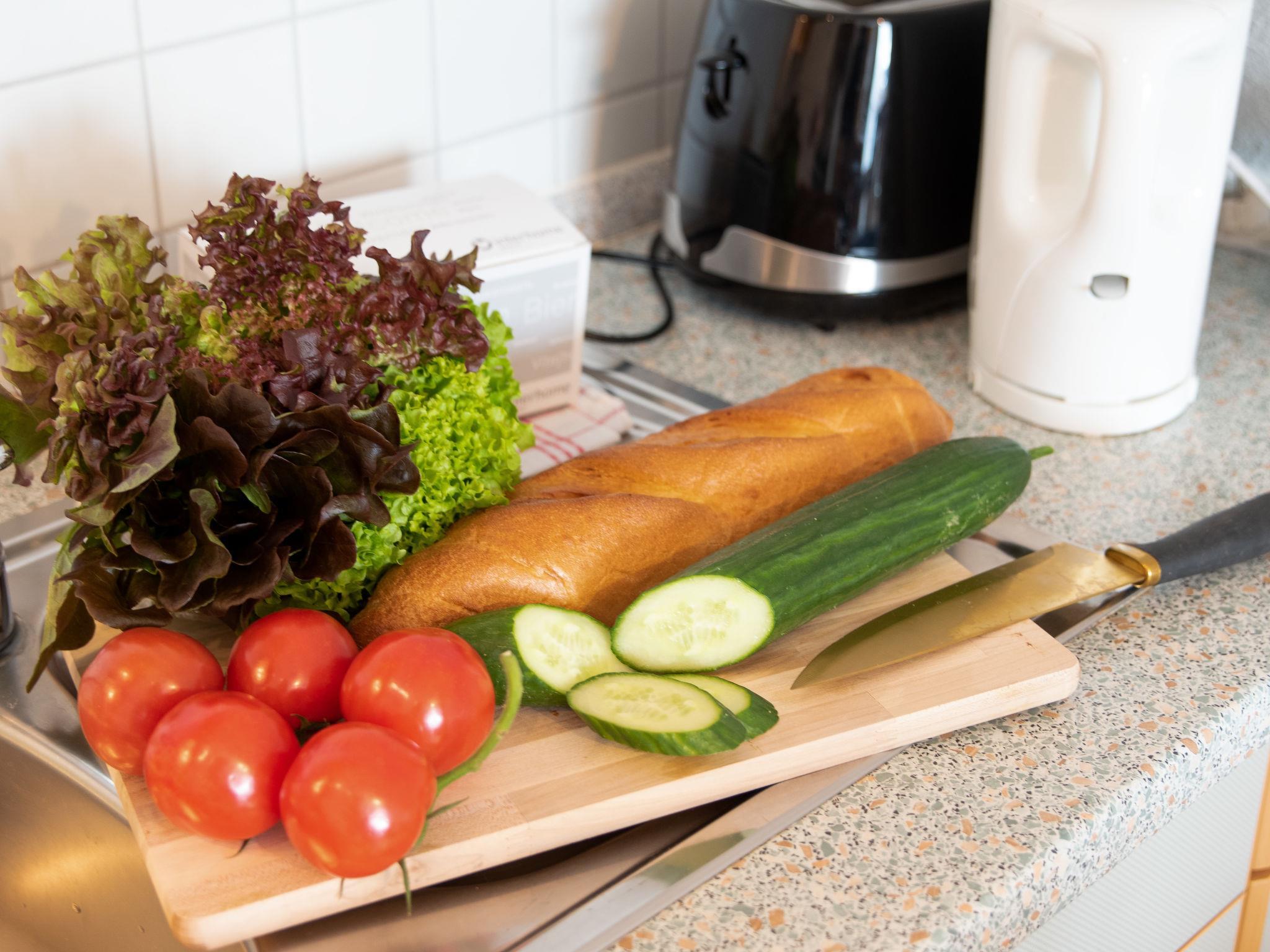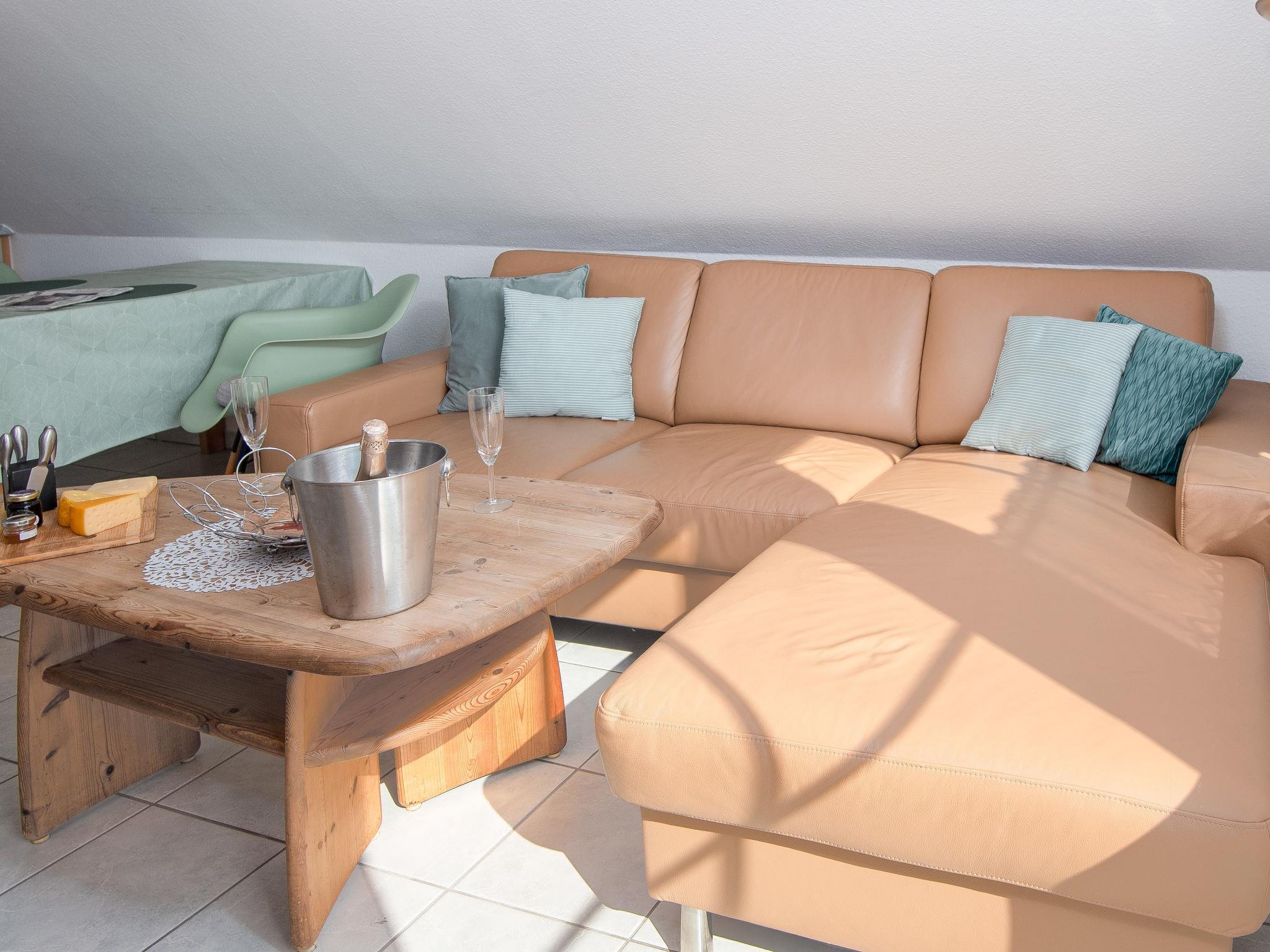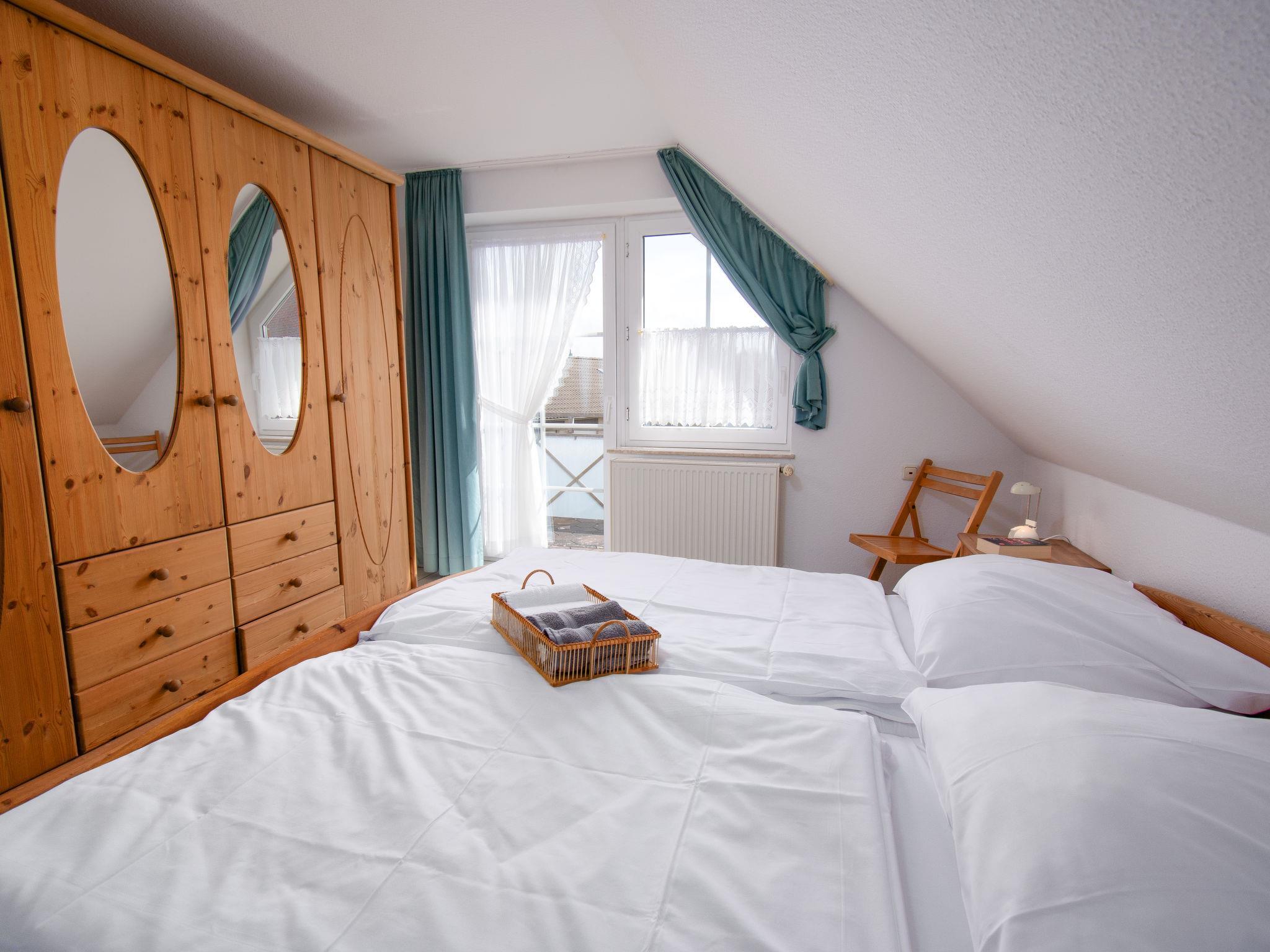 "Leuchtturm", 2-Zimmer-Wohnung 40 m2 im 1. Stock. Abgeschrägt, schön und geschmackvoll eingerichtet: Wohn-/Esszimmer 16 m2 mit Sat-TV (Flachbildschirm), Stereoanlage und DVD. Ausgang zum Balkon. 1 Zimmer 13 m2 mit 1 Doppelbett (2 x 90 cm, Länge 200 cm). Kochnische (4 Kochplatten, Backofen, Toaster, Wasserkocher, Mikrowelle, Tiefkühler, elektrische Kaffeemaschine). Dusche/WC. Kleiner Balkon 6 m2. Balkonmöbel. Zur Verfügung: Kinderhochstuhl (extra). Internet (Wireless LAN, gratis). Bitte beachten: Nichtraucher-Unterkunft. Rauchmelder.