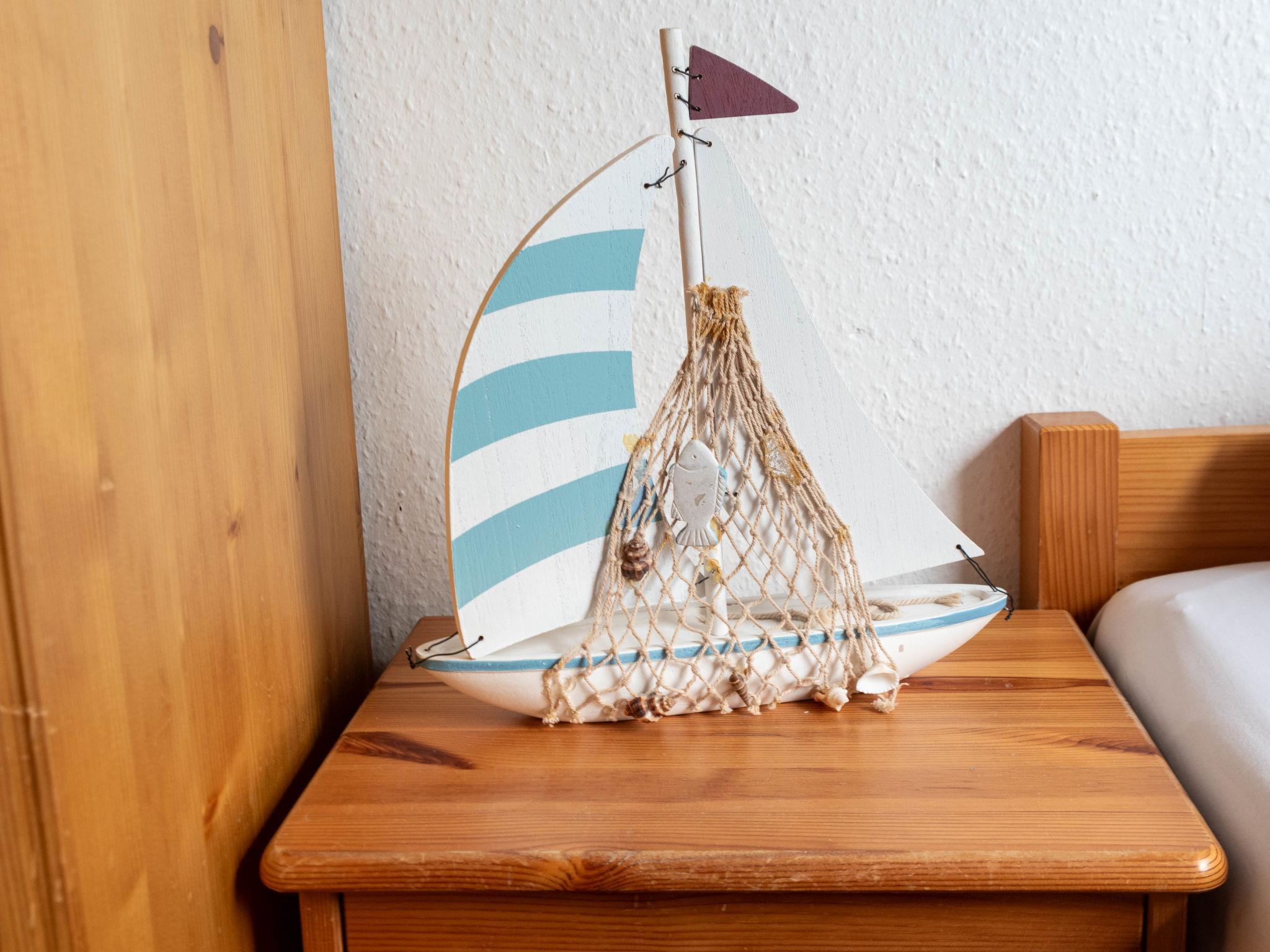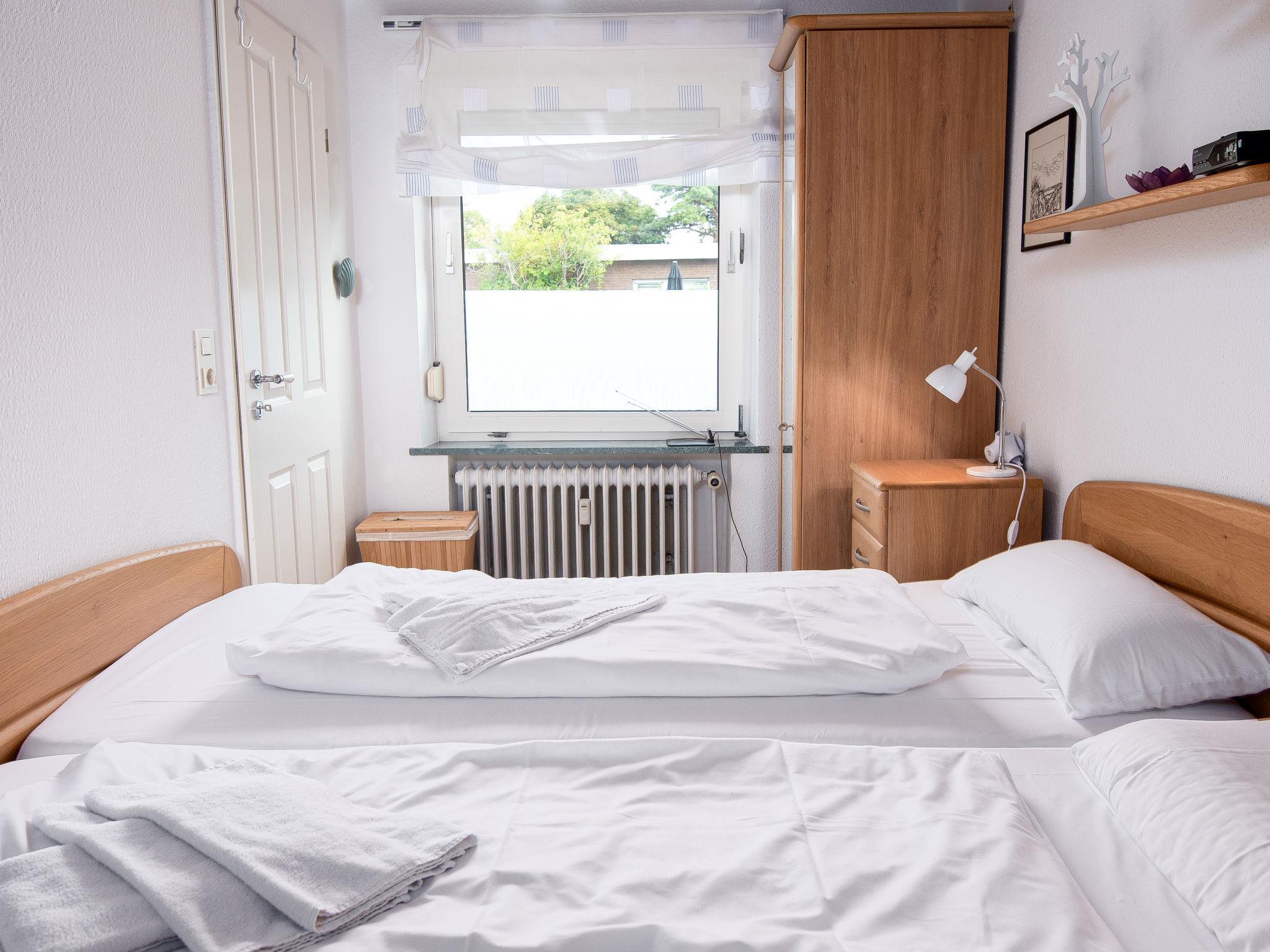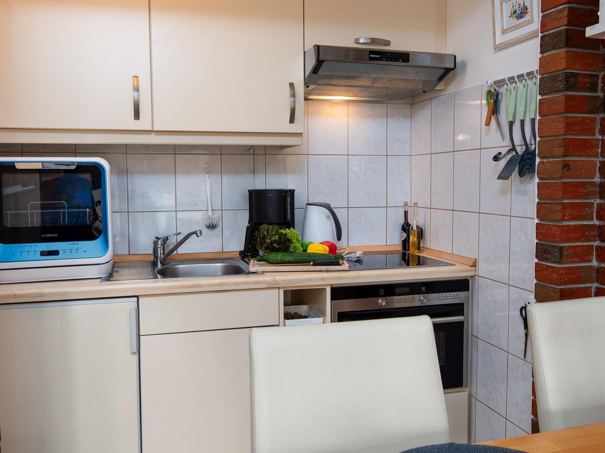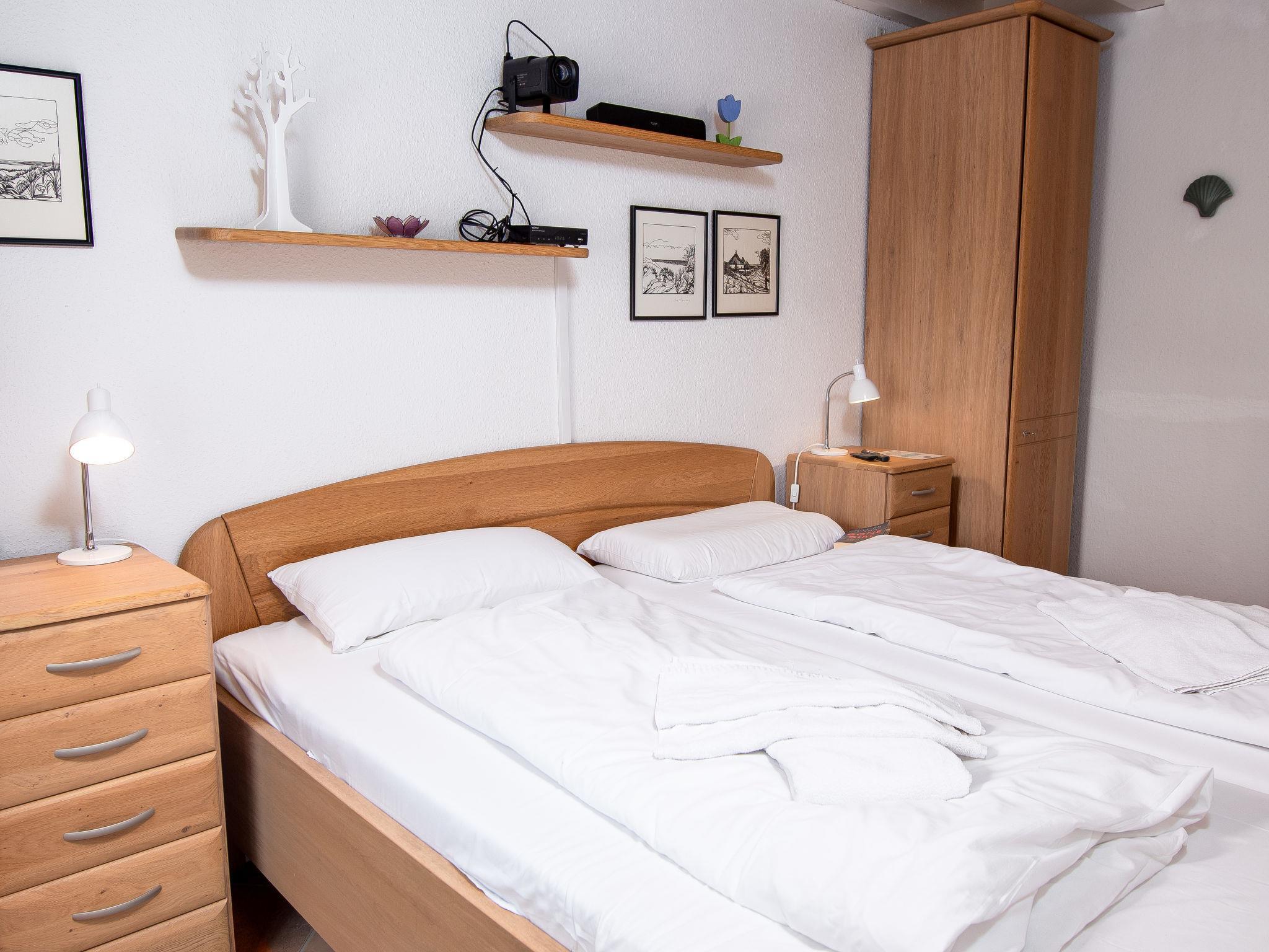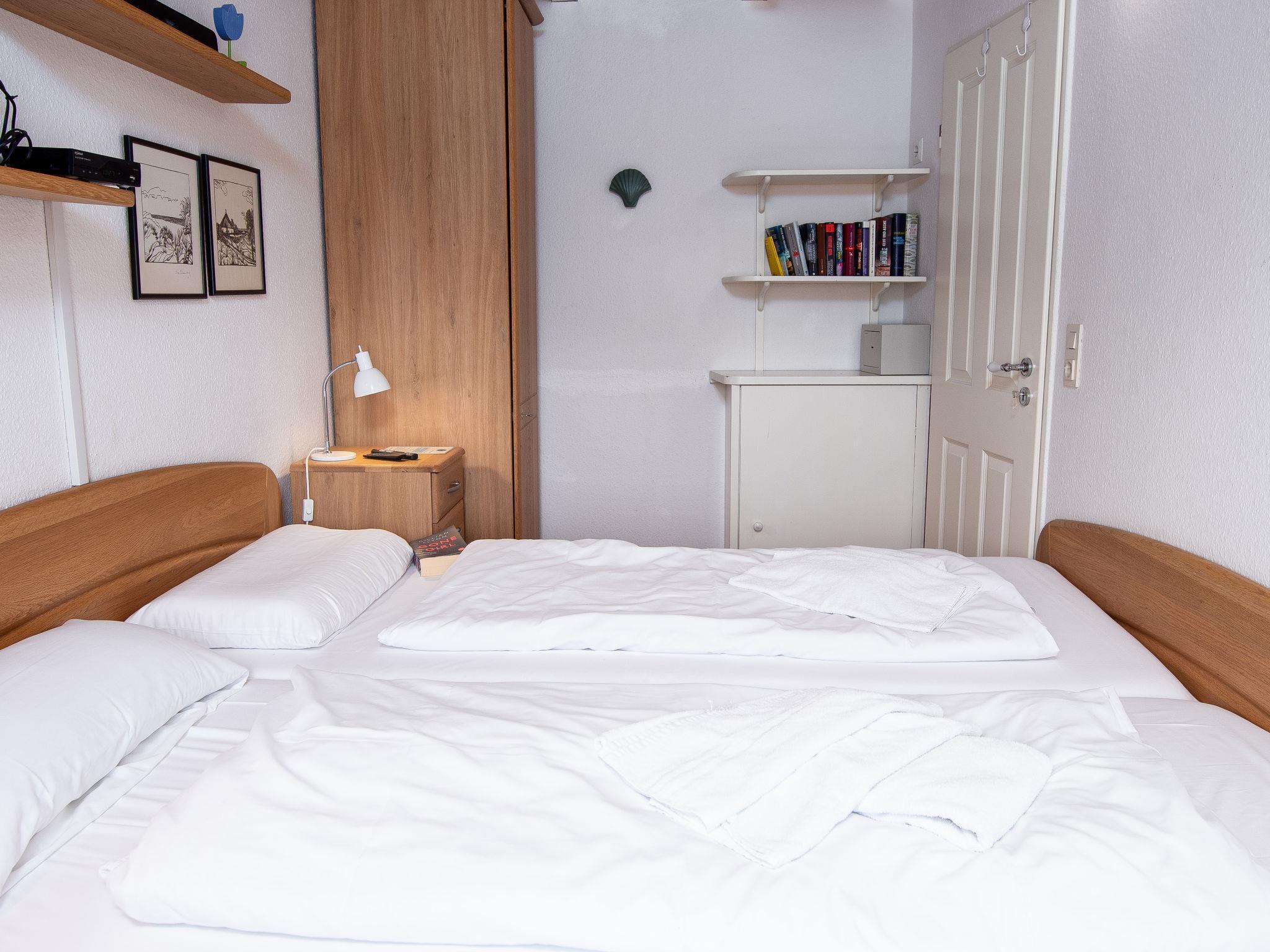 "Klaffmuschel", 3-Zimmer-Reihenhaus 50 m2, im Erdgeschoss. Schön und geschmackvoll eingerichtet: Wohn-/Esszimmer 18 m2 mit Sat-TV (Flachbildschirm), CD und DVD. Ausgang zur Terrasse. 1 Zimmer 8 m2 mit 1 Doppelbett (2 x 90 cm, Länge 200 cm). 1 Zimmer 7 m2 mit 2 Betten (90 cm, Länge 200 cm). Kochnische (Backofen, Geschirrspüler, 4 Glaskeramikplatten, Toaster, Wasserkocher, elektrische Kaffeemaschine, Kapseln für die Kaffeemaschine (Nespresso Vertuo) extra). Dusche/WC. Terrasse 8 m2. Terrassenmöbel. Zur Verfügung: Kinderhochstuhl (extra). Internet (Wireless LAN, gratis). Bitte beachten: Nichtraucher-Haus. Rauchmelder. Das Doppelzimmer verfügt über einen smarten Beamer mit TV Funktion.