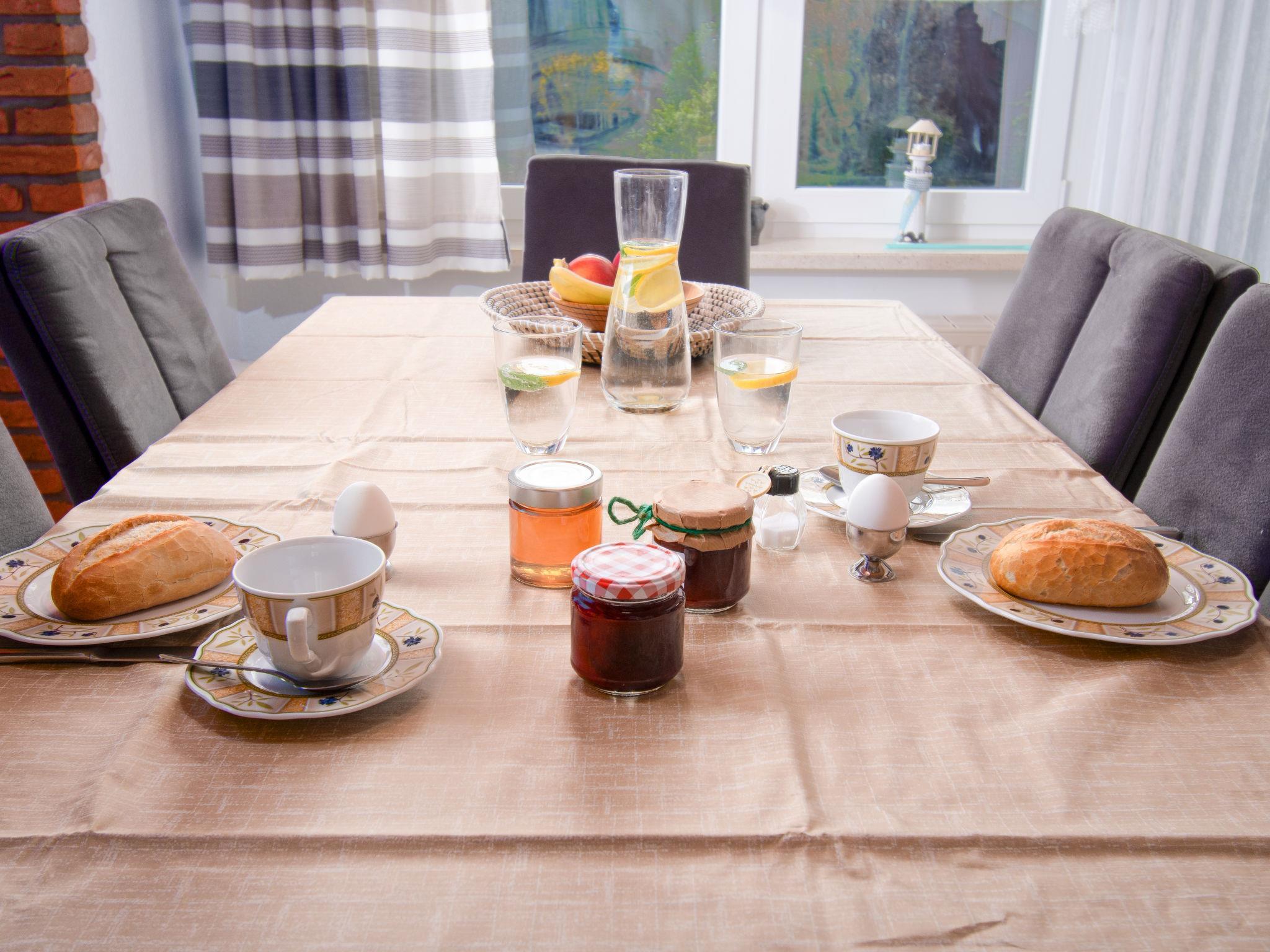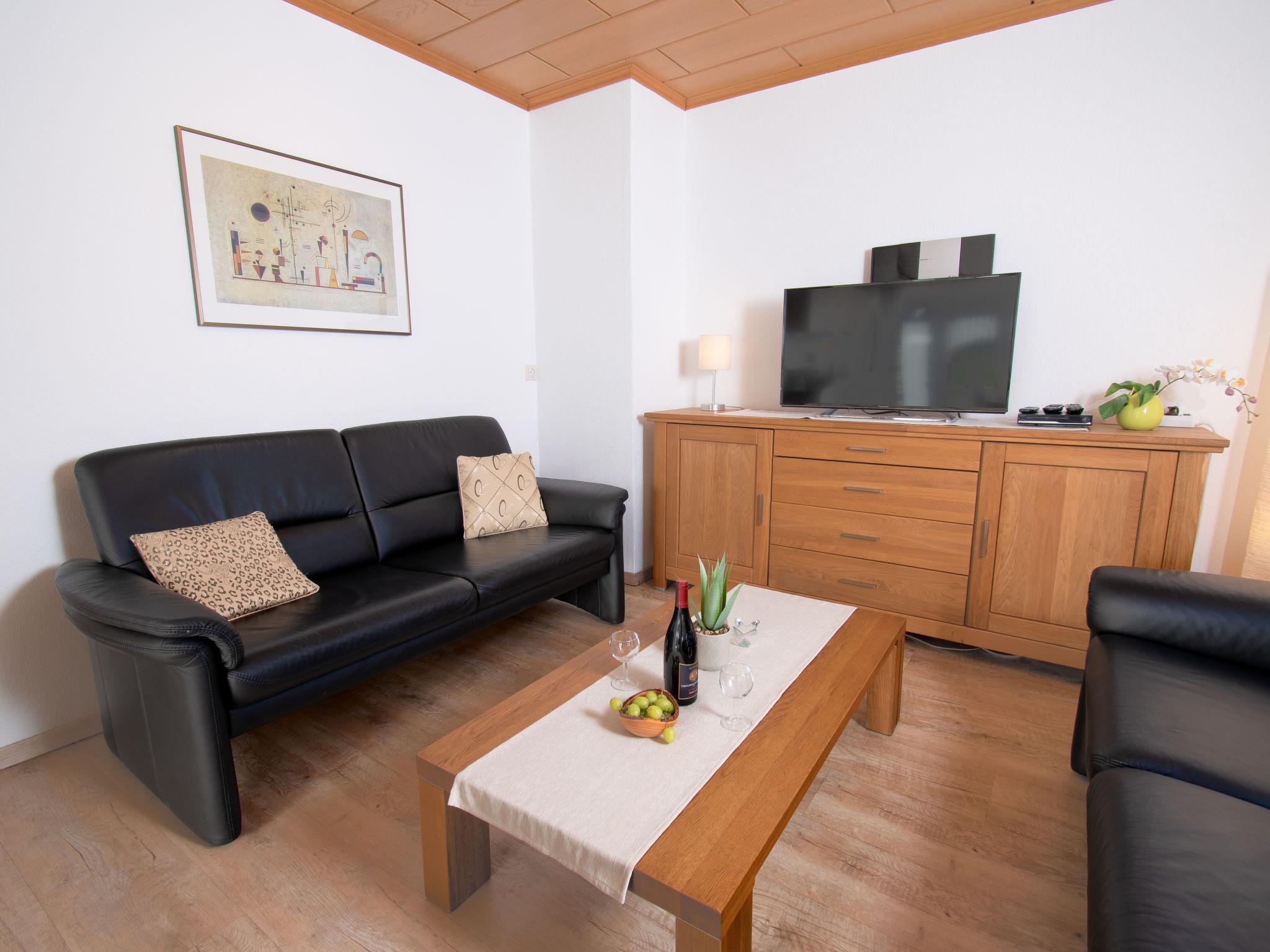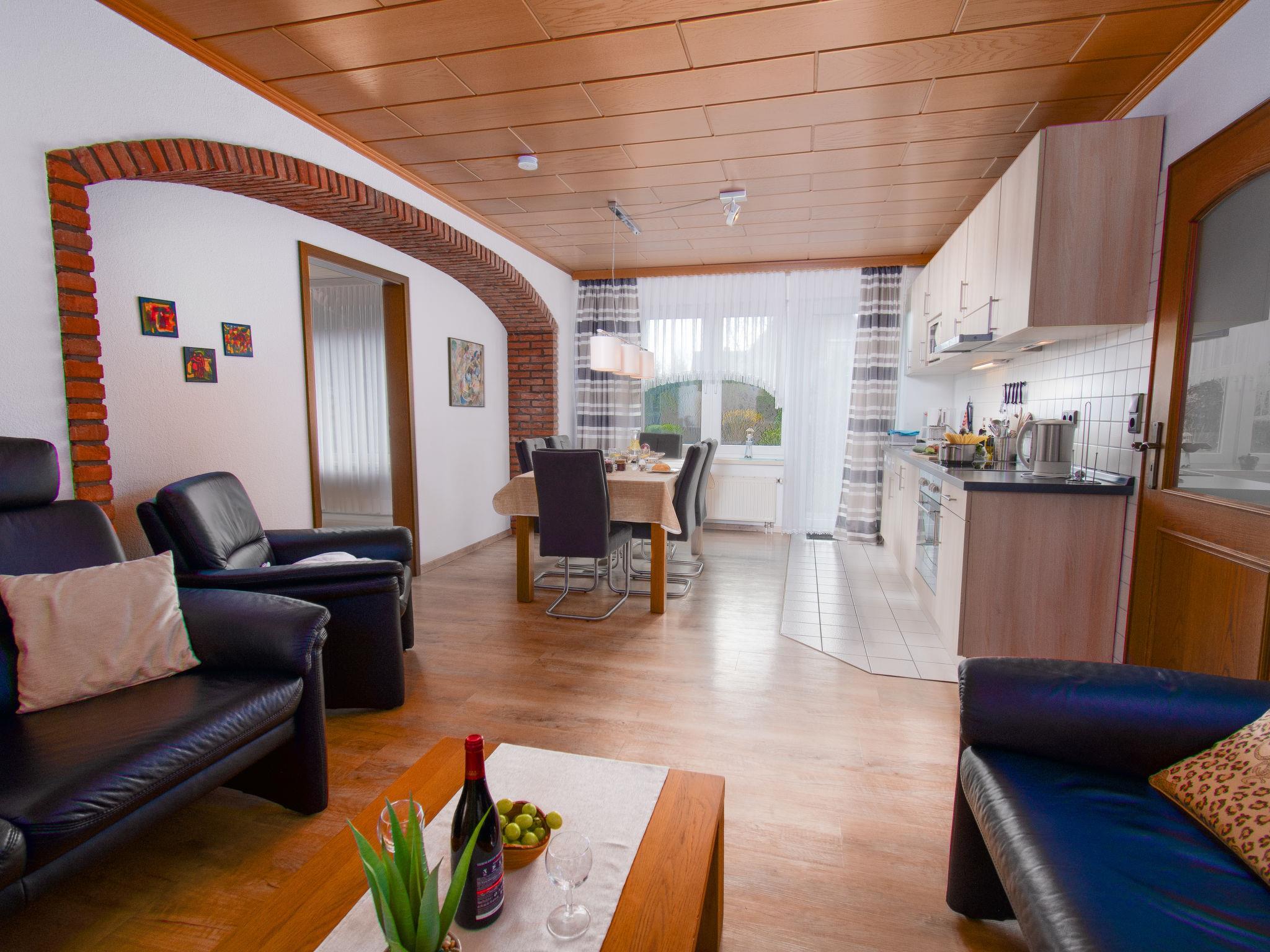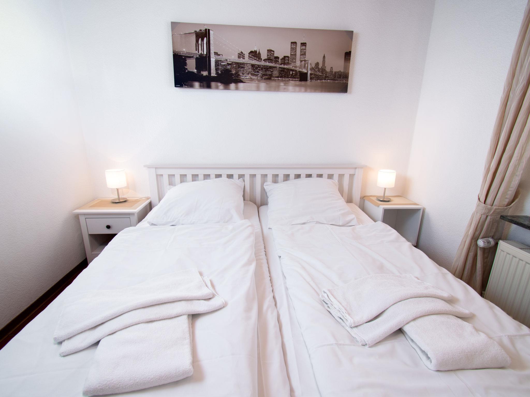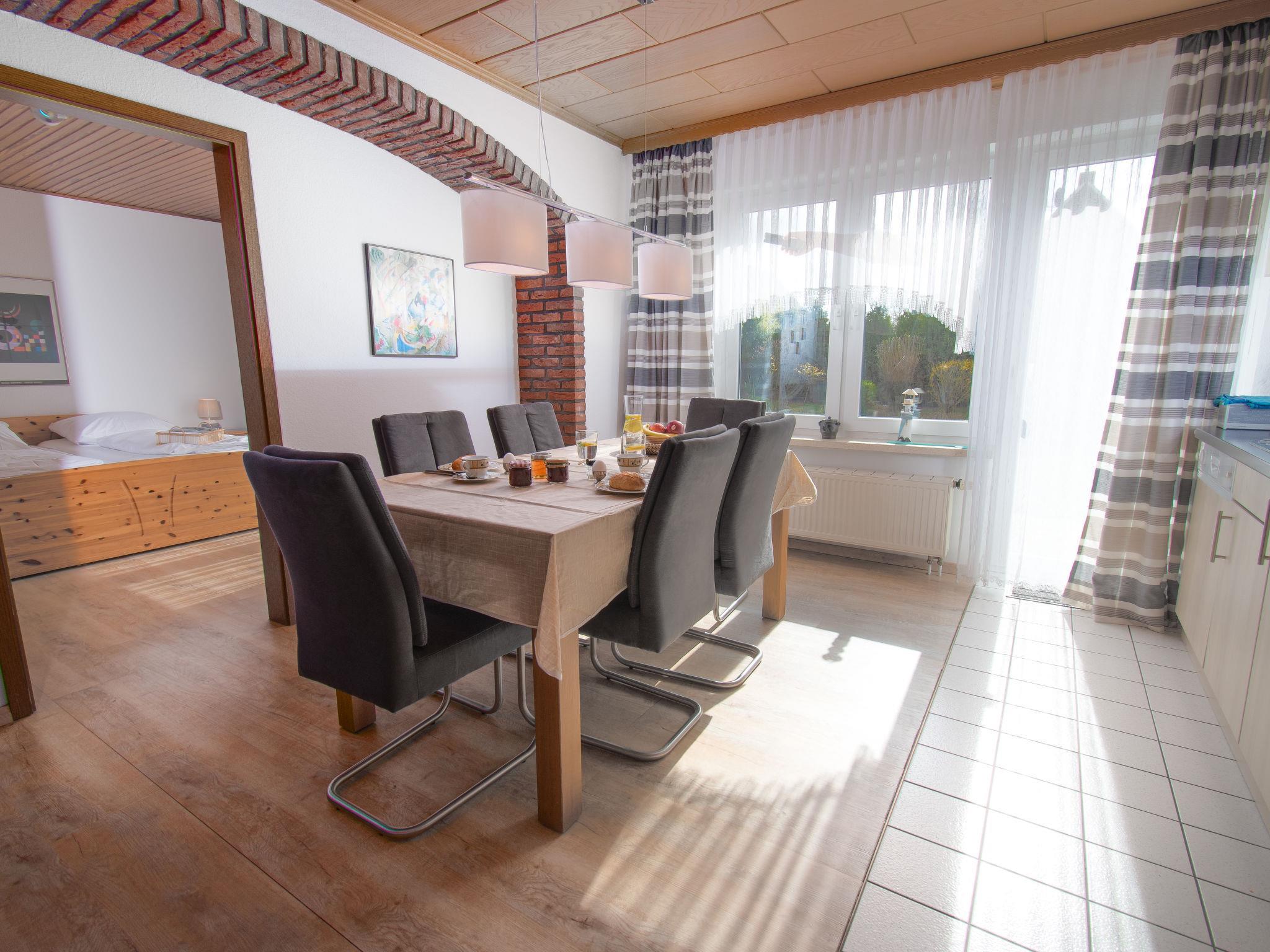 "Nordwind", 3-Zimmer-Wohnung 64 m2, im Erdgeschoss. Gemütlich eingerichtet: Wohn-/Esszimmer 24 m2 mit Kabel-TV (Flachbildschirm), Stereoanlage. Ausgang zur Terrasse. 1 Zimmer 16 m2 mit 1 Doppelbett (2 x 90 cm, Länge 200 cm). 1 Zimmer 8 m2 mit 1 Doppelbett (2 x 90 cm, Länge 200 cm). Kochnische (4 Kochplatten, Backofen, Geschirrspüler, Toaster, Wasserkocher, Mikrowelle, elektrische Kaffeemaschine) mit Esstisch. Dusche, sep. WC. Terrasse 20 m2, Garten 40 m2. Terrassenmöbel. Zur Verfügung: Kinderhochstuhl (extra). Internet (Wireless LAN, gratis). Bitte beachten: Nichtraucher-Unterkunft. Rauchmelder.