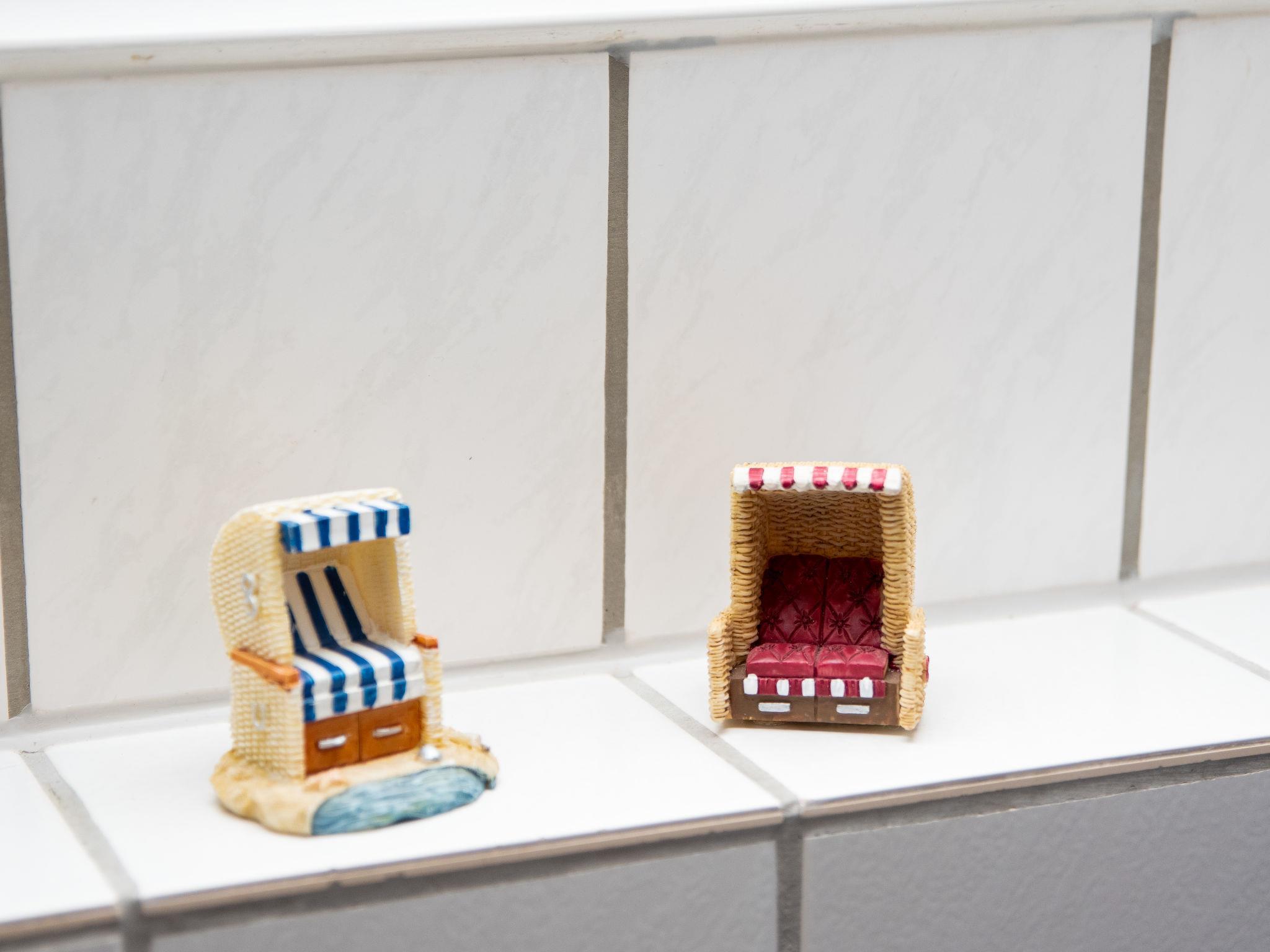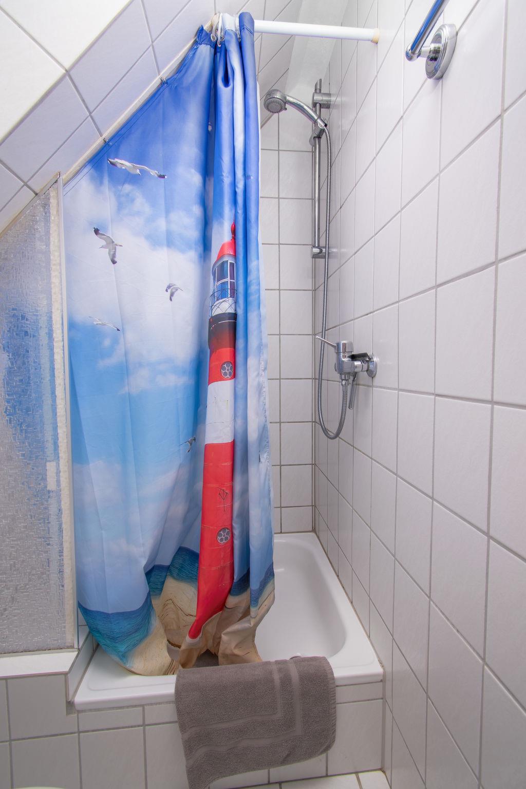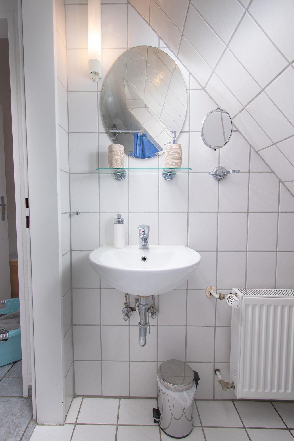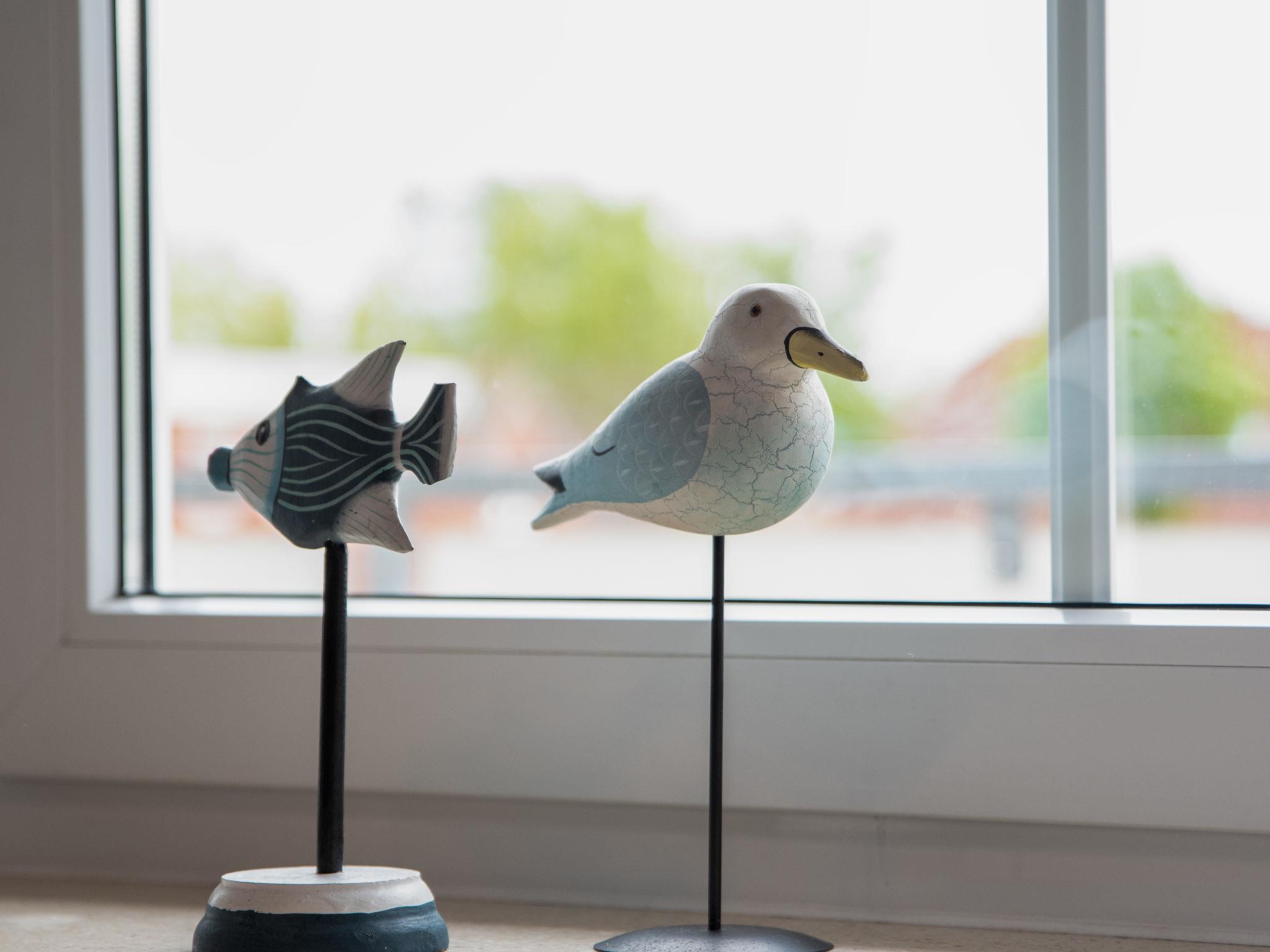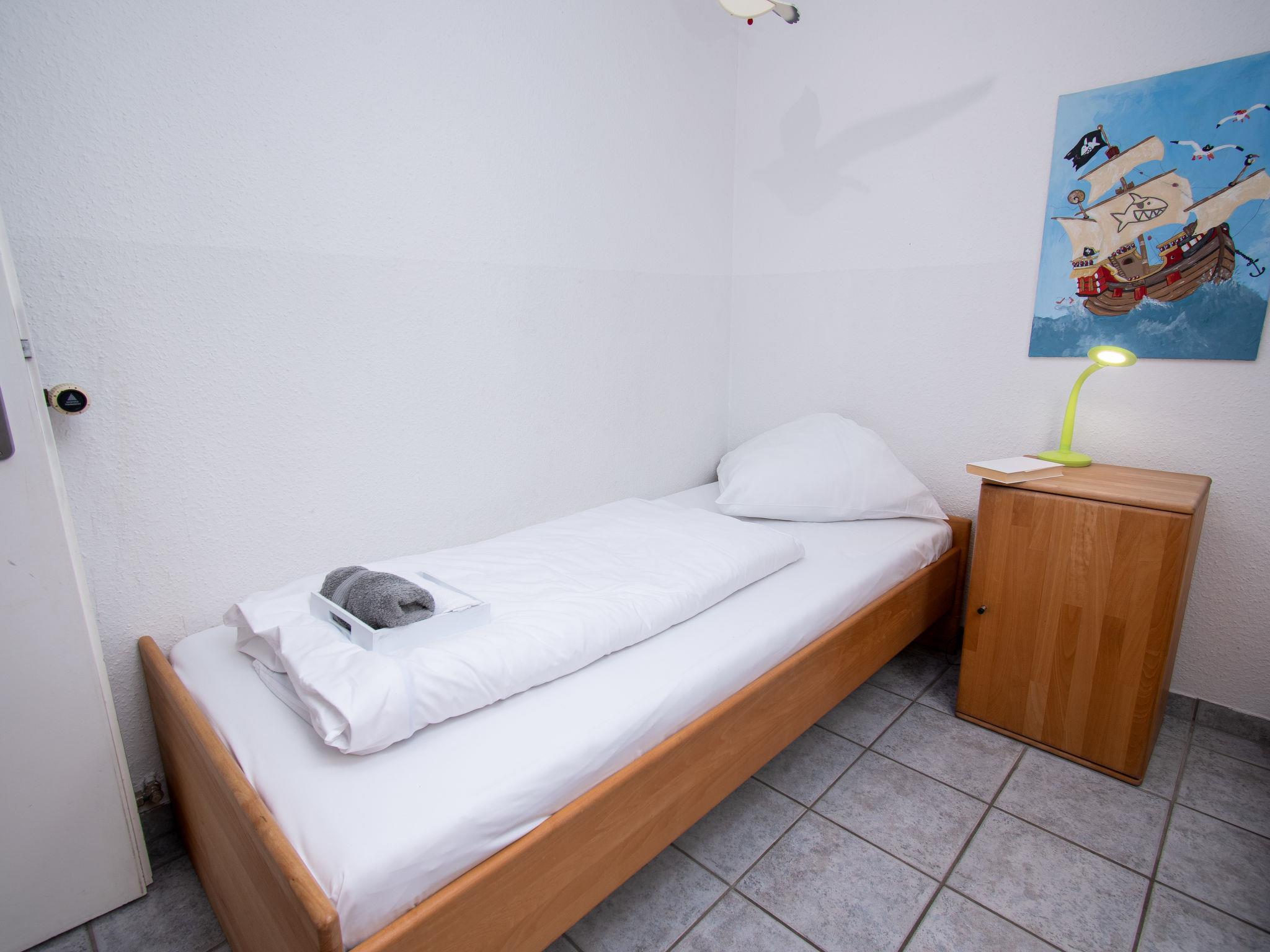 "Krabbe", 3-Zimmer-Wohnung 40 m2 im 1. Stock. Teilweise abgeschrägt: Wohn-/Esszimmer mit Sat-TV (Flachbildschirm). 1 Zimmer mit 1 Doppelbett (2 x 90 cm, Länge 190 cm). 1 Zimmer mit 2 Betten (90 cm, Länge 200 cm). Küche (4 Kochplatten, Backofen, Geschirrspüler, Mikrowelle, elektrische Kaffeemaschine, Kapseln für die Kaffeemaschine (Senseo) extra). Dusche/WC. Balkon 8 m2. Balkonmöbel. Zur Verfügung: Kinderhochstuhl (extra). Internet (Wireless LAN, gratis). Bitte beachten: Kühlschrank ohne Gefrierfach, Nichtraucher-Unterkunft. Maximal 1 Haustier/Hund erlaubt. Rauchmelder. Die Wohnung ist über eine Aussentreppe zu erreichen.