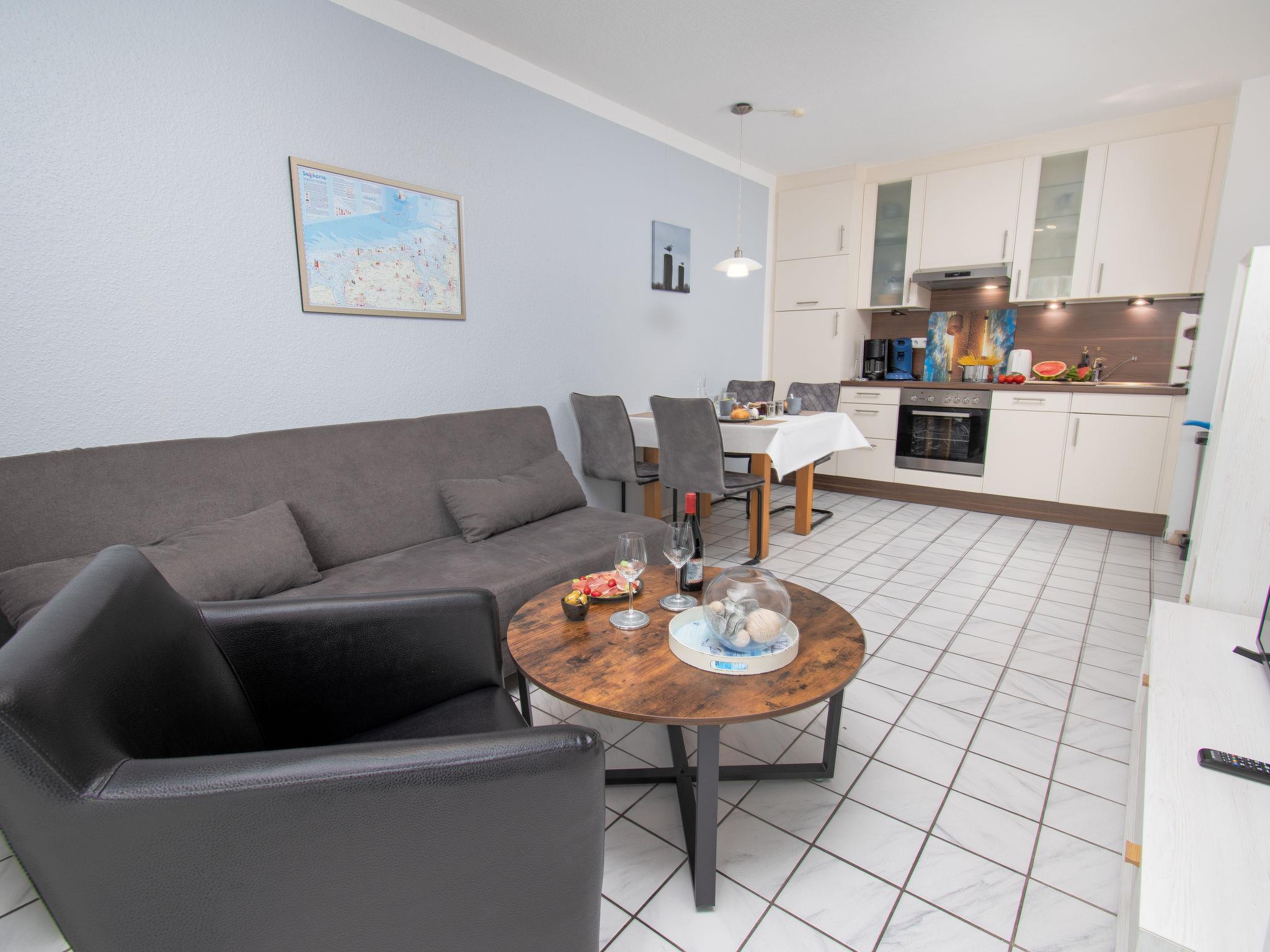 Gemütliche 3-Zimmer-Wohnung "Krabbe" in Norddeich mit Balkon, WLAN und Nähe zum Strand für erholsamen Urlaub.