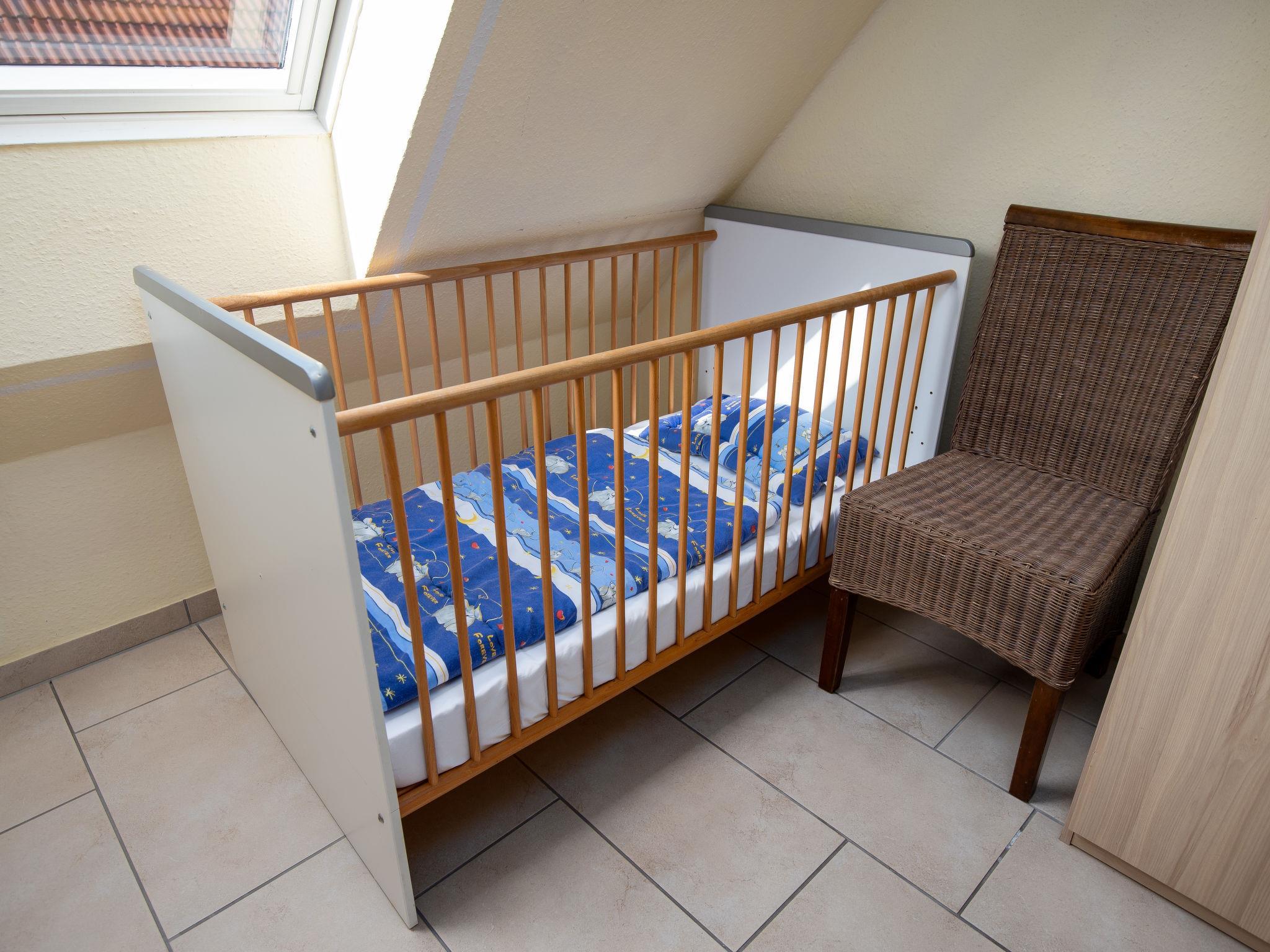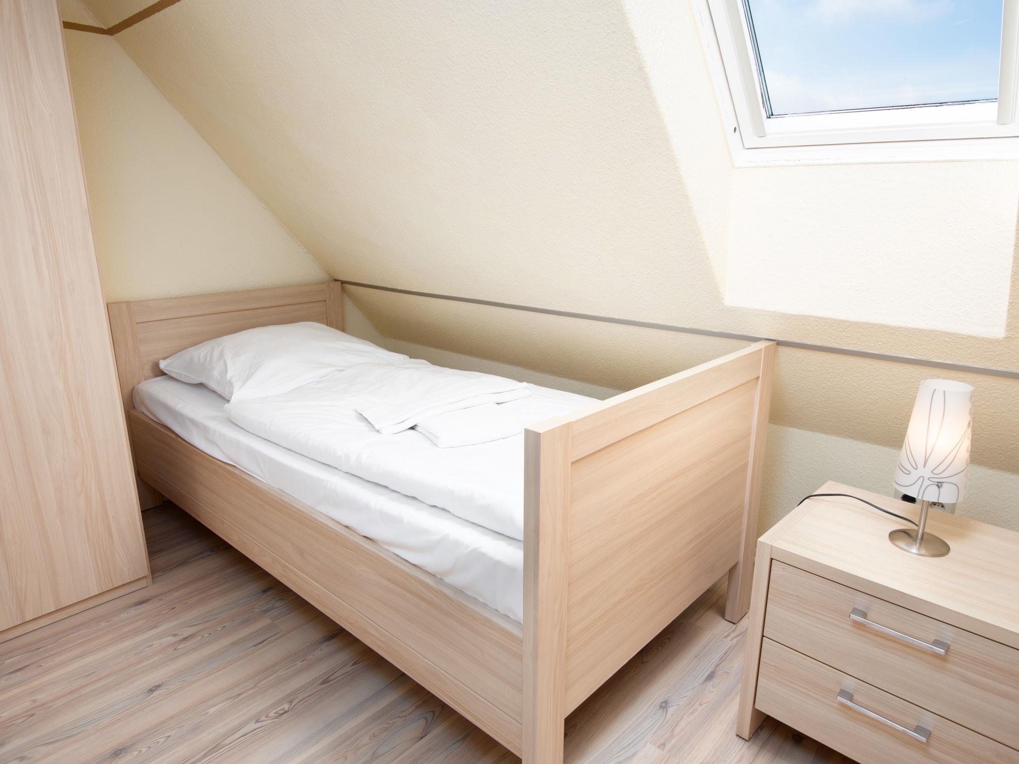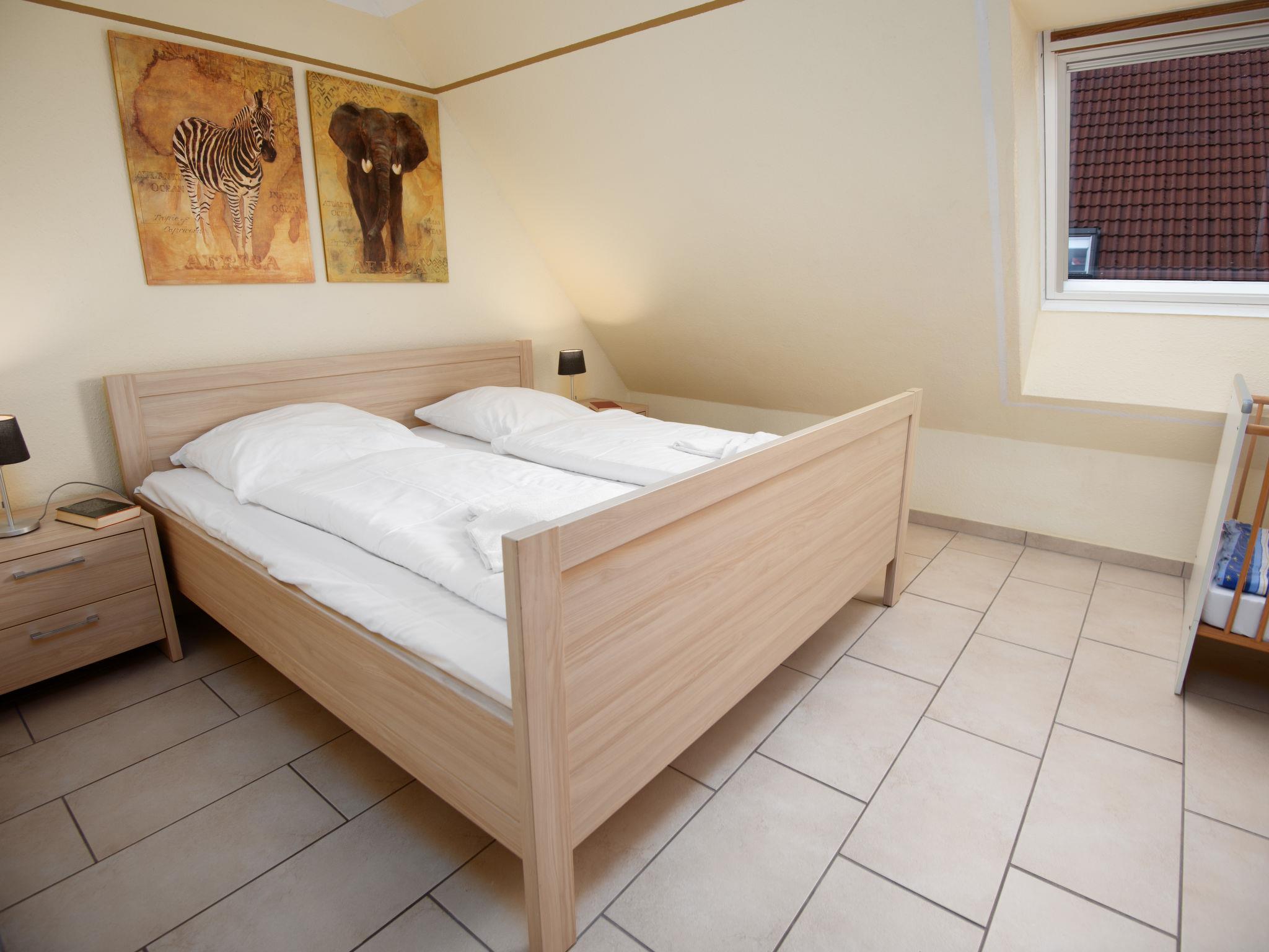 "Storchennest", 4-Zimmer-Reihenhaus 80 m2 auf 3 Stockwerken, im Erdgeschoss. Modern und geschmackvoll eingerichtet: Wohn-/Esszimmer 25 m2 mit Digital-TV, Flachbildschirm und Stereoanlage. Ausgang zur Terrasse. Offene Küche (Backofen, Geschirrspüler, 4 Glaskeramikplatten, Toaster, Wasserkocher, Mikrowelle, elektrische Kaffeemaschine, Kapseln für die Kaffeemaschine (Senseo) extra) mit Esstisch. Sep. WC. Obergeschoss: 1 Zimmer 13 m2 mit 1 Doppelbett (2 x 90 cm, Länge 200 cm). 1 abgeschrägtes Zimmer 7 m2 mit 2 Betten (90 cm, Länge 200 cm). Dusche/WC. Dachgeschoss: 1 abgeschrägtes Zimmer 8 m2 mit 2 Betten (90 cm, Länge 200 cm), Stereoanlage. Terrasse 10 m2. Terrassenmöbel. Zur Verfügung: Bügeleisen, Kinderhochstuhl (extra). Internet (WLAN, gratis). Bitte beachten: Nichtraucher-Haus. Maximal 1 kleines Haustier/Hund erlaubt. Rauchmelder.