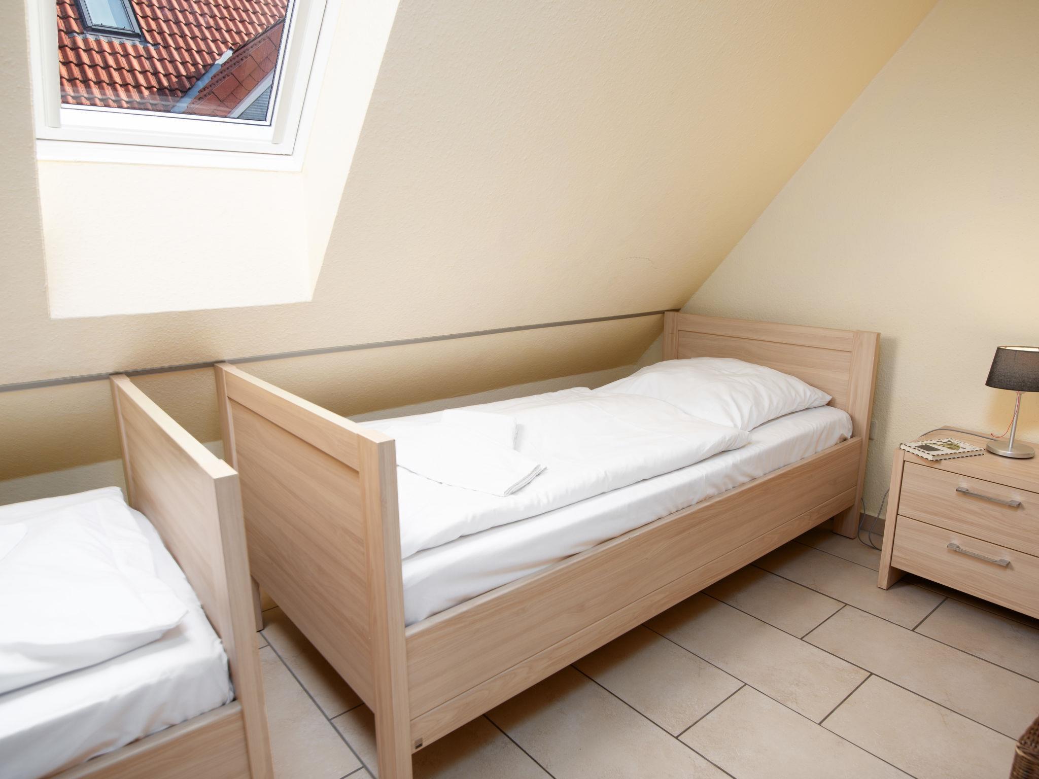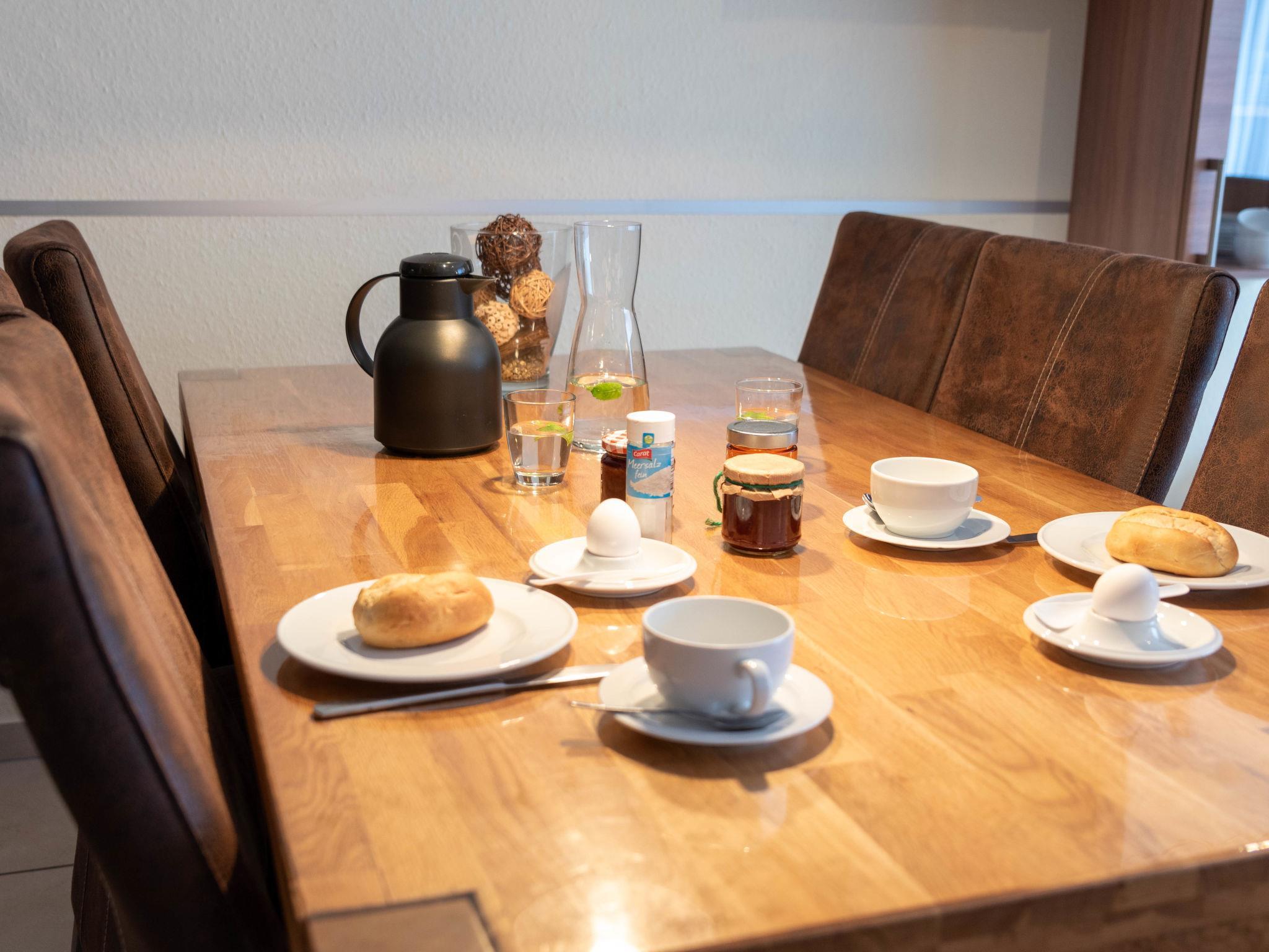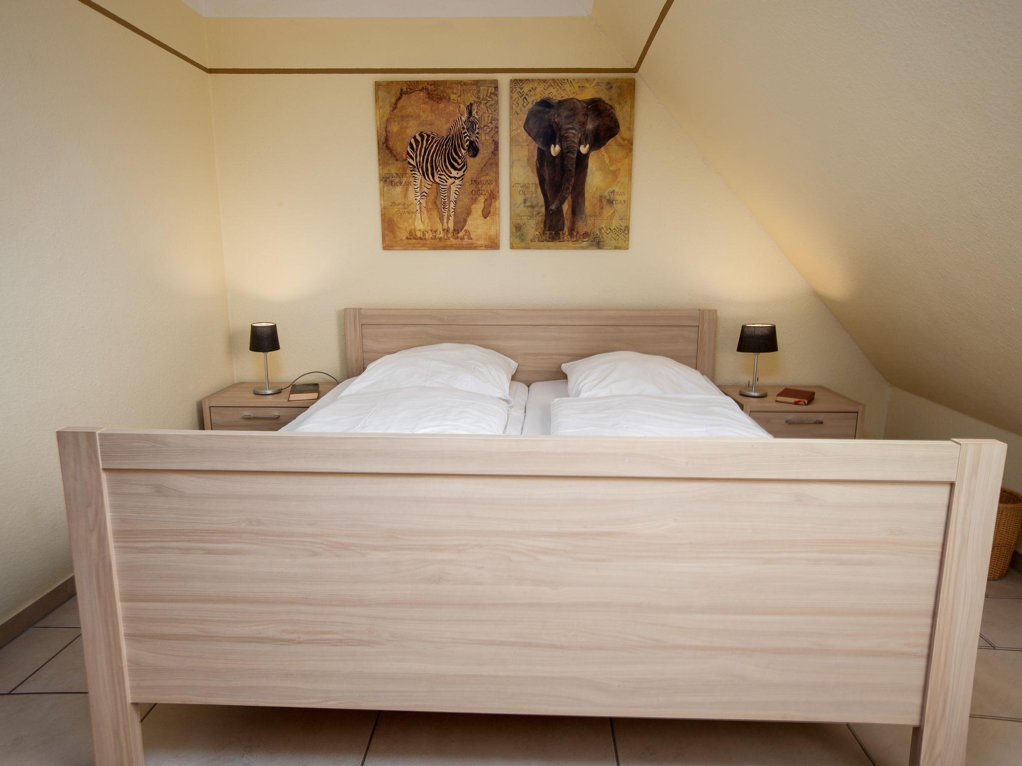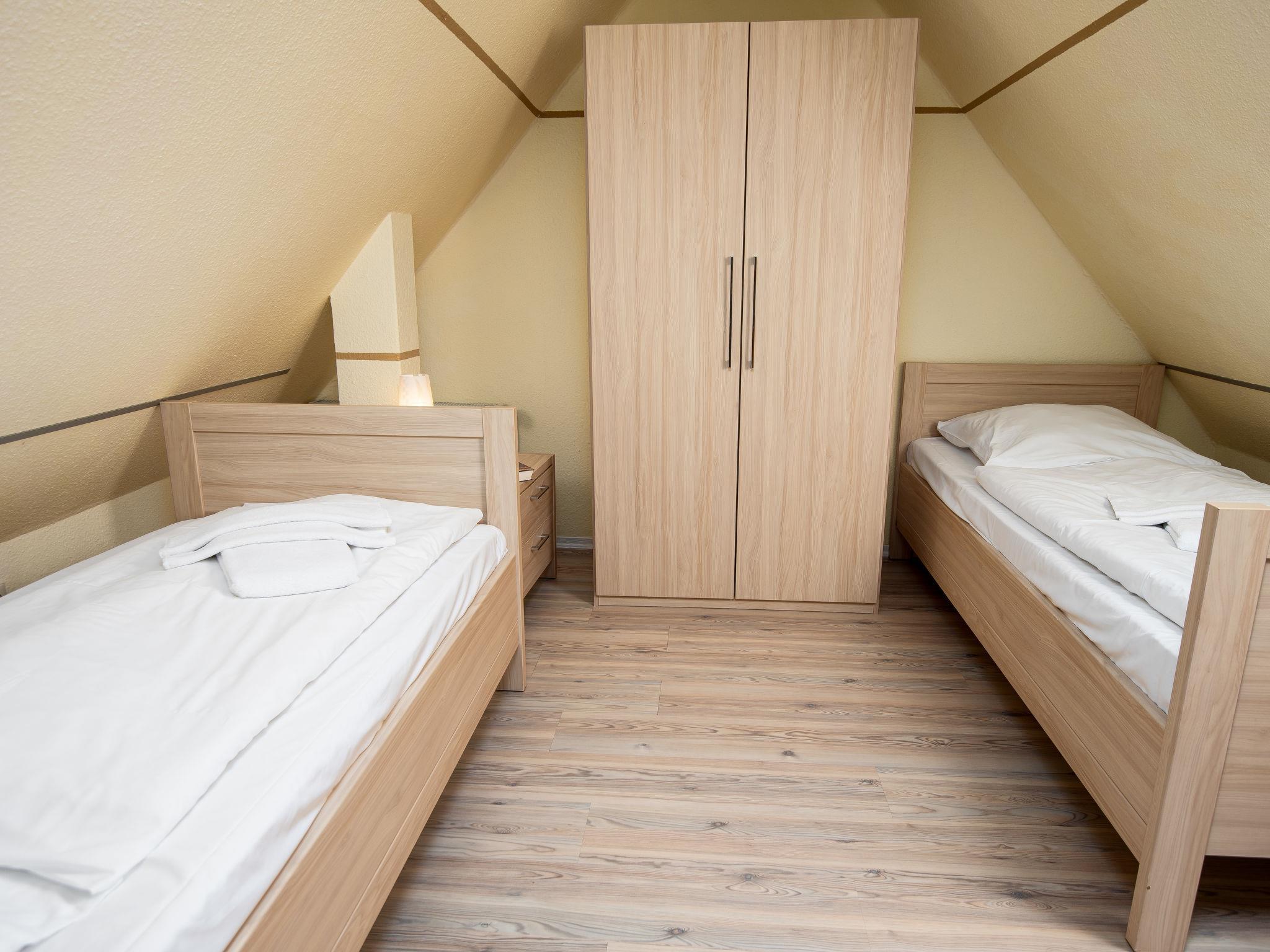 "Storchennest", 4-Zimmer-Reihenhaus 80 m2 auf 3 Stockwerken, im Erdgeschoss. Modern und geschmackvoll eingerichtet: Wohn-/Esszimmer 25 m2 mit Digital-TV, Flachbildschirm und Stereoanlage. Ausgang zur Terrasse. Offene Küche (Backofen, Geschirrspüler, 4 Glaskeramikplatten, Toaster, Wasserkocher, Mikrowelle, elektrische Kaffeemaschine, Kapseln für die Kaffeemaschine (Senseo) extra) mit Esstisch. Sep. WC. Obergeschoss: 1 Zimmer 13 m2 mit 1 Doppelbett (2 x 90 cm, Länge 200 cm). 1 abgeschrägtes Zimmer 7 m2 mit 2 Betten (90 cm, Länge 200 cm). Dusche/WC. Dachgeschoss: 1 abgeschrägtes Zimmer 8 m2 mit 2 Betten (90 cm, Länge 200 cm), Stereoanlage. Terrasse 10 m2. Terrassenmöbel. Zur Verfügung: Bügeleisen, Kinderhochstuhl (extra). Internet (WLAN, gratis). Bitte beachten: Nichtraucher-Haus. Maximal 1 kleines Haustier/Hund erlaubt. Rauchmelder.