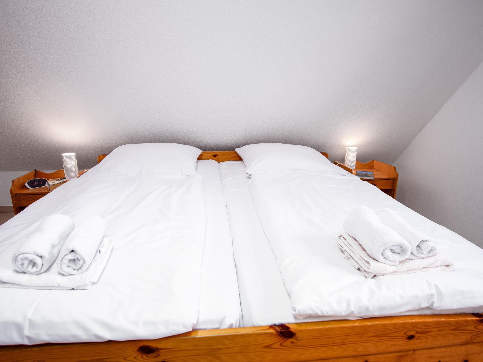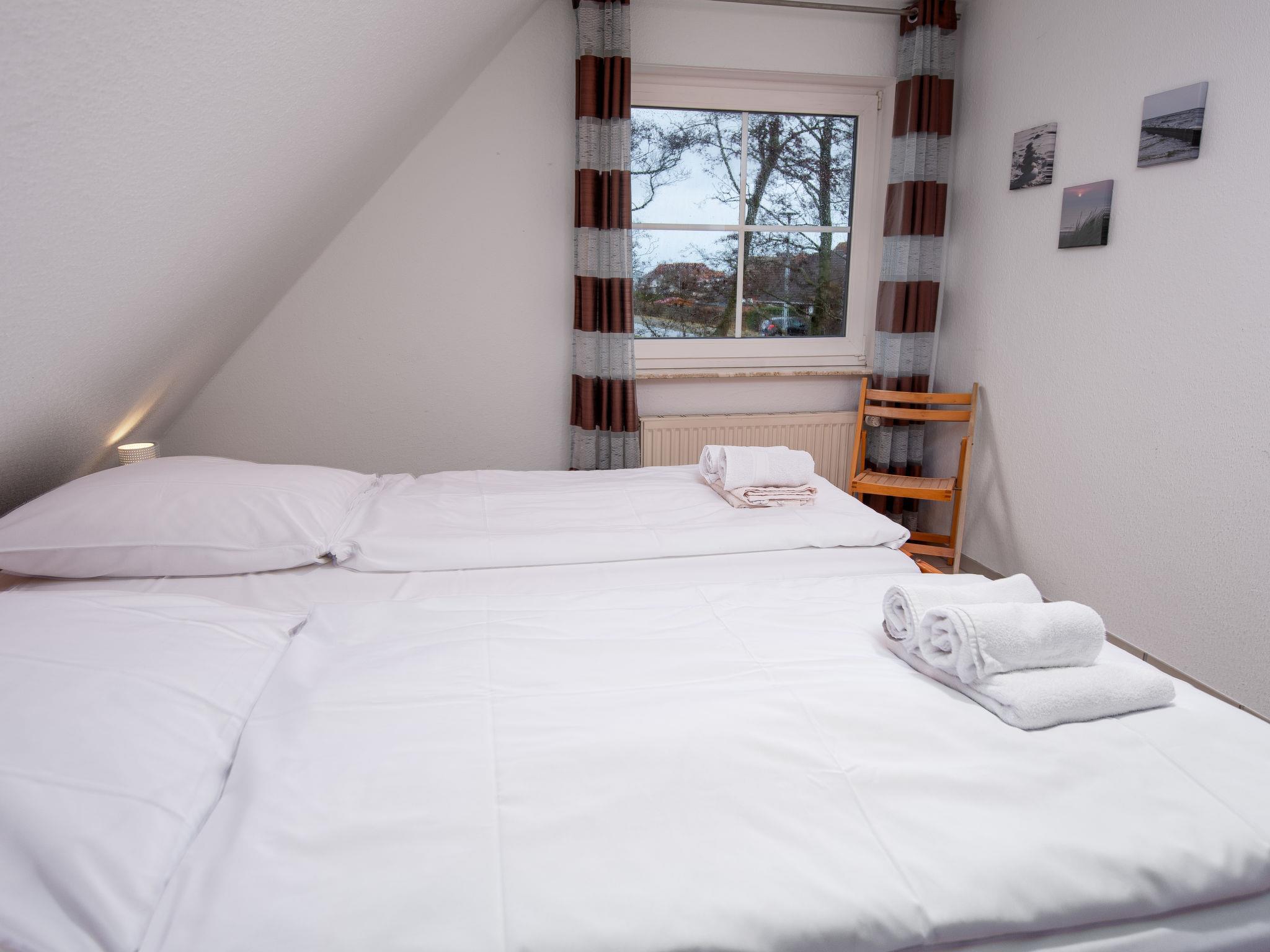 "Nordlicht", 4-Zimmer-Reihenhaus 70 m2 auf 3 Stockwerken, im Erdgeschoss. Schön und gemütlich eingerichtet: Wohn-/Esszimmer 22 m2 mit Digital-TV, Flachbildschirm und Radio. Ausgang zur Terrasse. Offene Küche (4 Kochplatten, Backofen, Geschirrspüler, Toaster, Wasserkocher, Mikrowelle, elektrische Kaffeemaschine). Sep. WC. Obergeschoss: 1 abgeschrägtes Zimmer 10 m2 mit 1 Doppelbett (2 x 100 cm, Länge 200 cm). 1 abgeschrägtes kleines Zimmer 6 m2 mit 1 Bett (90 cm, Länge 200 cm). Dusche/WC. Dachgeschoss: (steile Treppe) 1 abgeschrägtes kleines Zimmer 12 m2 mit 2 Betten (90 cm, Länge 200 cm). Kleine Terrasse, Rasen. Terrassenmöbel. Zur Verfügung: Kinderhochstuhl (extra). Internet (Wireless LAN, gratis). Bitte beachten: Nichtraucher-Haus. Maximal 1 Haustier/Hund erlaubt. Rauchmelder.