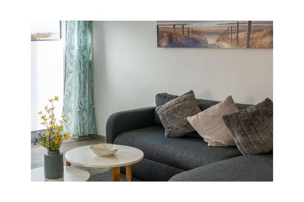 Moderne Ferienwohnung mit Balkon im Herzen von Norddeich, direkt am Deich und nahe dem Sandstrand.
