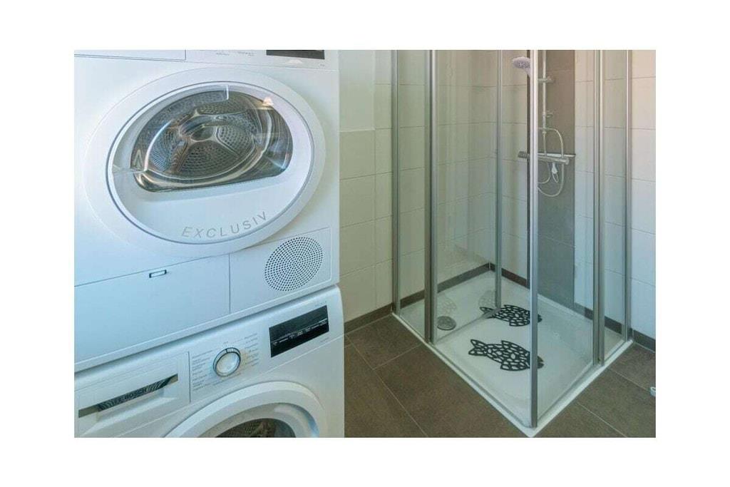 , Eingangshalle(), Wohnzimmer(Schlafcouch 1 Pers., TV, Heizung), Küche(Kochplatte, Wasserkocher, Toaster, Kaffeemaschine, Backofen, Mikrowelle, Spülmaschine, Kühlschrank, Tiefkühlschrank), Schlafzimmer(, Doppelbett), Badezimmer(, Toilette, Dusche, Föhn), Internet, Trockner, Waschmaschine, Balkon(Balkon), Gartenmöbel, Parkplatz, Trockenschrank