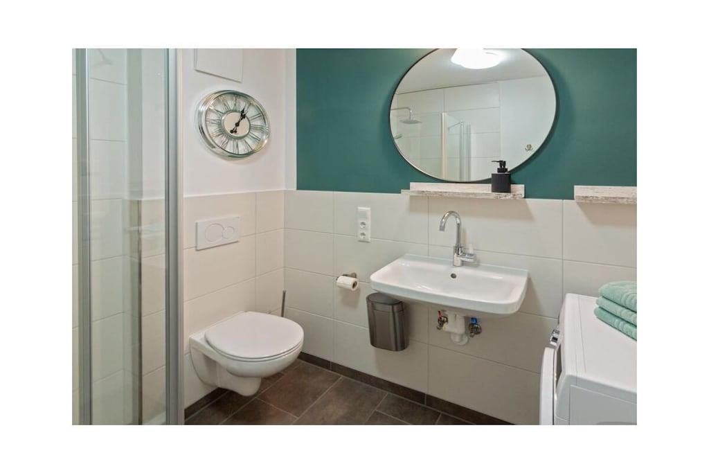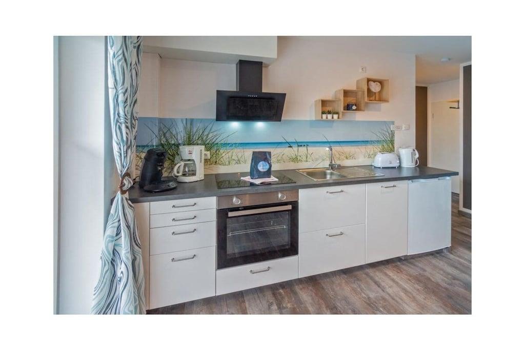 Ferienwohnung Traum Wohnung 4 Norddeicher Str. 226c Norddeich ist der bekannteste und attraktivste Stadtteil Nordens. Zahlreiche Urlauber zieht es jedes Jahr hierher. Obwohl das Örtchen überschaubar ist, lässt es an nichts fehlen. Es gibt viele kleine Geschäfte, hübsche Lokale, ein breites touristisches Angebot für Groß und Klein. In Ihrem eigenen Ferienapartment können Sie sich inmitten Norddeichs wohnen und sich gleichzeitig in Ihre vier Wände zurückziehen, wenn Sie das Bedürfnis danach verspüren. Perfekt für ungetrübtes Urlaubsglück sind die „Traum"-Wohnungen dieses Ferienhauses. Das Mehrparteienhaus liegt unmittelbar im Zentrum Norddeichs. Sie sind also sofort im geschehen und dürfen sich dennoch an der Zurückgezogenheit Ihrer Ferienwohnung freuen. Mieten Sie hier ein kleines Nest für bis zu zwei Personen, oder nutzen Sie die Möglichkeit, mit mehreren Familien gemeinsam Urlaub in einem Haus zu verbringen und dabei trotzdem jeder sein eigenes Reich zu haben. Die Wohnung Traum 4 liegt im ersten Stock des Hauses, in dessen Erdgeschoss sich ein kleines Ladenlokal befindet. Sie ist über das Treppenhaus, aber auch über einen Lift bequem zu erreichen. Im Inneren erwartet Sie dank der hellen Farbgebung, den vielen Fenstern und der geschmackvollen Einrichtung ein einladendes Ambiente. Über den Flur gelangen Sie direkt in das Herzstück der Wohnung, einem großzügig geschnittenen Wohn-Essbereich. Hier ist die offene Küche der ideale Ort, um gemeinsame Mahlzeiten zuzubereiten. Eine gemütliche Essgruppe wirkt ebenso einladend wie die gemütliche Sofalandschaft, auf der Sie Ihre Fernsehabende verbringen dürfen. Über den Wohnbereich gelangen Sie auf den Balkon. Obwohl er nicht allzu groß ist, finden zwei Personen hier ausreichend Platz, um gemeinsame Stunden zu verbringen. Mit seiner Ausrichtung nach Süden verspricht er Ihnen den ganzen Tag wohltuendes Sonnenlicht. Das Schlafzimmer ist ebenso voll möbliert mit einem gemütlichen Doppelbett, einem Kleiderschrank und einer Kommode. Ein besonderes Augenmerk sei auf das moderne Badezimmer mit den eleganten weiß-braunen Fliesen gerichtet. Die Duschkabine ist in Bodennähe und damit komfortabel zu begehen. Das gesamte Objekt ist mit Bedacht ausgestattet, so dass Ihnen zu Ihrem Komfort nichts fehlen dürfte. In der Küche stehen Ihnen alle notwendigen Elektrogeräte wie Kaffeemaschine, Wasserkocher, Herd, Backofen und Spülmaschine zur Verfügung, im Badezimmer eine Waschmaschine und ein Trockner. Auf Wunsch wird Ihnen auch ein Wäschepaket aus Bettwäsche, Handtüchern und Badvorleger zur Verfügung gestellt. Für den sorgenfreien Start in den Urlaub buchen Sie unser Wäschepaket. Dieses besteht aus Bettwäsche, Handtüchern sowie Duschvorleger, Geschirrhandtüchern und einem Serviceset (Toi-Papier, Spülmaschinentabs, Müllbeutel, Spülbürste, Putzlappen und sonstigen kleinen Helfern) für den sorglosen Start Ihres Urlaubes.