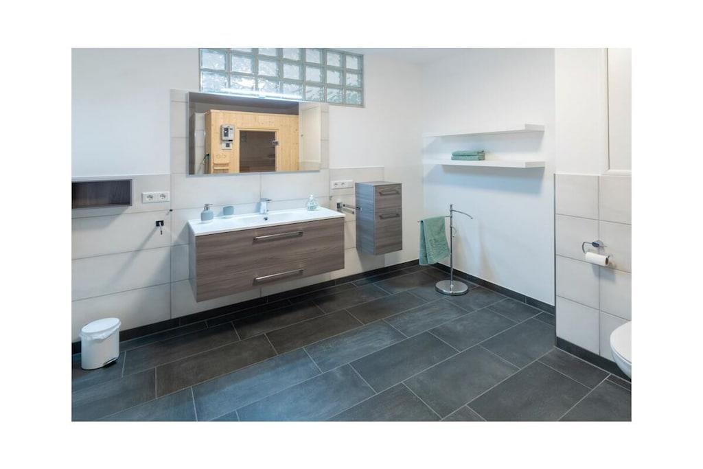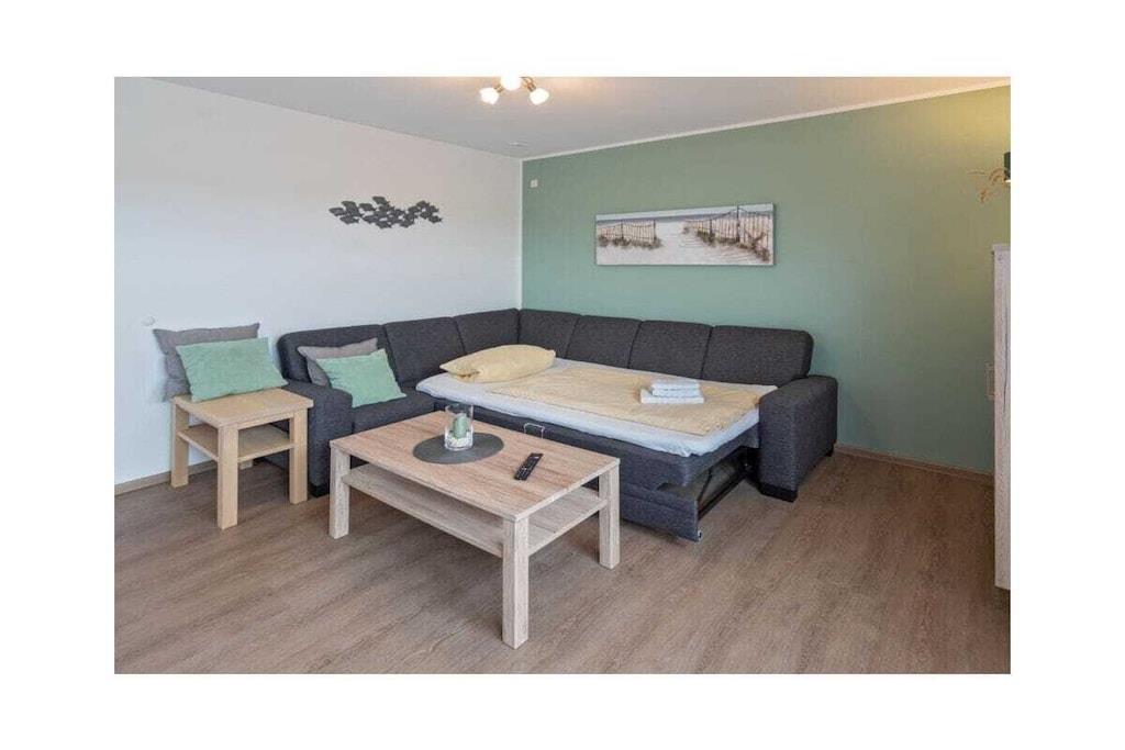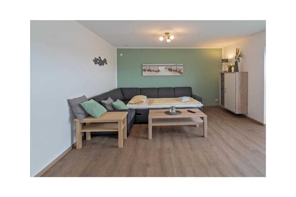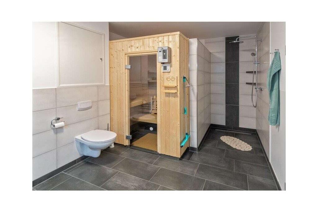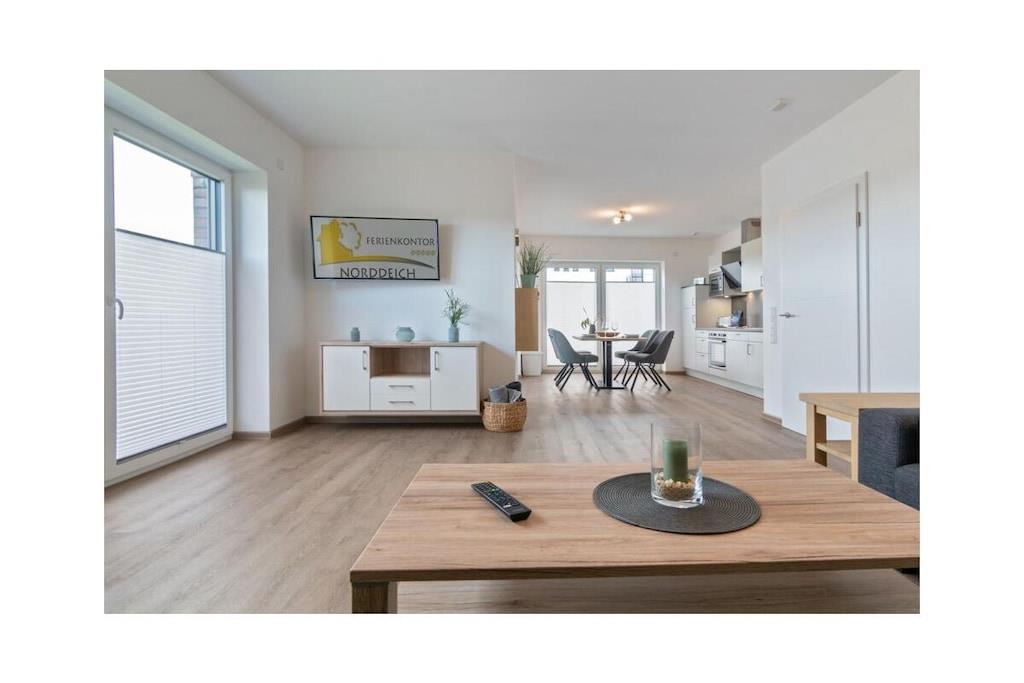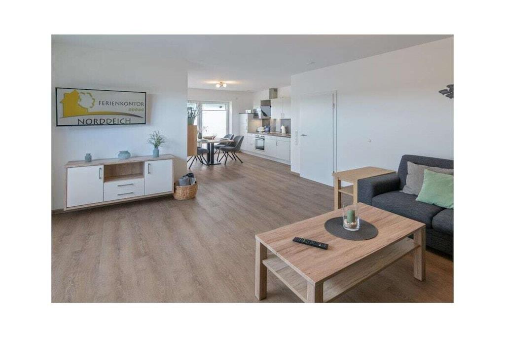 Moderne Ferienwohnung Wellness-Oase nahe Norddeichs Strand mit Sauna und Terrasse für entspannte Urlaubstage.
