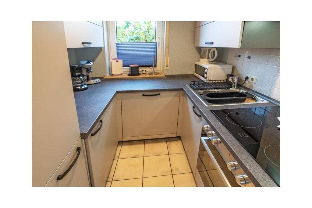 Ferienhaus Lucy Am Warft 4 Norddeich mit seinem herrlichen Sandstrand, der wohltuenden Nordseeluft, seiner landschaftlichen Schönheit und dem vielfältigen touristischen und gastronomischen Angebot ist jedes Jahr ein beliebtes Urlaubsziel für Hunderttausende von Besuchern. Und dennoch wirkt der Vorort Nordens niemals überlaufen, sondern verspricht maximale Erholung. Dies alles genießen Sie in diesem schönen Feriendomizil. Das Haus Lucy Das charmante Reihenhaus befindet sich in einer ruhigen Seitengasse Norddeichs. Hier stört nichts Ihre Erholung. Trotzdem sind die vielfältigen Freizeit- und Erholungsangebote des beliebten Ferienorts nur wenige Schritte entfernt. Um an den Strand und das Naturschauspiel Deutsches Wattenmeer zu gelangen, braucht es nur einen schnellen Weg über den Deich. Genauso schnell haben Sie fußläufig die kleine Innenstadt mit den vielen Geschäften und verschiedenen kulinarischen Angeboten erreicht. Das Reihenhaus verfügt über Erdgeschoss und zwei weitere Obergeschosse und ist perfekt für 5 Personen geeignet. Sollte ein Baby oder Kleinkind mit anreisen, so können Sie hier auch zusätzlich über das vorhandene Baby-Reisebettchen und einen Hochstuhl verfügen. Der Parkplatz (es können zwei Autos hintereinander parken) ist direkt vor dem Haus. Im Erdgeschoss bildet der kombinierte Wohn- und Essbereich das Herzstück des Objekts. Gleich zwei bequeme Sofas laden dazu ein, sich zu entspannen. Selbstverständlich ist auch ein modernes TV-Gerät vorhanden, wenn Sie einen gemütlichen Abend verbringen und einfach mal nichts tu wollen. Die Küche ist kompakt und verfügt über alles, was Sie zum Zubereiten Ihrer Mahlzeiten benötigen. So gehören ein Herd mit Cerankochfeld mit vier Platten, ein Backofen, eine Spülmaschine, eine Kaffeemaschine, eine zusätzliche Kaffee-Kapselmaschine, ein Kühlschrank, eine Mikrowelle, ein Toaster, ein Eierkocher und ausreichend Geschirr, Gläser und Besteck zur Ausstattung. Hier, im Wohn- und Essbereich nehmen Sie Ihre Mahlzeiten am großen Esstisch ein oder nutzen diesen für gemeinsame Spielerunden. Direkt vom Wohnbereich aus gelangen Sie auf die Terrasse. Diese bieten Sitzgelegenheiten für bis zu sechs Personen. Beginnen Sie hier Ihren Ferientag oder lassen Sie ihn im Licht der Abendsonne hier in froher Gemeinschaft ausklingen. Da das Badezimmer sich im Obergeschoss des Hauses befindet, ist das Gäste-WC, welches im Erdgeschoss zu finden ist, besonders praktisch. Im ersten Obergeschoss finden Sie zwei Schlafräume. Im ersten Schlafraum ist ein 180 x 200 cm großes Doppelbett vorhanden. Der mehrtürige Kleiderschrank bietet ausreichend Platz für ihre Garderobe. Weiteren Stauraum finden Sie im Flur des Objektes, welcher neben einer Garderobe auch einen Spiegel besitzt. Zusätzlich befindet sich im ersten Schlafraum auch ein kleines TV-Gerät. Das zweite Schlafzimmer auf gleicher Etage ist mit einem 90 x 200 cm großen Einzelbett und einem passenden Kleiderschrank ausgestattet. Darüber hinaus befindet sich im Obergeschoss ein Tageslichtbad mit Dusche, WC und Spiegel. Außerdem verfügt das Badezimmer über eine Waschmaschine, die Sie für die Dauer Ihres Aufenthaltes nutzen dürfen. Ein Bügelbrett und ein Bügeleisen sind ebenfalls vorhanden. Das dritte Schlafzimmer befindet sich im zweiten Obergeschoss. Hier verfügen Sie über ein 180 x 200 cm großes Doppelbett, eine offene Konstruktion aus Kleiderstange und Regal sowie einen Herrendiener. Zudem wurde dieser Raum mit zwei Stühlen ausgestattet. Das gesamte Objekt ist freundlich und ansprechend gestaltet. Die Fenster lassen sich mit den praktischen Rollläden verdunkeln, so dass Sie sich jederzeit zurückziehen und rundum erholen können.