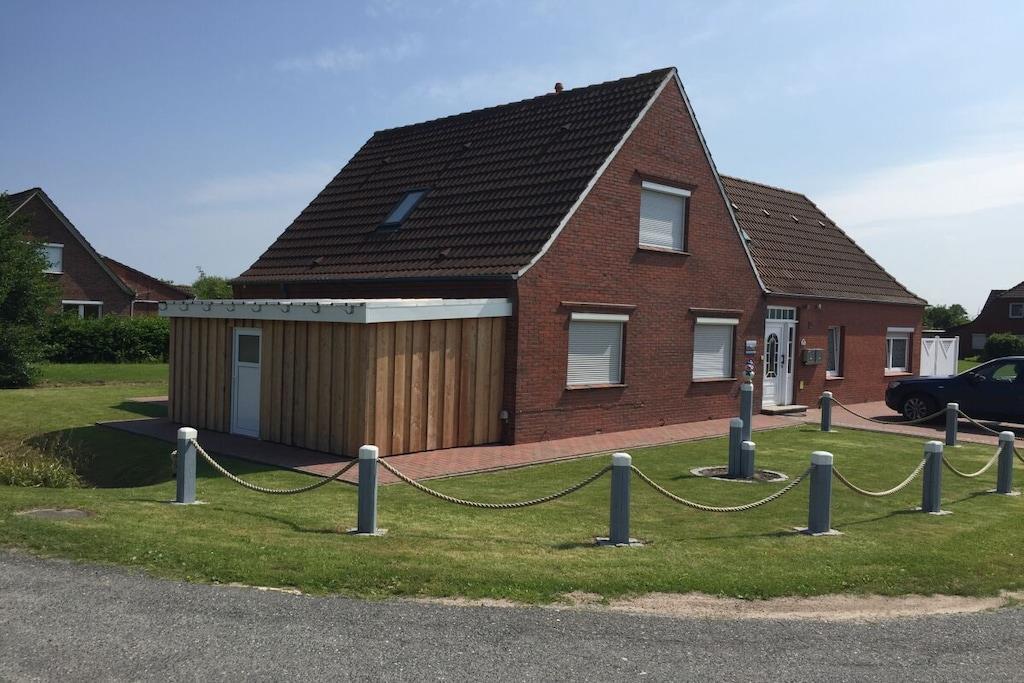 Gemütliches Ferienhaus in Norddeich mit eingezäuntem Garten und überdachter Terrasse für erholsame Tage in Natur und Nähe zum Jachthafen.