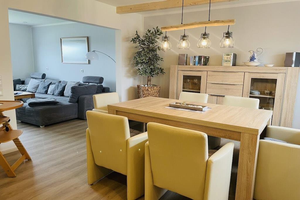 Willkommen in unserem liebevoll eingerichteten Ferienhaus im, das in direkter Deichlage liegt und von weiten Wiesen und Feldern umgeben ist. Hier genießen Sie Ruhe, Natur und Erholung in unmittelbarer Nähe zum Jachthafen Norddeich. Das Haus bietet drei gemütliche Schlafzimmer und eine stilvolle Ausstattung, die für eine warme und einladende Atmosphäre sorgt. Der komplett eingezäunte Garten macht das Ferienhaus besonders attraktiv für Hundebesitzer, die ihren Vierbeinern einen sicheren Freilauf ermöglichen möchten. Ein weiteres Highlight ist die überdachte und geschlossene Terrasse, die Ihnen bei jedem Wetter einen geschützten Platz im Freien bietet. Ob lange Spaziergänge am Deich, Ausflüge oder gemütliche Stunden im Garten – hier können Sie Ihren Urlaub in vollen Zügen genießen.