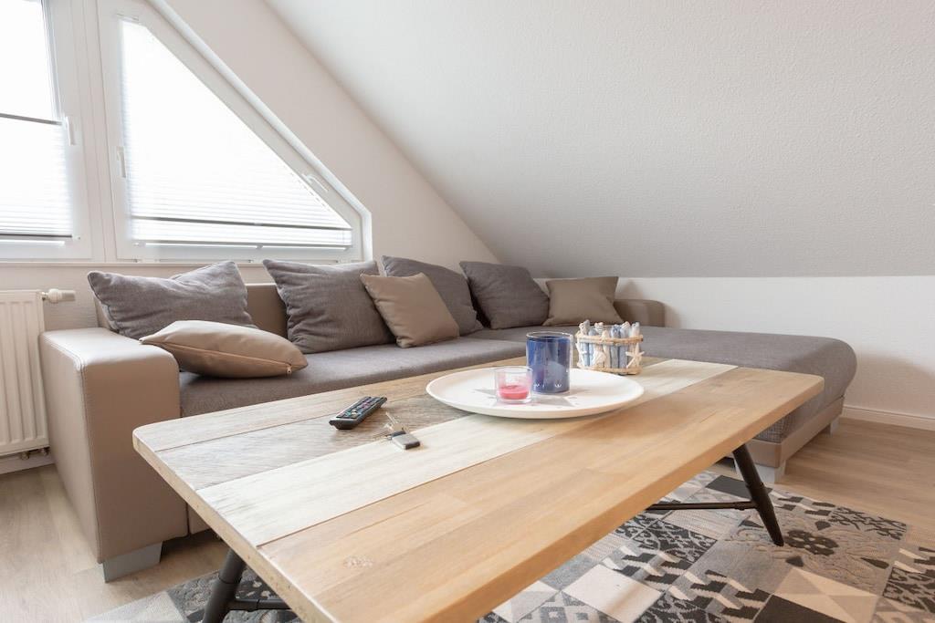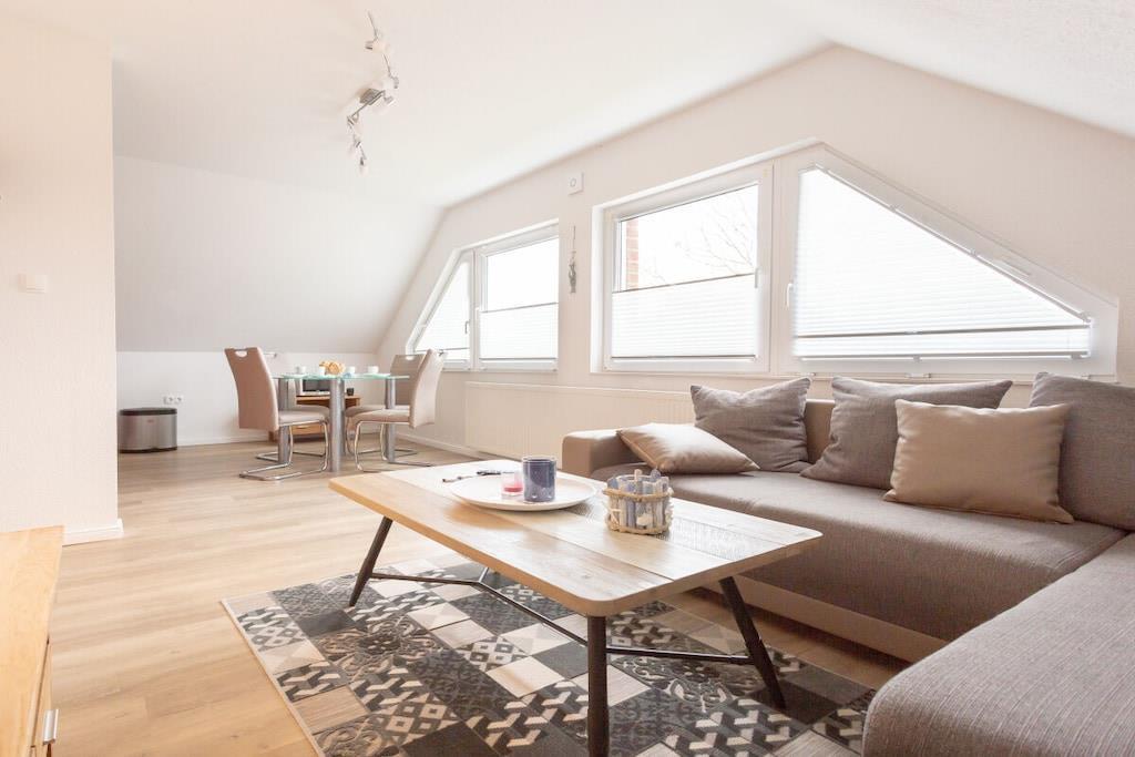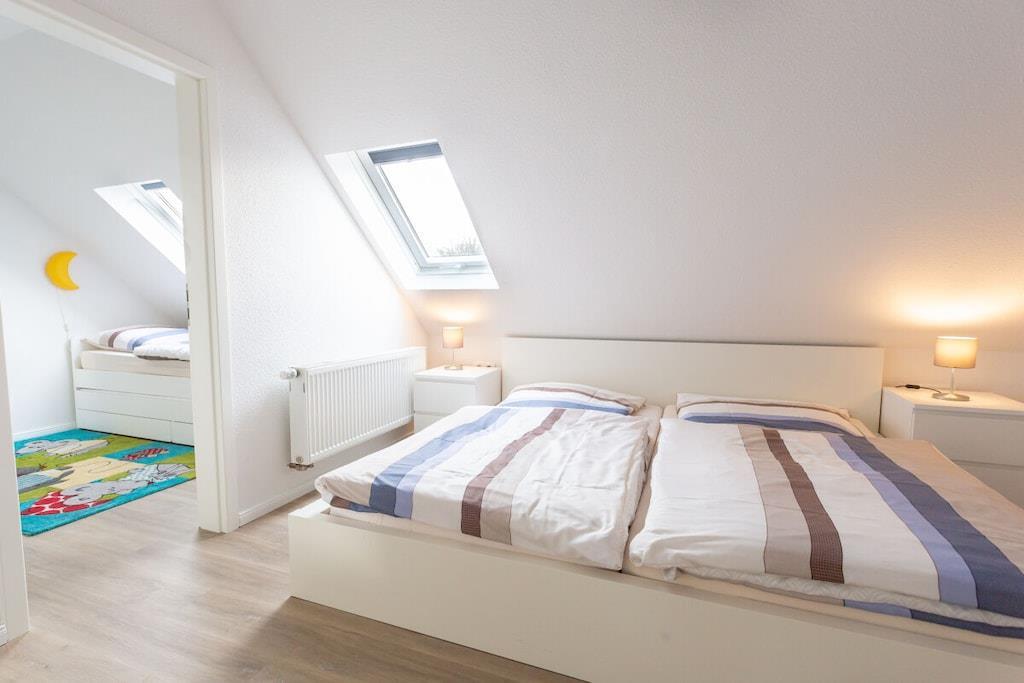 Es erwartet Sie eine geschmackvoll eingerichtete und sonnendurchflutete Ferienwohnung im Obergeschoss. Die Ferienwohnung besteht aus einem Wohn-/ Essbereich sowie zwei Schlafzimmern. Eine reichhaltig ausgestattete Einbauküche ist ebenfalls vorhanden. Eine große überdachte Terrasse mit entsprechender Bestuhlung lädt Sie unabhängig vom Wetter zum gemütlichen Verweilen ein. Parkmöglichkeiten sind direkt vorm Haus vorhanden und im Preis inbegriffen.