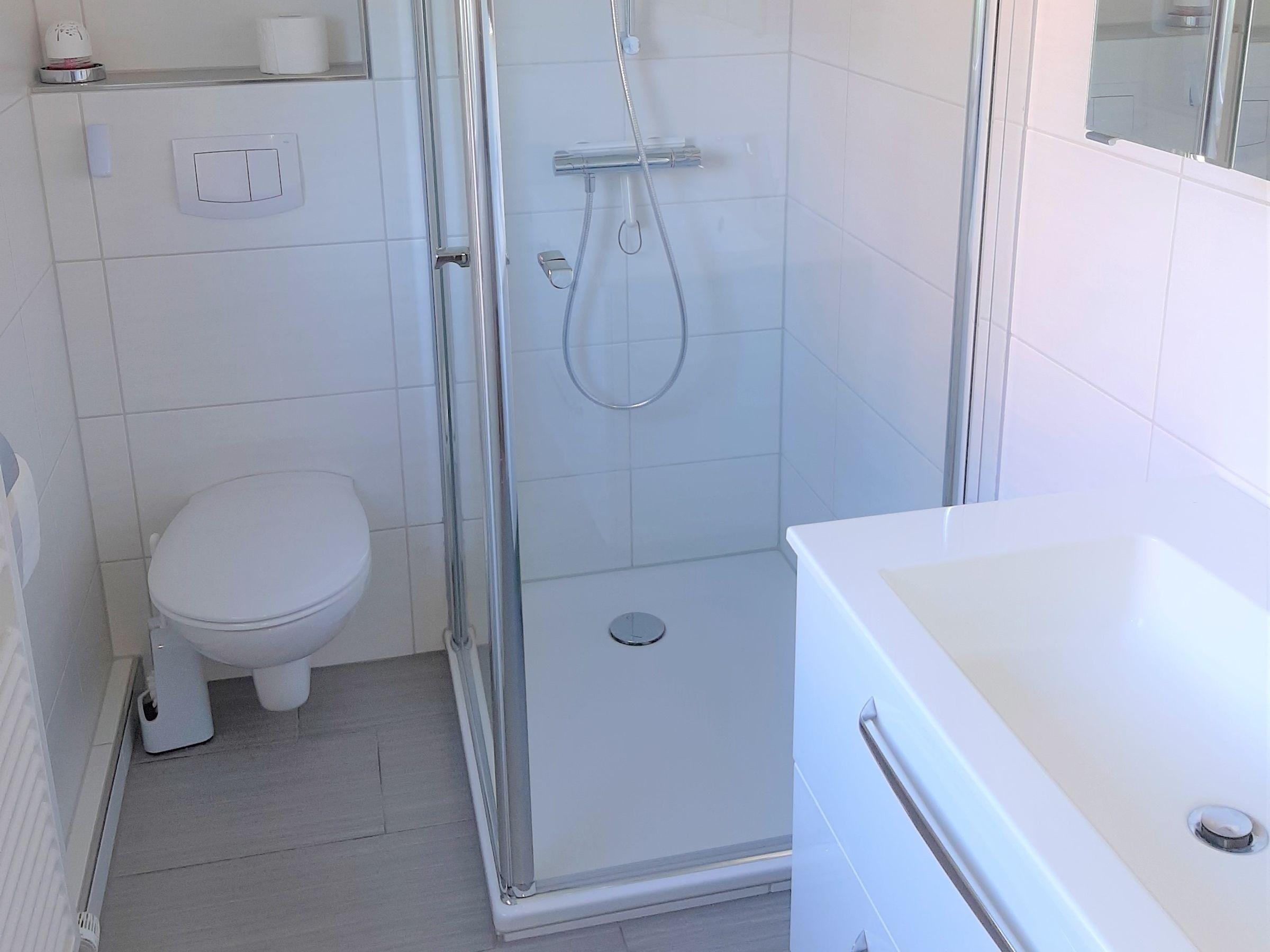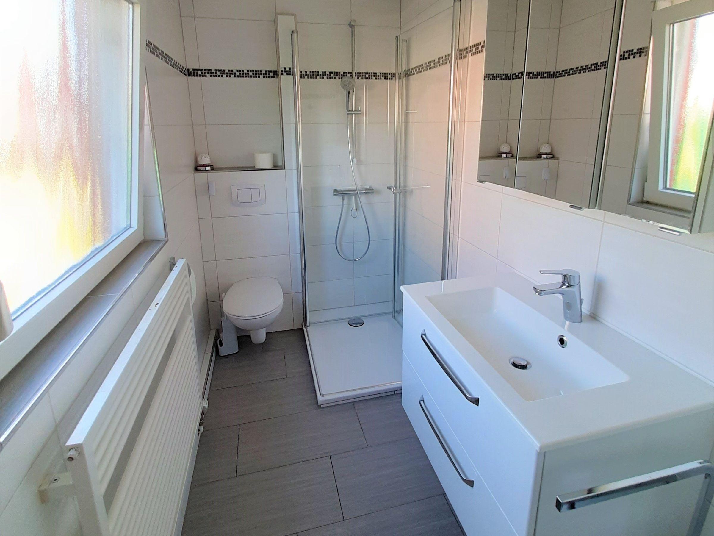 Ein stilvolles Duschbad mit Fenster, Haartrockner und die Windermere-HIFI-Anlage in der gemütlichen Wohn- und Essbereich sorgen für Komfort. Der Kamin/Kachelofen schafft eine wohlige Atmosphäre.