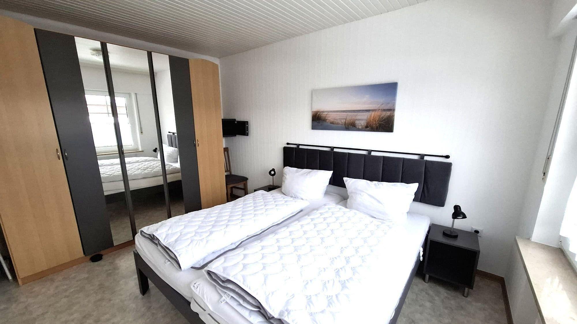 Die Ferienwohnung bietet eine moderne und komfortable Ausstattung für einen entspannten Aufenthalt. Sie verfügt über zwei geräumige Schlafzimmer, ein Doppelbett und zwei Einzelbetten, die optimalen Schlafkomfort gewährleisten. Die offene Küche ist mit einem Geschirrspüler, einem Elektro-/Gasherd, einem Backofen sowie einem Kühlschrank ausgestattet. Für zusätzliche Annehmlichkeiten sorgen eine Kaffeemaschine, ein Wasserkocher, ein Toaster und eine Gefriermöglichkeit. Das Badezimmer mit Fenster ist funktionell gestaltet und bietet einen Spiegel sowie genügend Stauraum in Schränken und Kommoden. In den Wohnbereichen befinden sich ein Sofa, ein Sessel und ein Esstisch. Die Unterkunft ist allergikergeeignet und bietet WLAN-Internet sowie eine HiFi-Anlage und TV für die Unterhaltung. Ein Parkplatz und eine Waschmaschine runden das Angebot ab. Die Heizung sorgt für wohlige Wärme. Ein Staubsauger und eine Garderobe stehen ebenfalls zur Verfügung, damit sich die Gäste jederzeit wohlfühlen können.