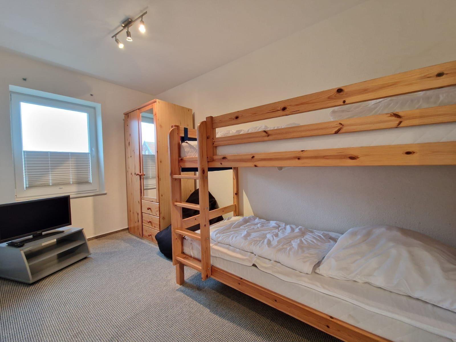 Die Wohnung verfügt über zwei Schlafzimmer, eines mit einem Doppelbett und das andere mit zwei Einzelbetten. Das Wohnzimmer bietet zusätzlich eine Schlafcouch. Ein Duschbad mit Fenster sorgt für Licht und Frische.