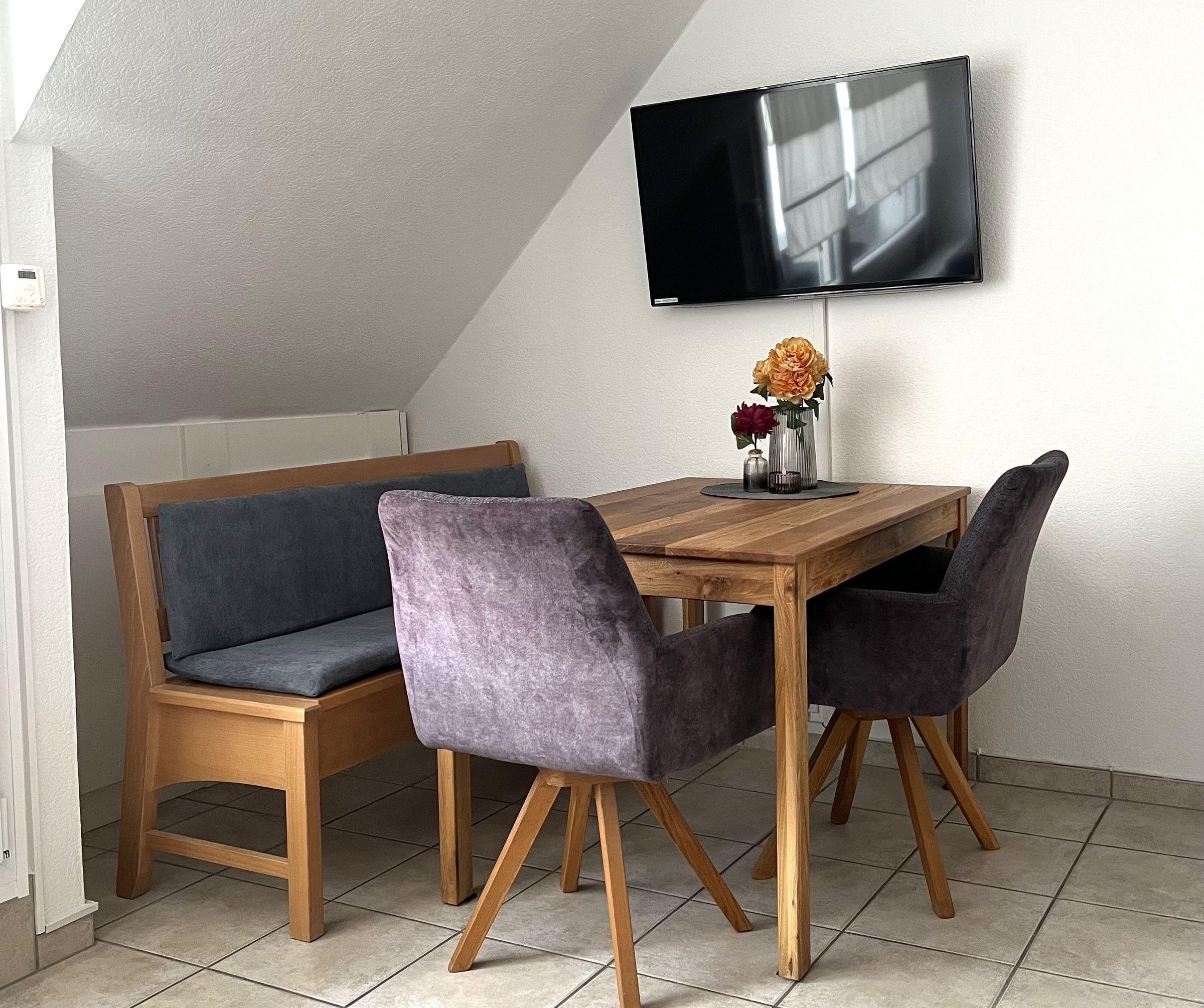 Die Ferienwohnung bietet ein komfortables und allergikergeeignetes Ambiente, ideal für einen entspannten Aufenthalt. Sie verfügt über ein gemütliches Schlafzimmer mit einem Doppelbett sowie ein einladendes Wohnschlafzimmer mit einer Schlafcouch, die zusätzlichen Platz bietet. Die offene Küche ist voll ausgestattet mit einem Elektro- und Gasherd, Backofen, Mikrowelle, Kühlschrank, Geschirrspüler und Kaffeemaschine, um das Kochen zum Vergnügen zu machen. Für Familien ist ein Kinderhochstuhl vorhanden. Im modernen Badezimmer mit Duschbad und Haartrockner finden Gäste alles, was sie benötigen. Das Wohnzimmer lädt mit einer HiFi-Anlage, einem TV und Brettspielen zum Verweilen ein. WLAN ist selbstverständlich verfügbar. Ein Parkplatz steht direkt vor der Tür zur Verfügung. Die einladende Ausstattung und die liebevollen Details machen diese Ferienwohnung zu einem perfekten Rückzugsort für jeden Urlauber.