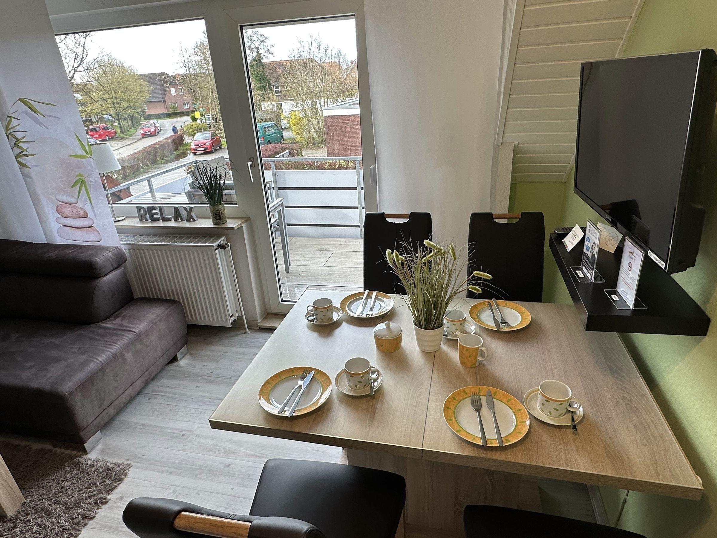 Moderne, strandnahe Ferienwohnung in Norddeich mit Balkon und Platz für 4 Personen.