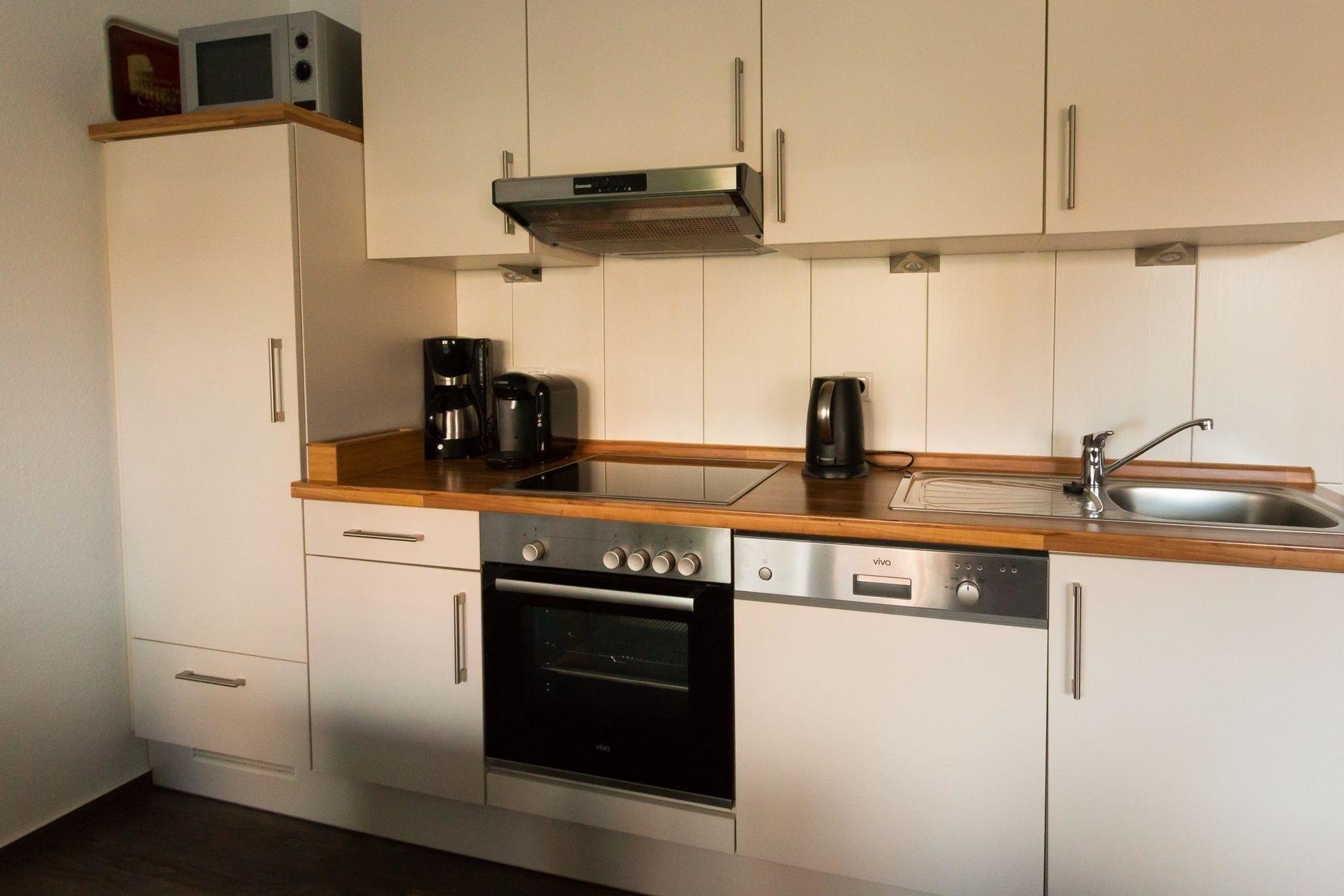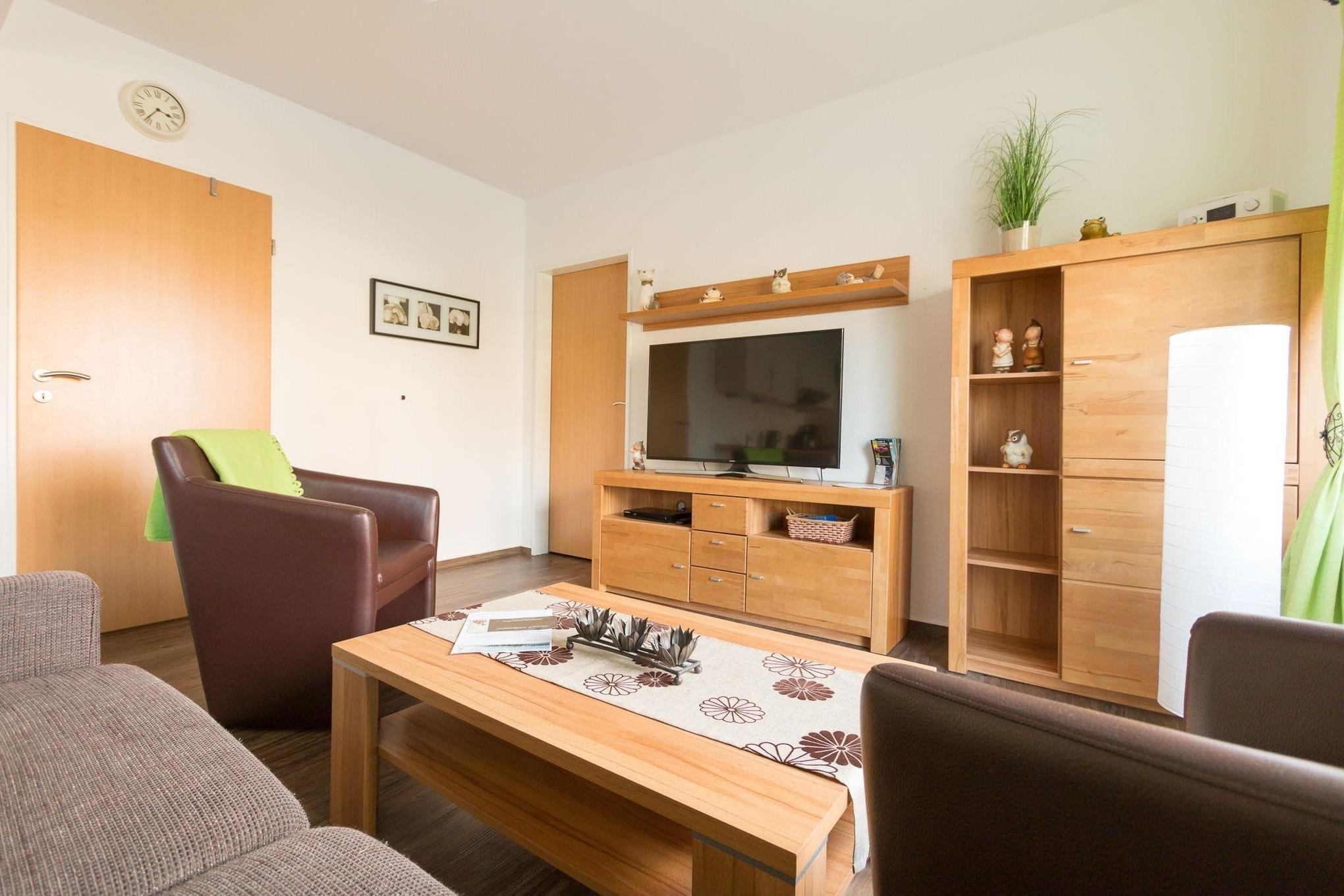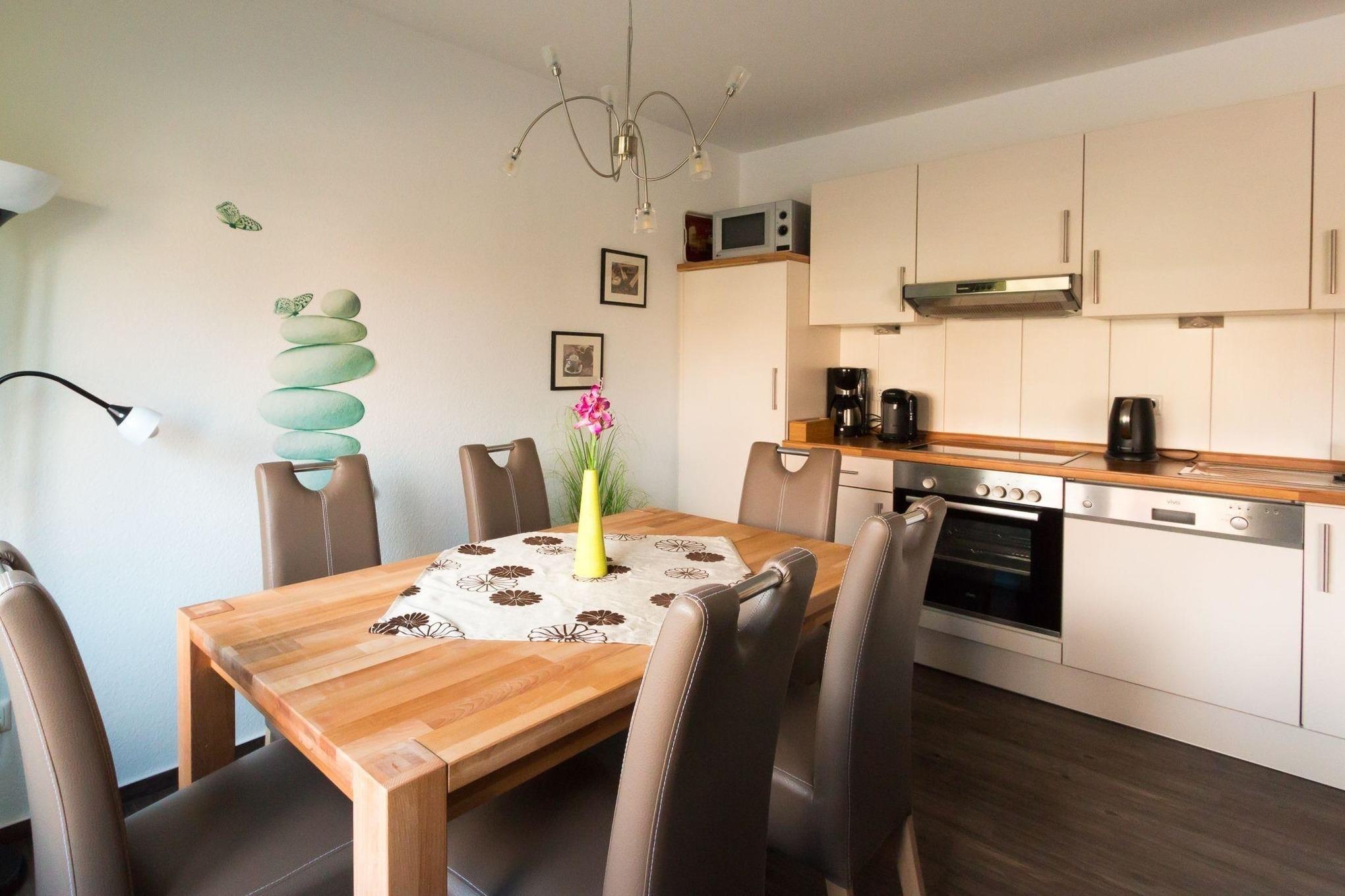 In dieser charmanten Ferienwohnung erwartet der Gast eine moderne und komfortable Ausstattung. Die offene Küche ist mit hochwertigen Geräten wie einem Geschirrspüler, Elektro-/Gasherd, Backofen, Mikrowelle, Kühlschrank, Wasserkocher und Espressomaschine ausgestattet und bietet ausreichend Platz für gemeinsame Kochabende. Für Familien stehen ein Kinderhochstuhl sowie Brettspiele bereit. Der Wohnbereich mit Schlafcouch, Sofa und Sessel lädt zum Entspannen ein. Für Unterhaltung sorgen eine HiFi-Anlage, ein TV sowie ein DVD-/Blu-ray-Player. Die beiden Schlafzimmer bieten ein Doppelbett sowie zwei Einzelbetten, ideal für größere Gruppen. Das Duschbad ist mit einem Haartrockner ausgestattet. Internet mit WLAN ist selbstverständlich vorhanden. Die Ferienwohnung ist allergikergeeignet und bietet zusätzliche Annehmlichkeiten wie eine Waschmaschine, Wäschetrockner und einen Parkplatz. Hier findet jeder Gast den perfekten Ort für einen erholsamen Aufenthalt.