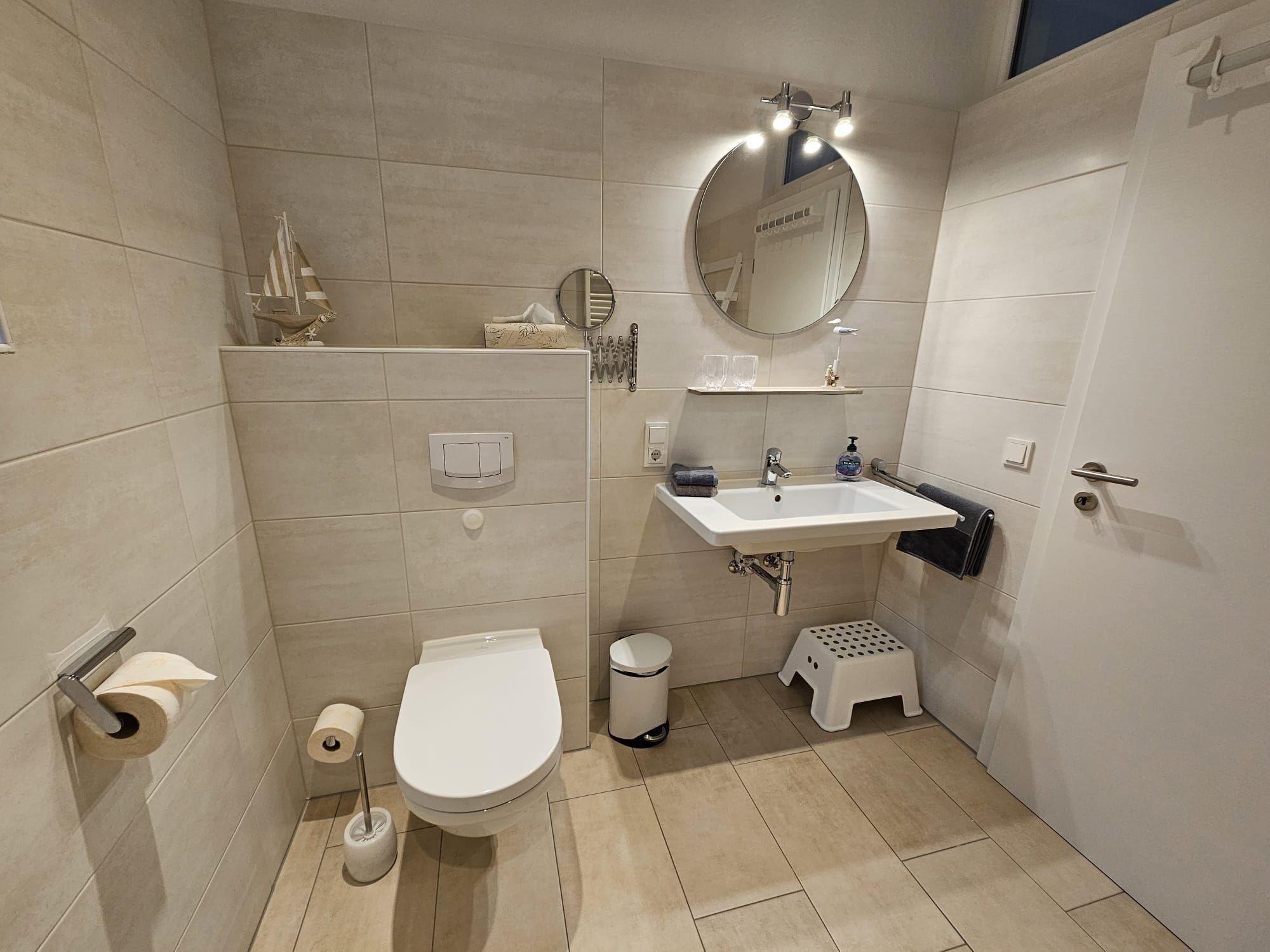 Die Ferienwohnung überzeugt durch ihre großzügige und allergikergeeignete Ausstattung. Sie bietet zwei Schlafzimmer, eines mit einem Doppelbett und ein weiteres mit zwei Einzelbetten. Die offene Küche ist ideal für gemeinsame Kochabende und ist mit einem Geschirrspüler, einem Elektro-/Gasherd, Backofen, Mikrowelle, Kühlschrank sowie einer Kaffeemaschine und einem Toaster ausgestattet. Ein Esstisch lädt zu gemeinsamen Mahlzeiten ein. Das moderne Badezimmer verfügt über eine bodengleiche Dusche, ein Fenster und ein Starterset mit Seife, Duschgel und mehr. Weitere Annehmlichkeiten umfassen WLAN, eine HiFi-Anlage, TV, einen Parkplatz, eine Waschmaschine und einen Wäschetrockner. Für Familien steht ein Kinderhochstuhl bereit. Ein Wohnzimmer mit Sofa und Garderobe sorgt für zusätzlichen Komfort. Pflegeartikel sowie Reinigungsmittel sind ebenfalls vorhanden, um den Aufenthalt so angenehm wie möglich zu gestalten.