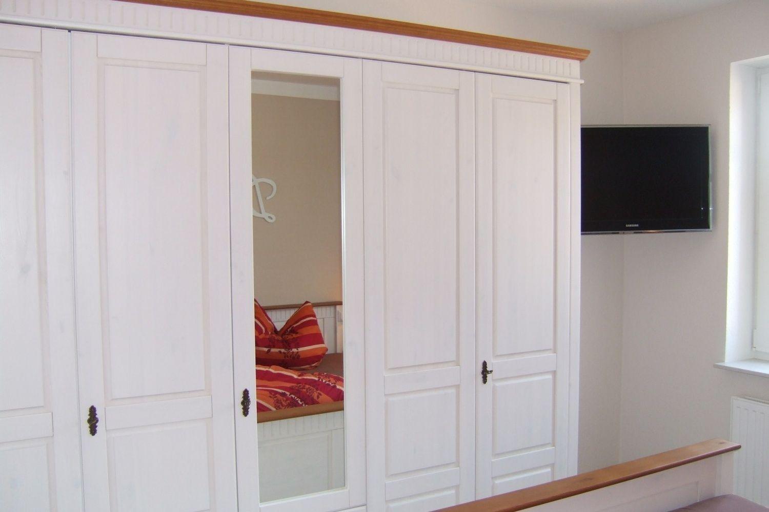 Das gemütliche Schlafzimmer ist mit einem Doppelbett, einem großzügigen Kleiderschrank, zwei Nachtschränken und einem TV-Flachbildschirm eingerichtet.