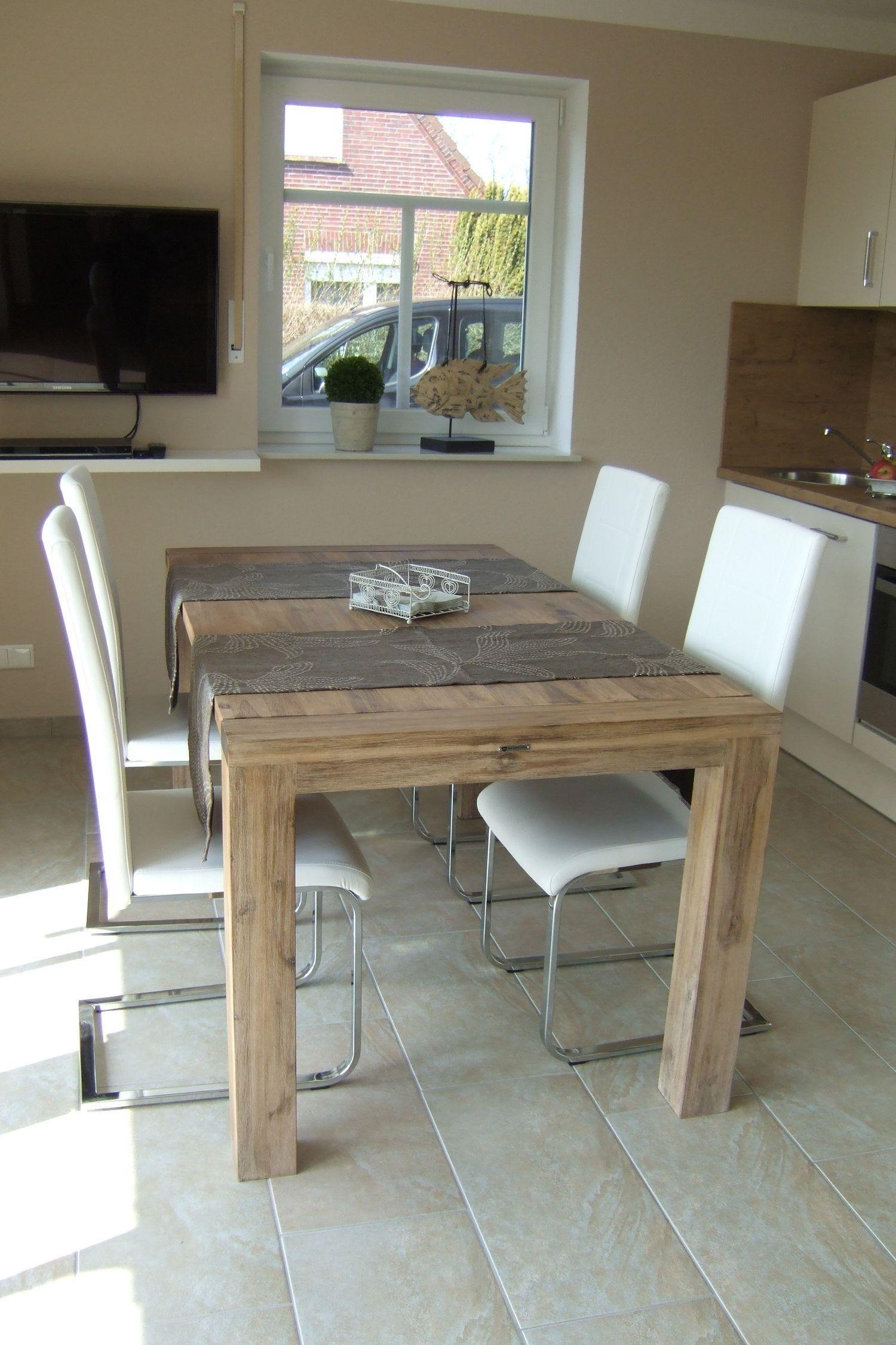 Das kombinierte Wohnzimmer mit Küche ist in Naturtönen gehalten. Auf dem Sofa können Sie einen gemütlichen Fernsehabend geniessen.(Flachbildschirm-TV und DVD-Player). Spiele und Bücher zur Unterhaltung warten darauf, genutzt zu werden.