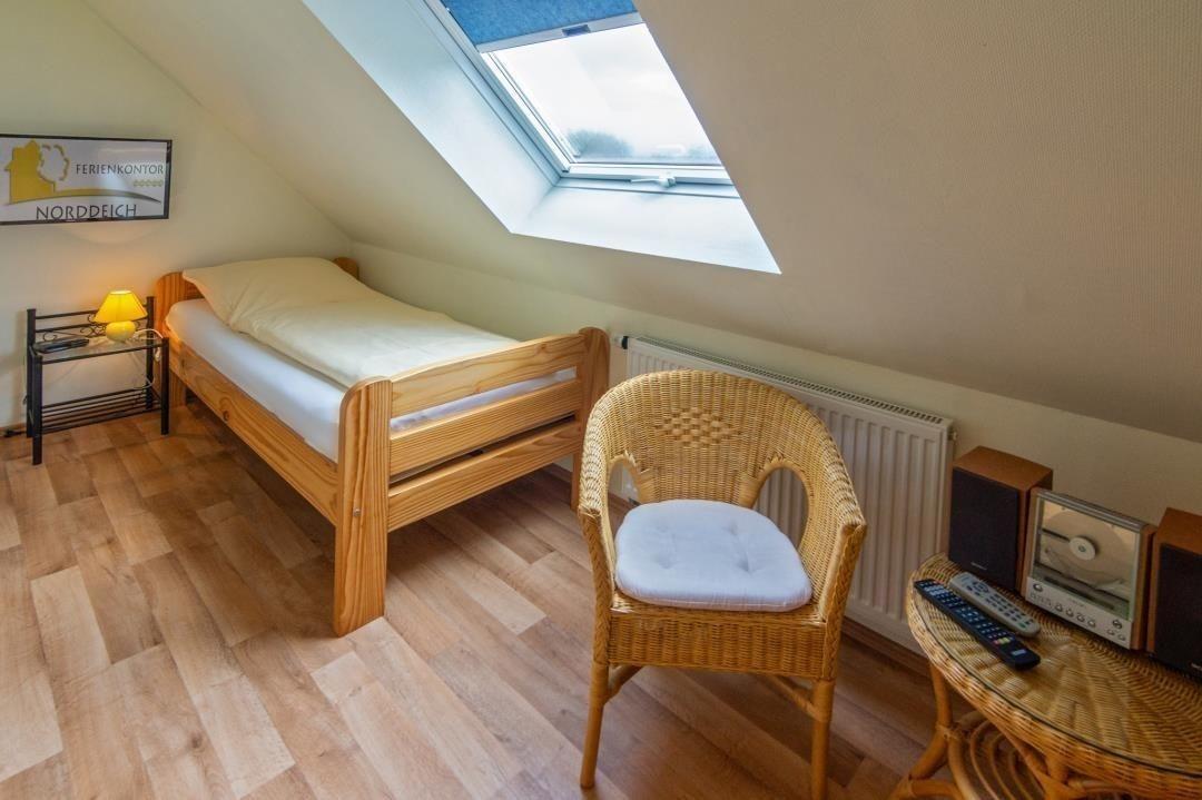Die Ferienwohnung “Deichblick” in Norddeich bietet eine moderne Unterkunft auf 75 m² im Obergeschoss und ist für maximal 4 Personen geeignet. Insgesamt gibt es 3 Zimmer, darunter 2 Schlafzimmer und 1 Badezimmer.