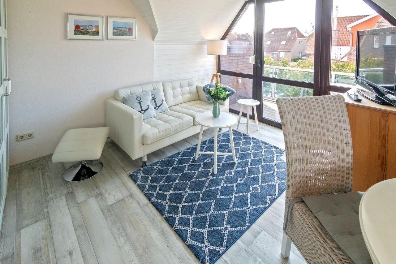 Gemütliche Ferienwohnung mit Balkon in ruhiger Lage nahe Norddeicher Deich, ideal für erholsame Tage zu zweit mit Haustieren.