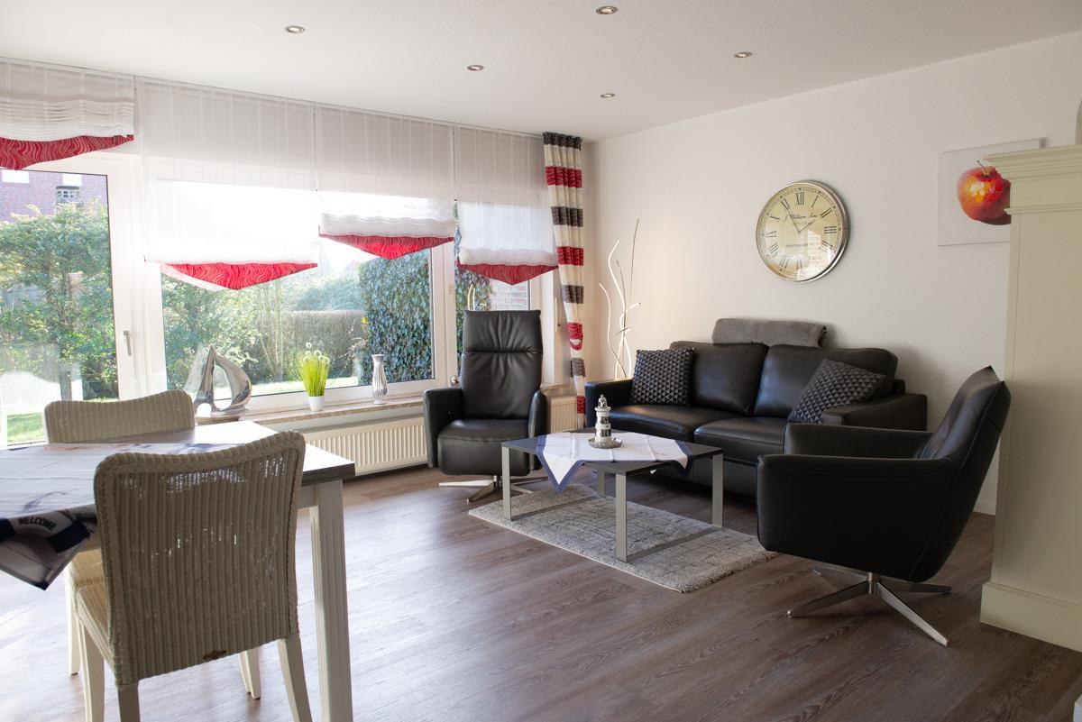 Gemütliche Ferienwohnung mit großer Terrasse und Gartenfläche im Herzen von Norddeich, nur wenige Gehminuten vom Meer entfernt.