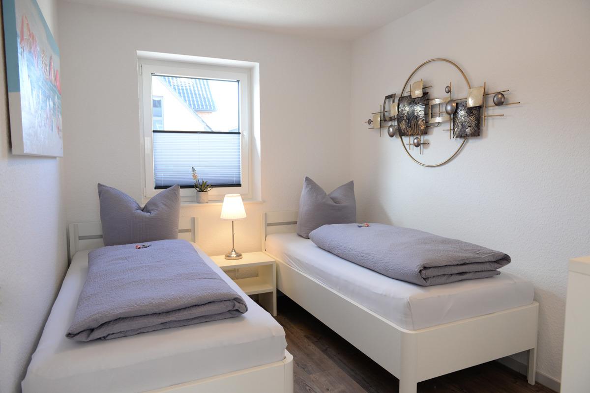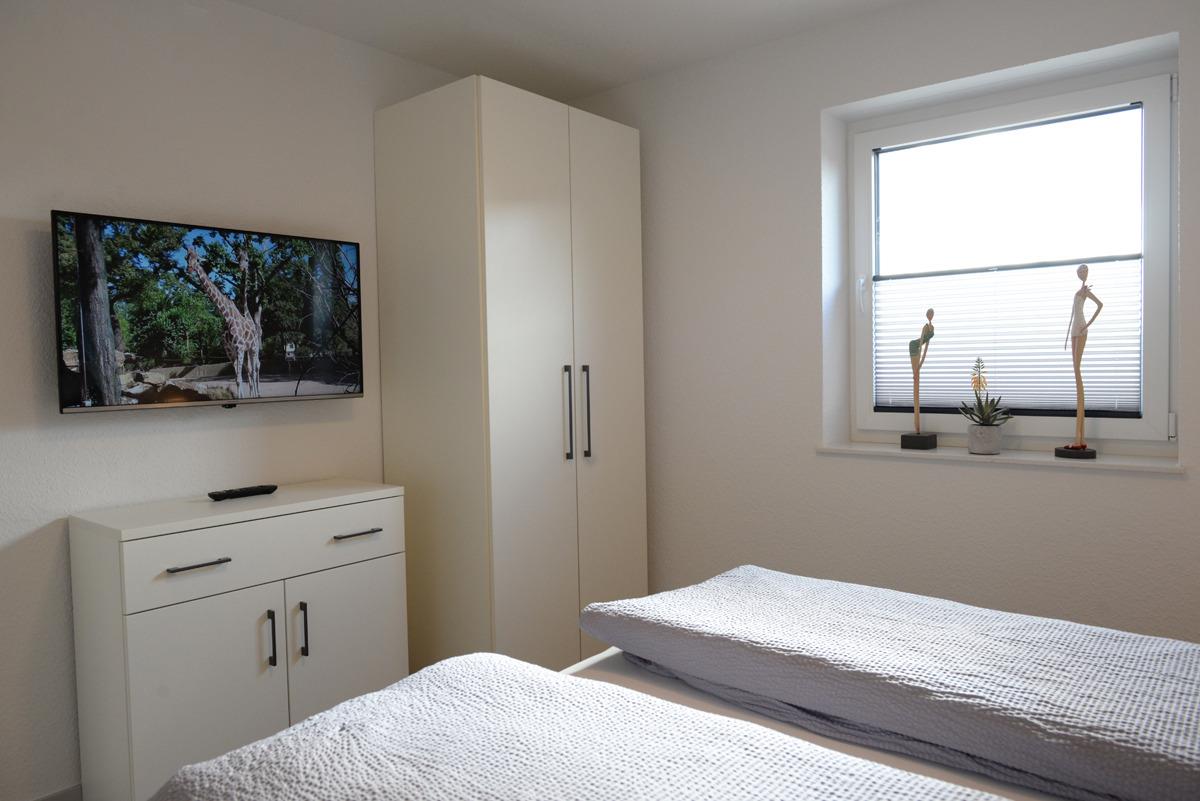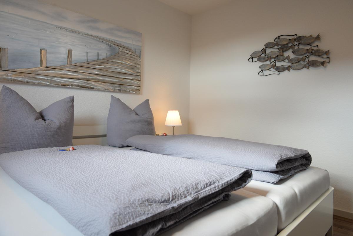 Die Wohnung verfügt über zwei getrennte Schlafzimmer, davon ist ein Schlafzimmer mit Doppelbett, SAT/TV und das weitere Schlafzimmer mit zwei Einzelbetten ausgestattet, zusätzlich besitzen beide Zimmer Fenster mit elektrischen Außenjalousien.