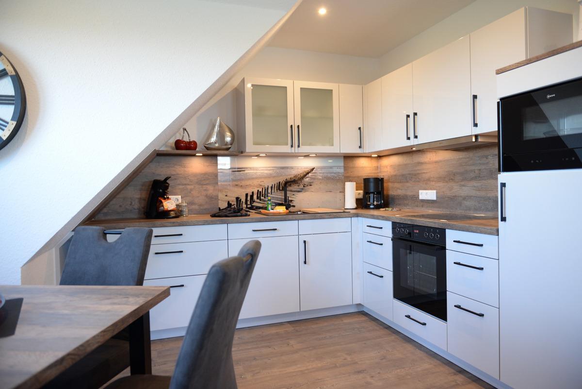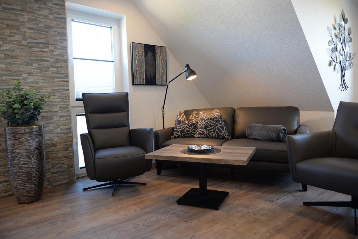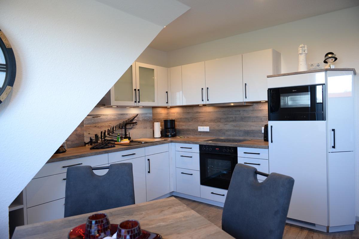 Die Ferienwohnung Deichdeck 3 OL für 2 Personen befindet sich im 1. OG eines neu erbauten Ferienhauses mit insgesamt 4 Ferienwohnungen in Norddeich. Die Wohnung liegt in einer zentralen und sackgassenähnlichen Lage. Das Wohn/Esszimmer ist mit einer gemütlichen Couch u. 2 Sessel, einem Flachbildschirm-Fernseher, einer Essgruppe und einer voll ausgestatteten Einbauküche eingerichtet. Von dort aus gelangen Sie auf einen Balkon, der mit Gartenmöbeln und einem Sonnenschirm ausgestattet ist. Dieses Plätzchen lädt Sie zum Sonnenbaden oder für den späteren Sonnenuntergang am Abend ein.