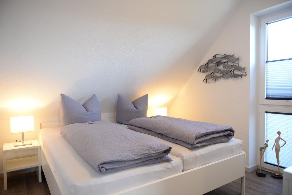 Das Schlafzimmer ist mit einem Doppelbett, Sat/TV, elektrische Außenrollläden + Verdunklungsplissees ausgestattet.