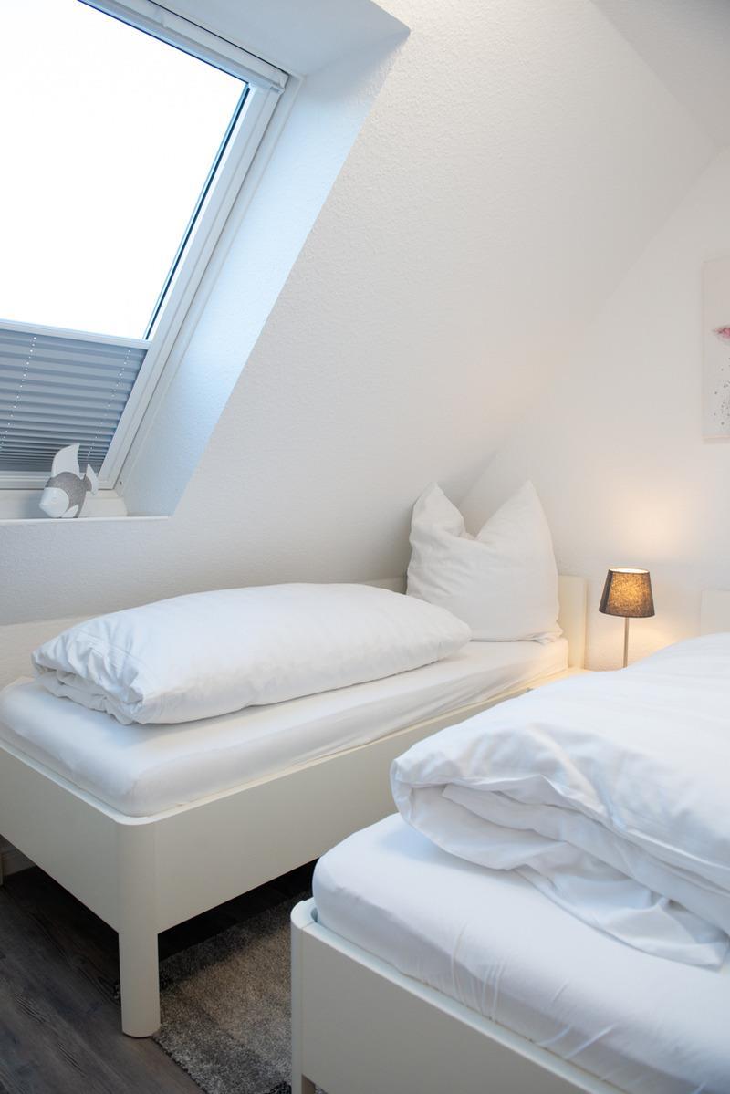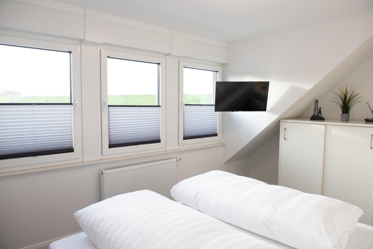 Das große Schlafzimmer ist mit einem Doppelbett, Sat/TV, Fenster mit elektrischen Außenrolläden ausgestattet. Das weitere Schlafzimmer dient als Schnarch - bzw. Ausweichzimmer, welches ein Veluxfenster + Verdunklungsplissees besitzt.