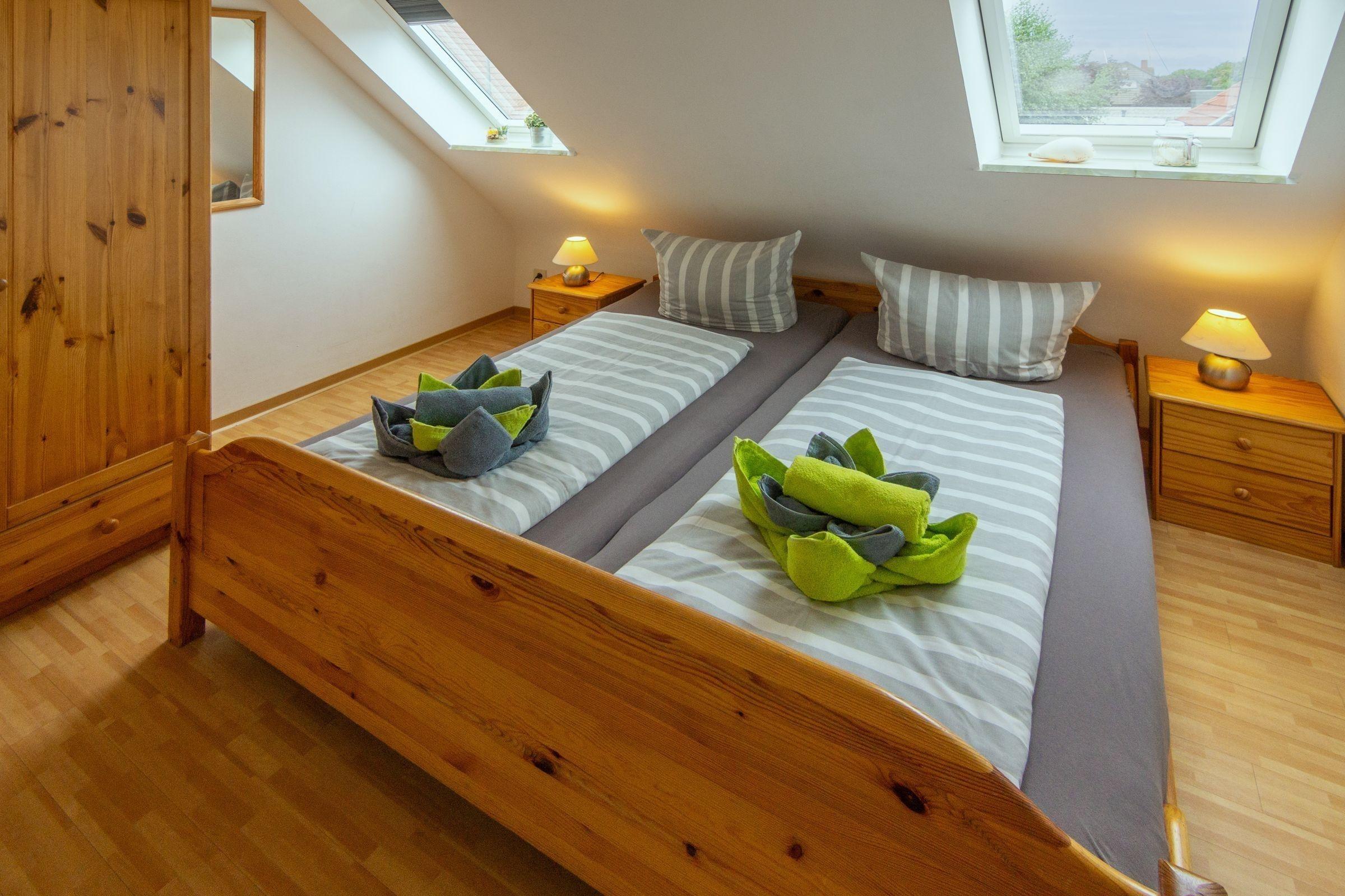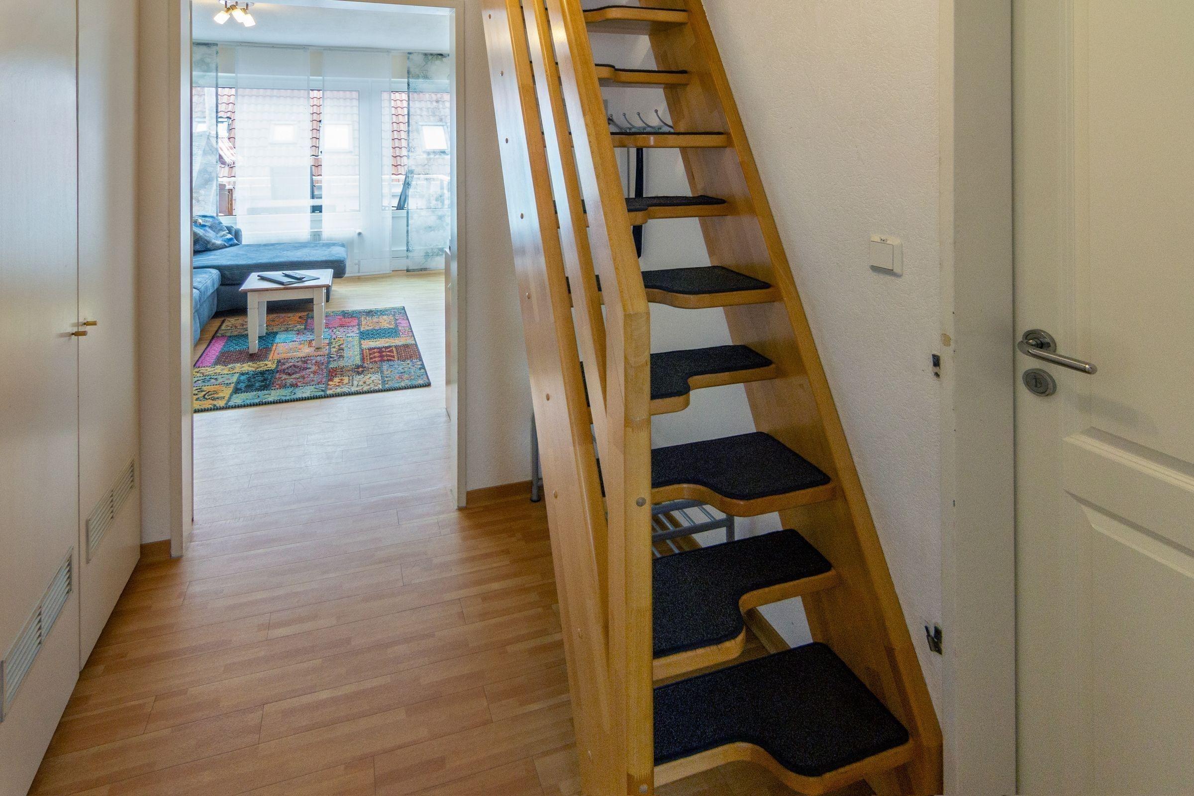 Die strandnahe Ferienwohnung in Norddeich bietet auf 64 m² Platz für bis zu 4 Personen. Im ersten Obergeschoss befindet sich ein helles Wohn-Esszimmer mit integrierter Küchenzeile, ausgestattet mit Kühlschrank, Gefrierfach, Cerankochfeld, Dunstabzugshaube, Geschirrspüler und einem kleinen Backofen. Weitere Küchengeräte wie Toaster, Wasserkocher und Kaffeemaschine sind ebenfalls vorhanden. Ein Schlafzimmer mit Doppelbett und ein Duschbad runden das Angebot ab. Über eine Raumspartreppe gelangt man ins zweite Obergeschoss, wo ein weiteres Schlafzimmer mit 2 Einzelbetten wartet. WLAN und ein kostenloser Einstellplatz am Haus stehen zur Verfügung. Bettwäsche und Handtücher sind nicht enthalten, können aber kostenpflichtig hinzugebucht werden. Hunde sind willkommen, Katzen sind nicht gestattet.