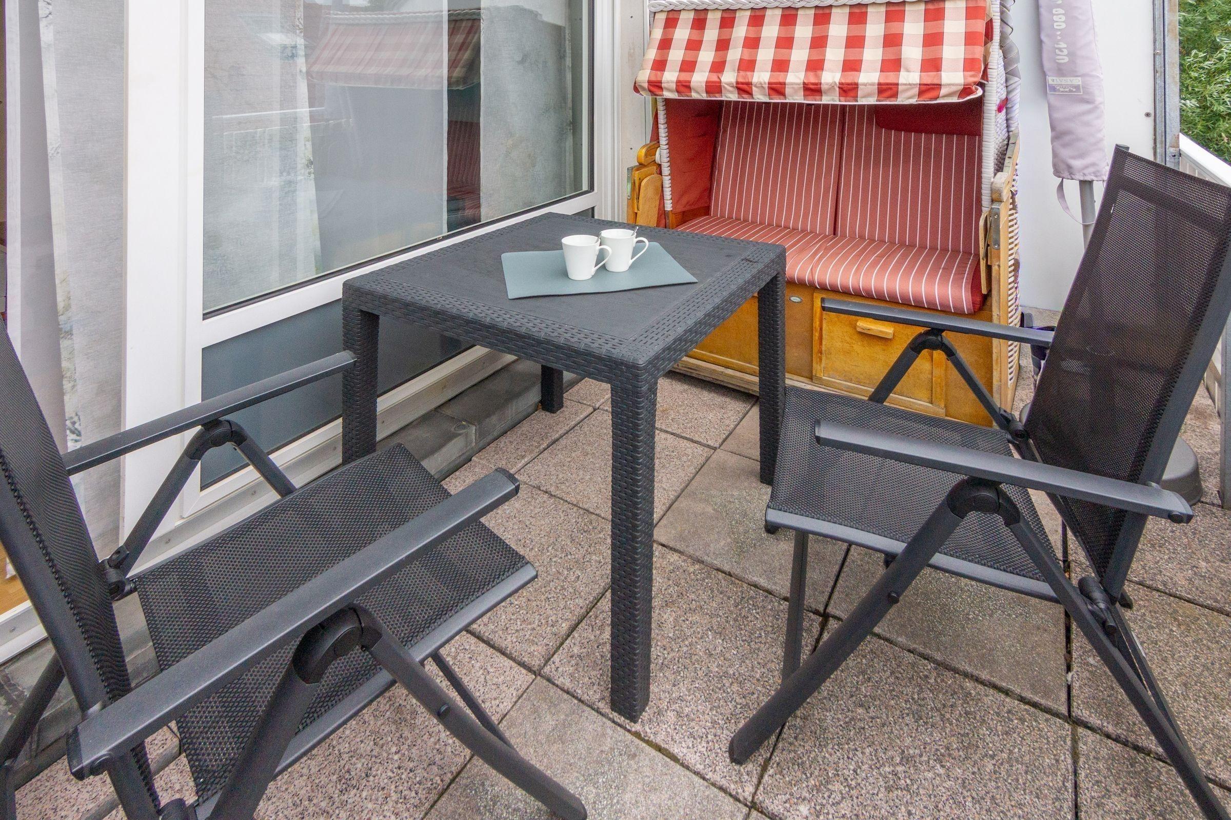 Moderne Ferienwohnung in Norddeich mit Balkon, Strandkorb und vielfältigen Freizeitmöglichkeiten in Strandnähe.