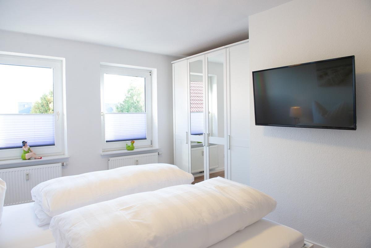 Schlafzimmer mit Doppelbett*Kleiderschrank* Fernseher