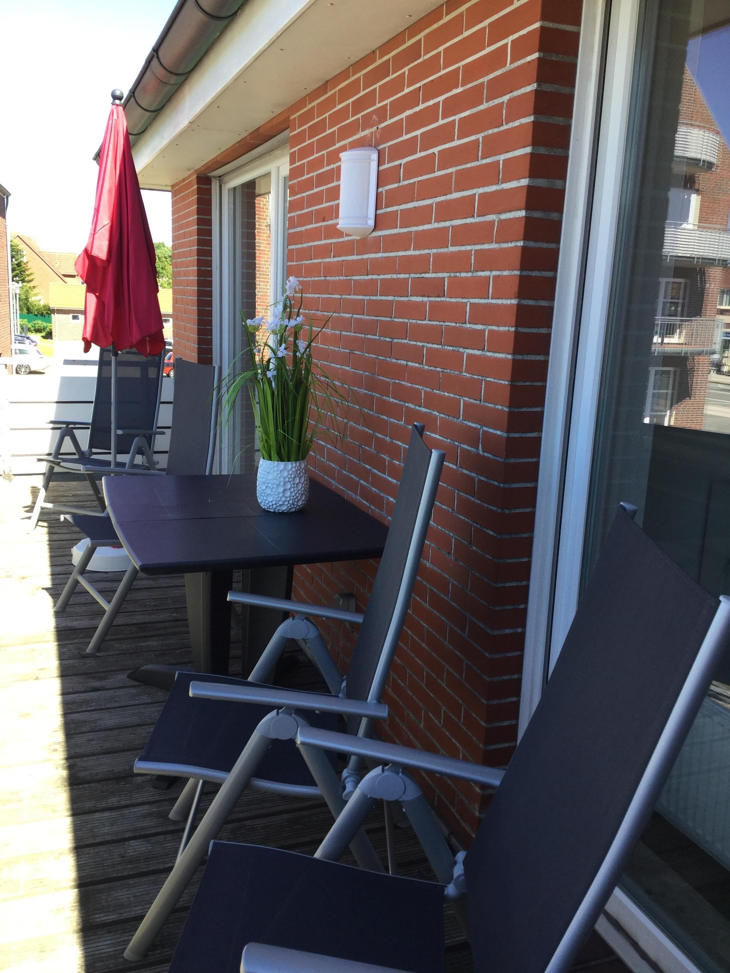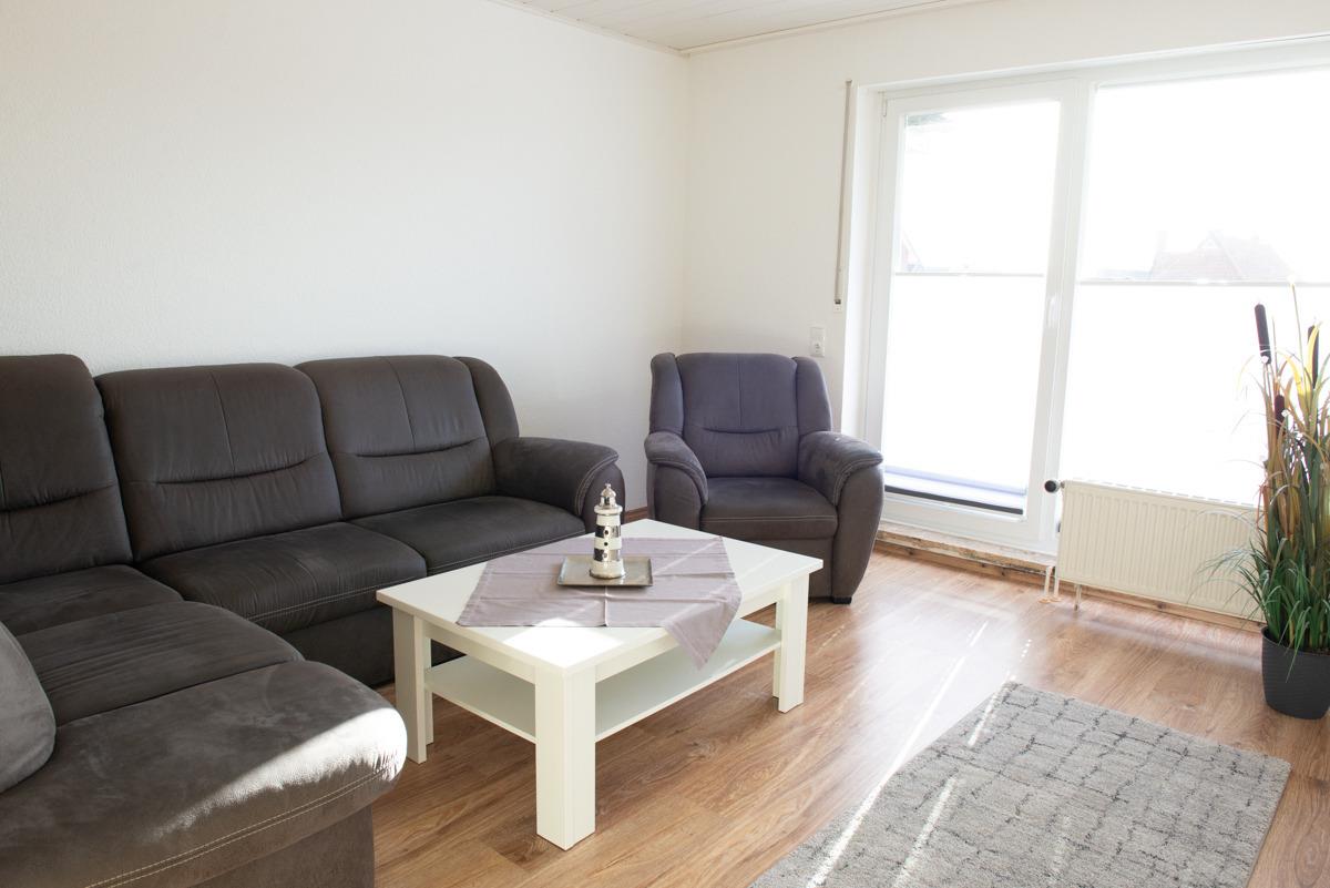 Komfortable Ferienwohnung in Norddeich mit Balkon, nahe Strand, Hafen und Geschäften, ideal für erholsame Tage an der Nordsee.