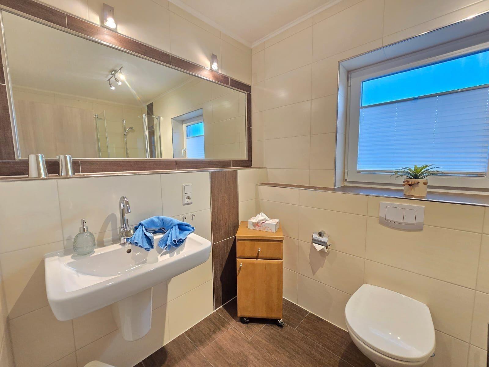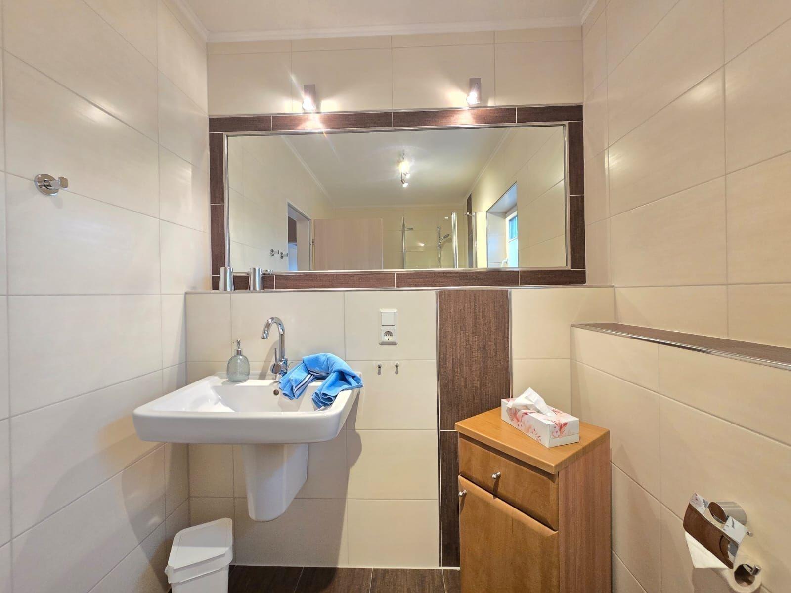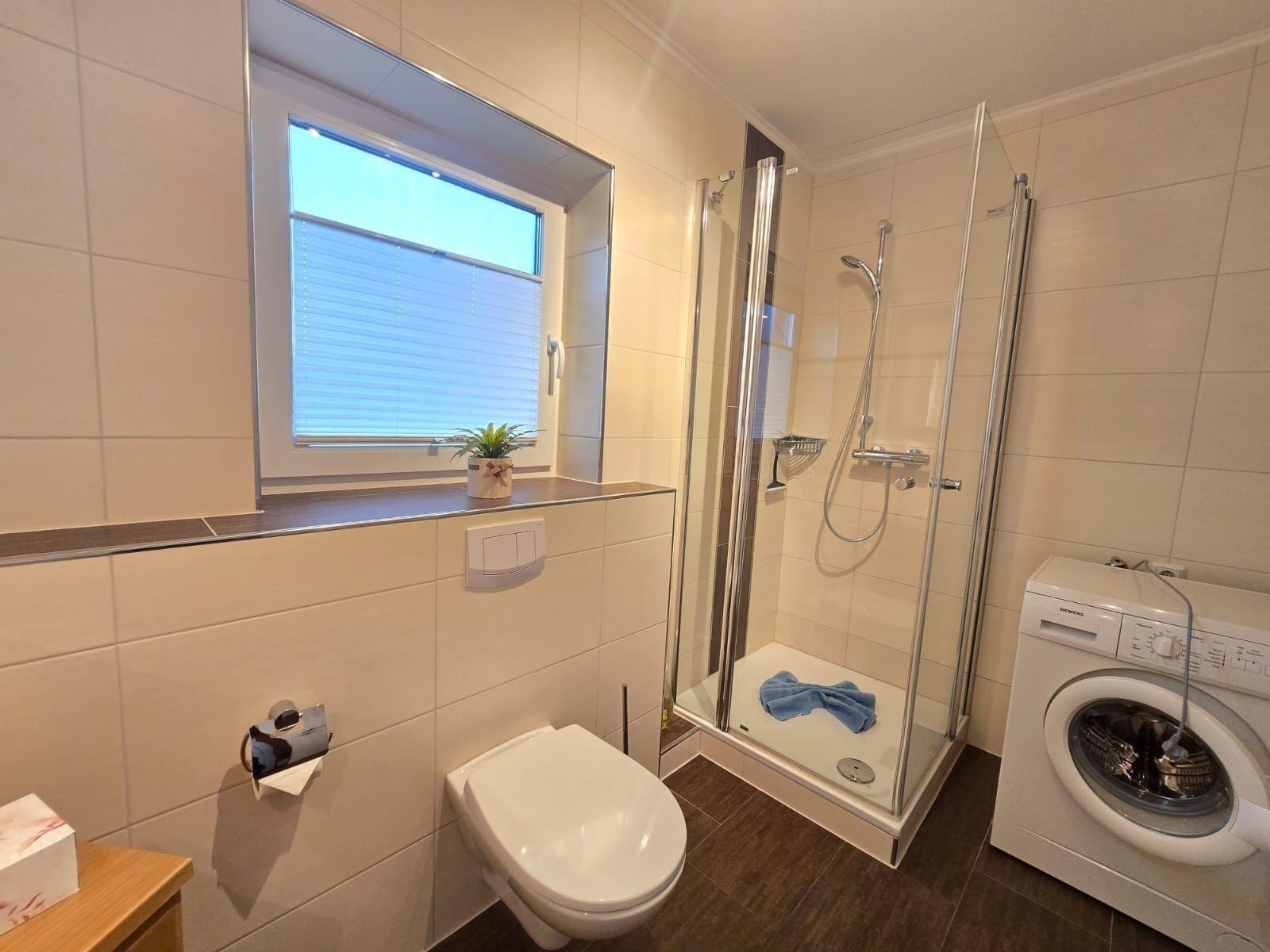 Die Ferienwohnung Norddeichurlaub bietet auf ca. 65 m² eine liebevolle Einrichtung für bis zu 3 Personen. Im Erdgeschoss befindet sich ein einladendes Wohnzimmer mit Essbereich und direktem Zugang zur Terrasse, sowie eine offene Küche im L-Format, ausgestattet mit Ceranfeld, Backofen, Kühlschrank mit Gefrierfach und Spülmaschine. Ein Schlafzimmer mit Einzelbett und ein modernes Gäste-WC ergänzen das Erdgeschoss. Das Obergeschoss beherbergt ein großzügiges Schlafzimmer mit Doppelbett und Zugang zum sonnigen Balkon. Das Tageslichtbad ist mit Dusche, WC und Waschmaschine ausgestattet. Zudem steht für Fahrräder eine Garage zur Verfügung; ein sicherer Parkplatz ist ebenfalls zur Wohnung ausgewiesen. Die ruhige, zentrale Lage ermöglicht einen schnellen Zugang zu Strand und Hafen.