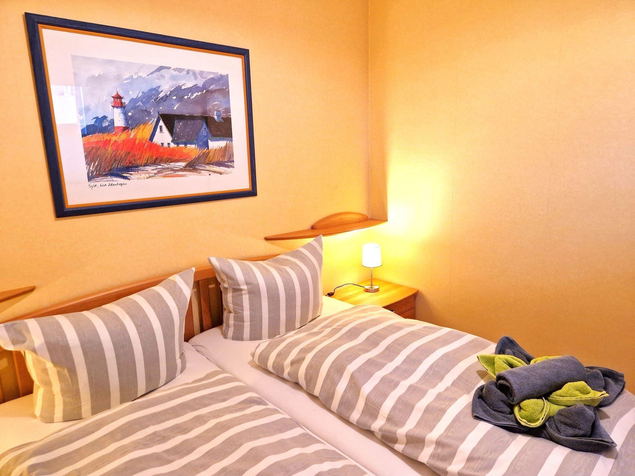 Die Ferienwohnung Krabbenkoje in Norddeich bietet eine komfortable Erholung im Erdgeschoss einer Apartmentanlage, nur 150 Meter vom Hundestrand entfernt. Die Wohnung verfügt über einen offenen Wohnbereich mit einer komplett ausgestatteten Küche, including Ceranfeld, Backofen, Spülmaschine und Kühlschrank mit Gefrierfach, sowie Toaster, Wasserkocher und Kaffeemaschine. Ein Schlafzimmer mit Doppelbett und ein kleines Duschbad runden das Angebot ab. Kostenloses WLAN und ein zugewiesener Einstellplatz stehen zur Verfügung. Für zusätzlichen Komfort gibt es einen Abstellraum für Fahrräder sowie einen Wasch- und Trockenraum. Bitte beachten, dass Bettwäsche und Handtücher nicht vorhanden sind, aber kostenpflichtig hinzugebucht werden können. Hunde sind willkommen, während Katzen nicht gestattet sind. Die Nichtraucherwohnung eignet sich ideal für zwei Personen.