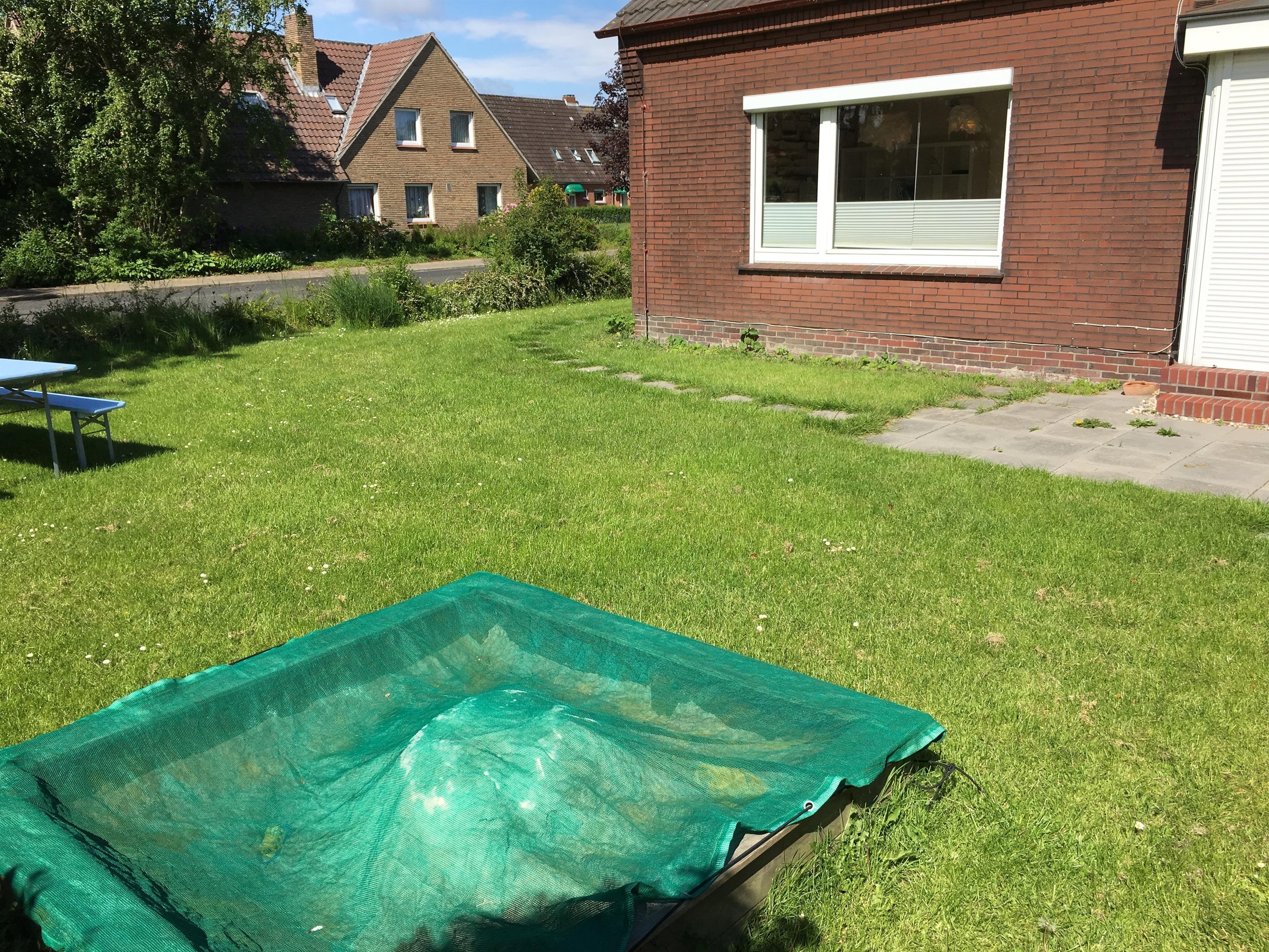 Der Garten ist mit Garten-Möbeln, Grill-Ecke und Sandkasten ausgestattet.
