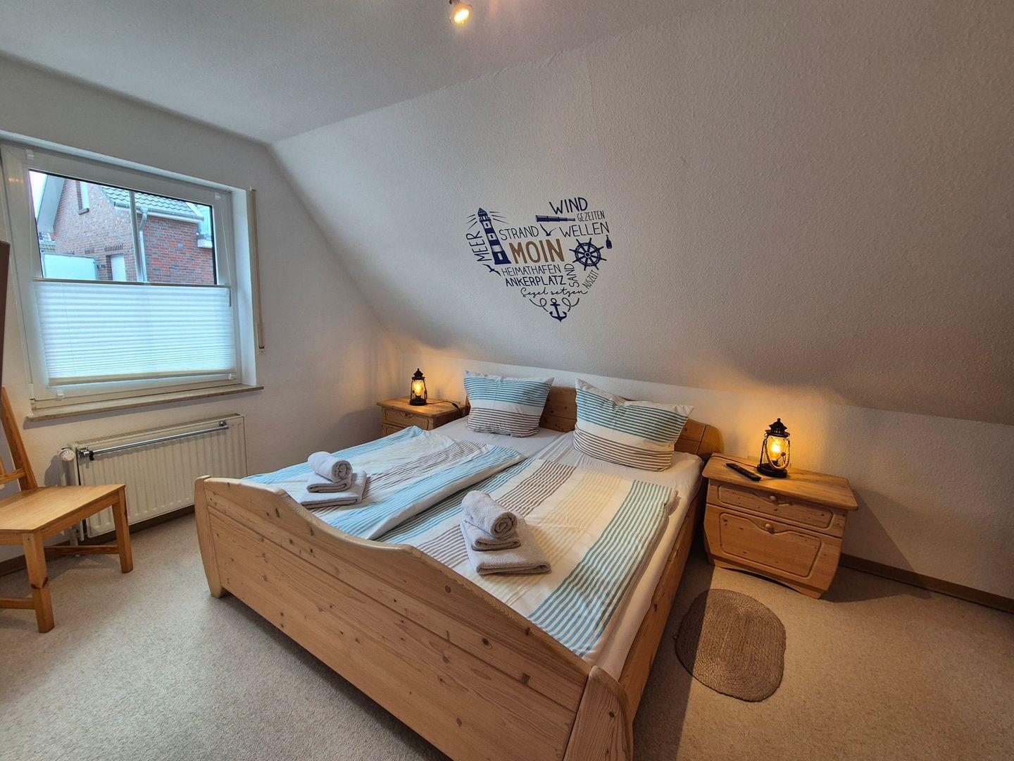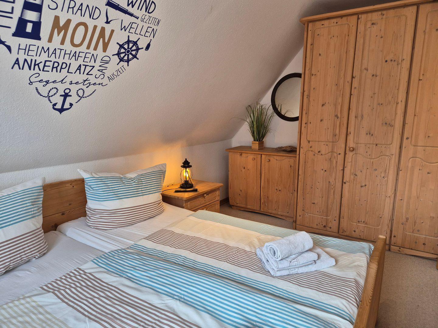 Im Inneren stehen Ihnen im Erdgeschoss ein kombinierter Wohn- und Essbereich mit Küche. In der Küche finden Sie alle notwendigen Küchenutensilien bis hin zur Tassimo. Außerdem steht Ihnen im Erdgeschoß noch eine weitere Toilette zur Verfügung. Im Obergeschoss finden Sie ein Schlafzimmer mit bequemen Doppelbett und Fernseher, sowie ein Kinderzimmer mit 2 Einzelbetten und ein farbenfrohes Badezimmer mit Badewanne(integrierter Dusche) . Hier können Sie sich wie Zuhause fühlen.