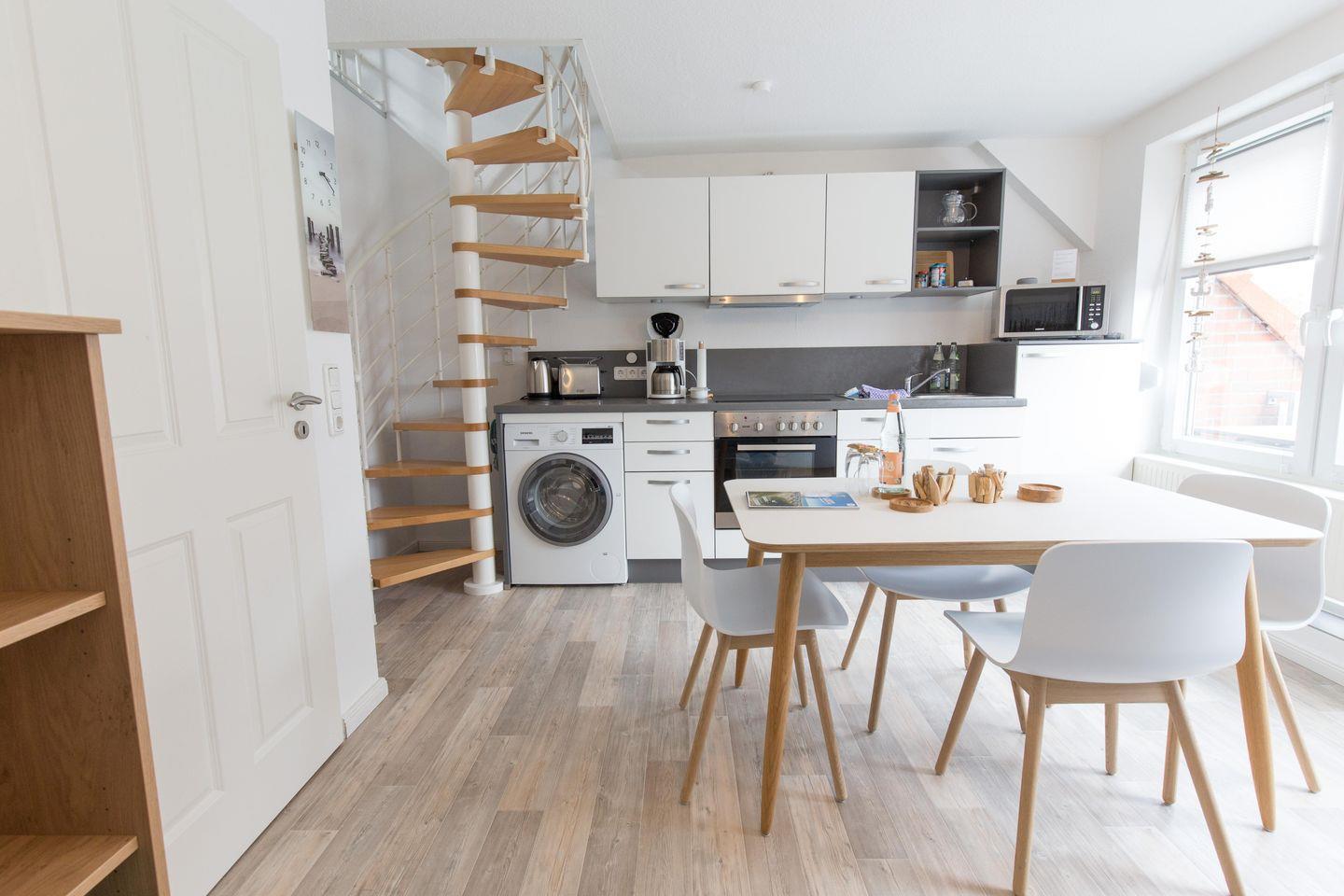 Die Küche ist mit allen ausgestattet was man täglich benötigt, außerdem steht Ihnen ein Waschtrockner zur Verfügung