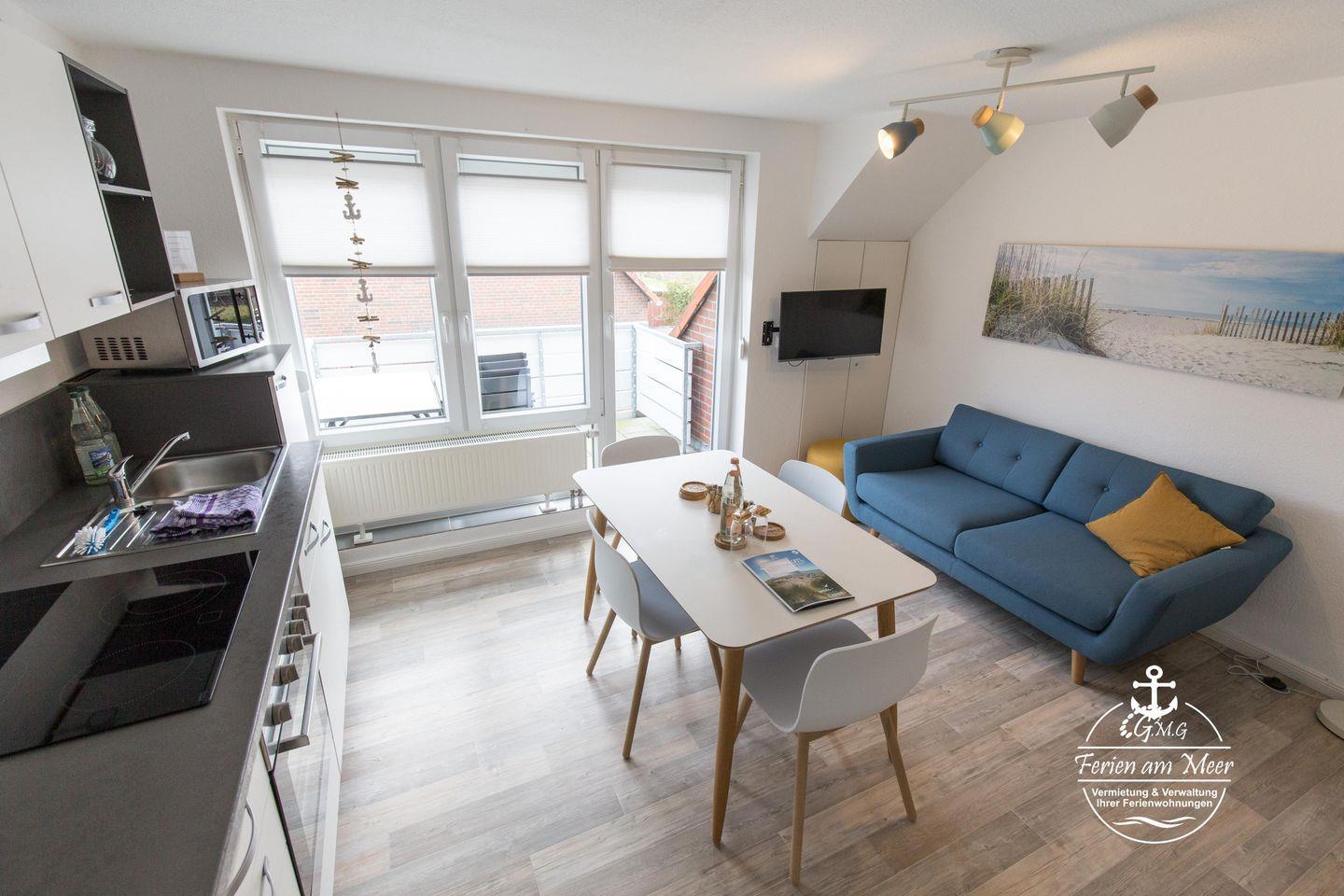 Gemütliche Wohnung nahe Deich in Norddeich mit Balkon, WLAN und Parkplatz für erholsamen Urlaub an der Nordsee.