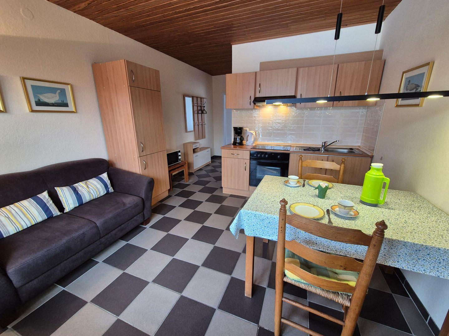 im Wohnbereich mit einem Sofa, einem Essbereich mit 2 Sitzplätzen und