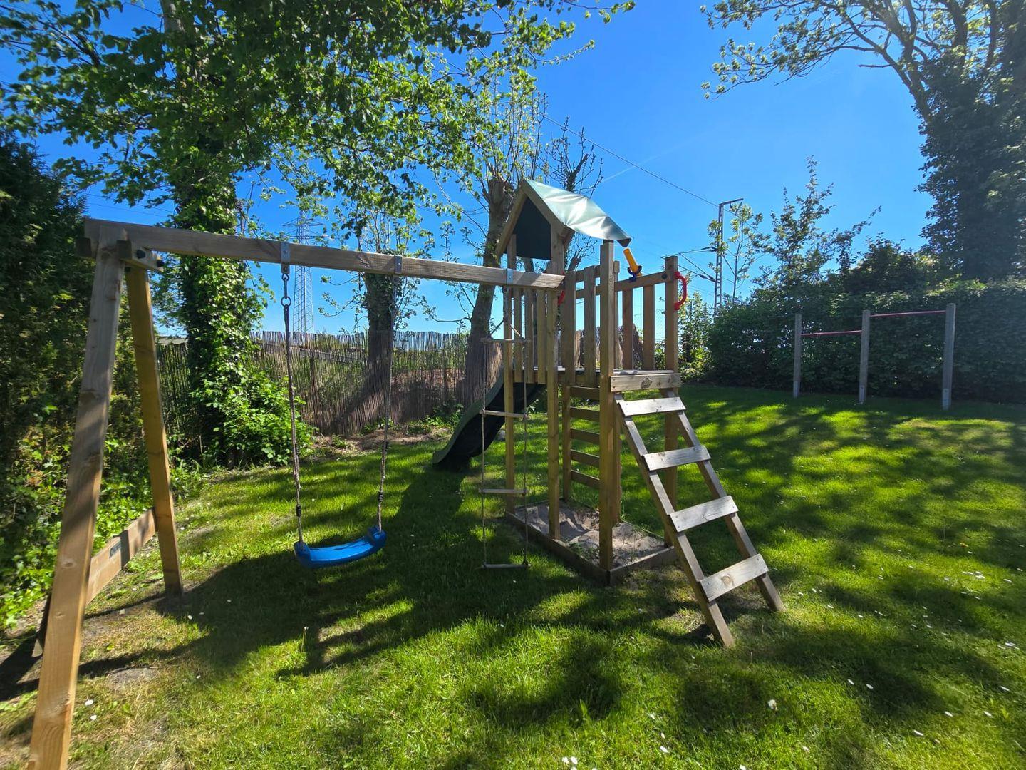 Hinter dem Haus befindet sich ein Spielplatz, auf dem sich Kinder frei bewegen können. Eine gemeinschaftlich nutzbare Terrasse mit Gartenmöbeln und zwei Grills steht allen Gästen zur Verfügung. Aus Rücksicht auf die kleinen Gäste sind Hunde in diesem Bereich leider nicht erlaubt.