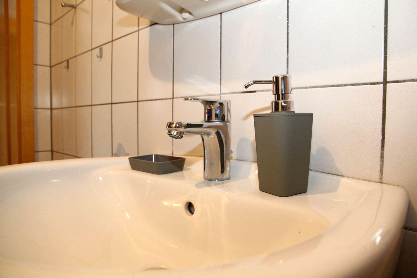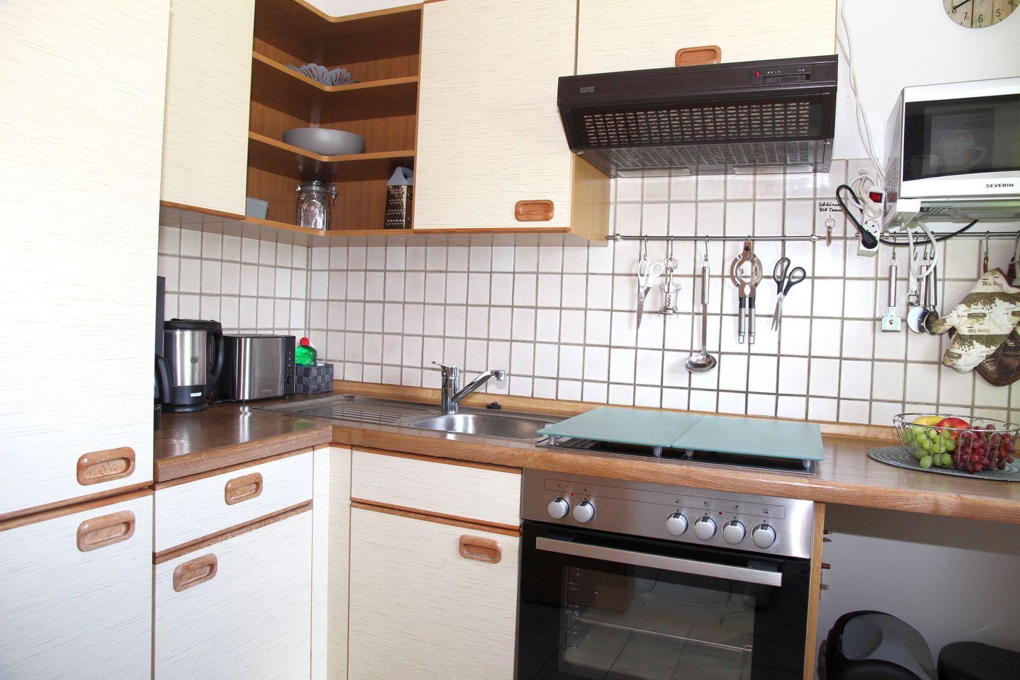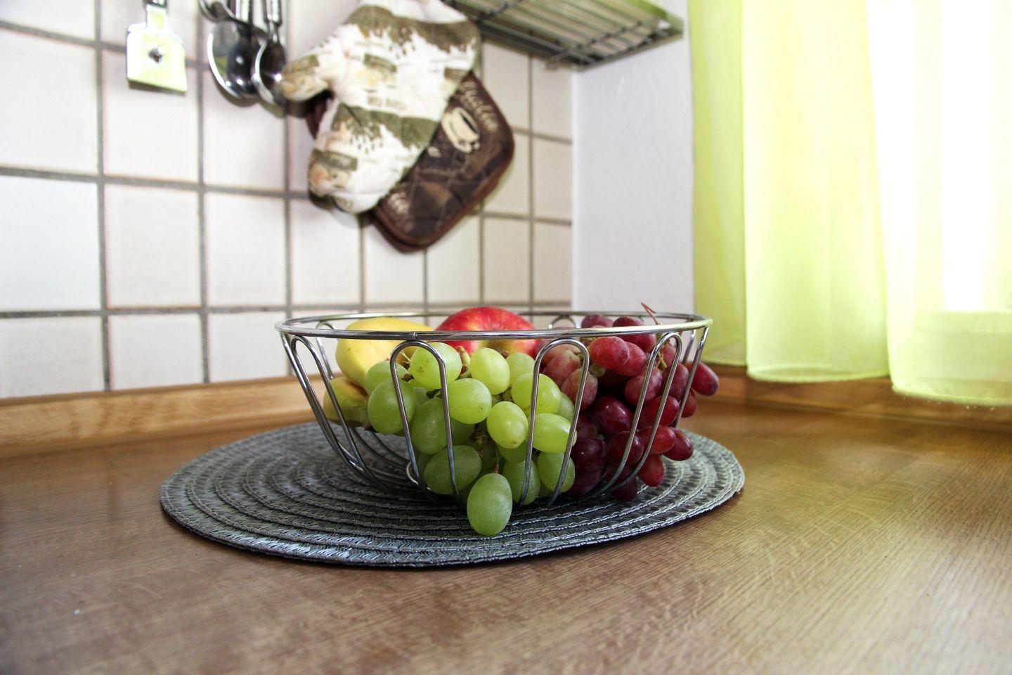 Der moderne Wohn-/Essbereich mit gemütlicher Couch und großem TV, sowie einer Musikanlage lädt zum Entspannen ein. Eine Küche mit kompletter Ausstattung (z.B. Mikrowelle, Gefrierfach, Kaffeemaschine u.v.m., aber ohne Geschirrspüler), sowie ein runder Esstisch für 4 Personen stehen Ihnen zur Verfügung.