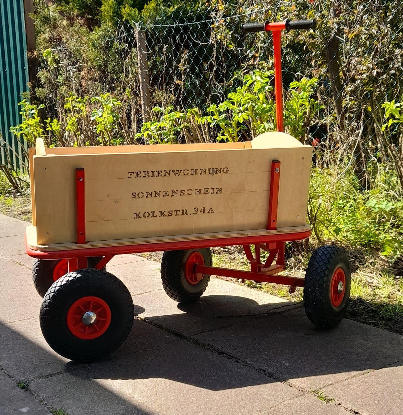 Ein Hochstuhl und ein Kinderreisebett (mit zusätzl. faltbarer Matratze, Bettdecke und Kissen) sowie ein Föhn, Bügeleisen und Bügelbrett, Strandspielzeug und ein Bollerwagen stehen kostenlos zur Verfügung. Balkon mit Mobiliar.