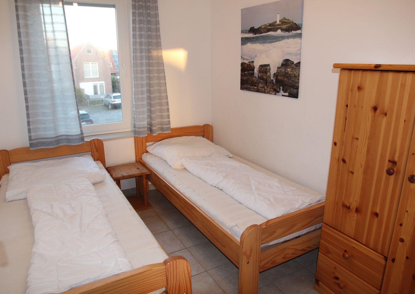 2 Schlafräume, eins mit einem Doppelbett und einmal 2 Einzelbetten. Kinderreisebettbett und Hochstuhl sowie Bügeleisen und Bügelbrett stehen kostenlos zur Verfügung. Dusche-WC mit Waschmaschine, Fön. Balkon mit Mobiliar